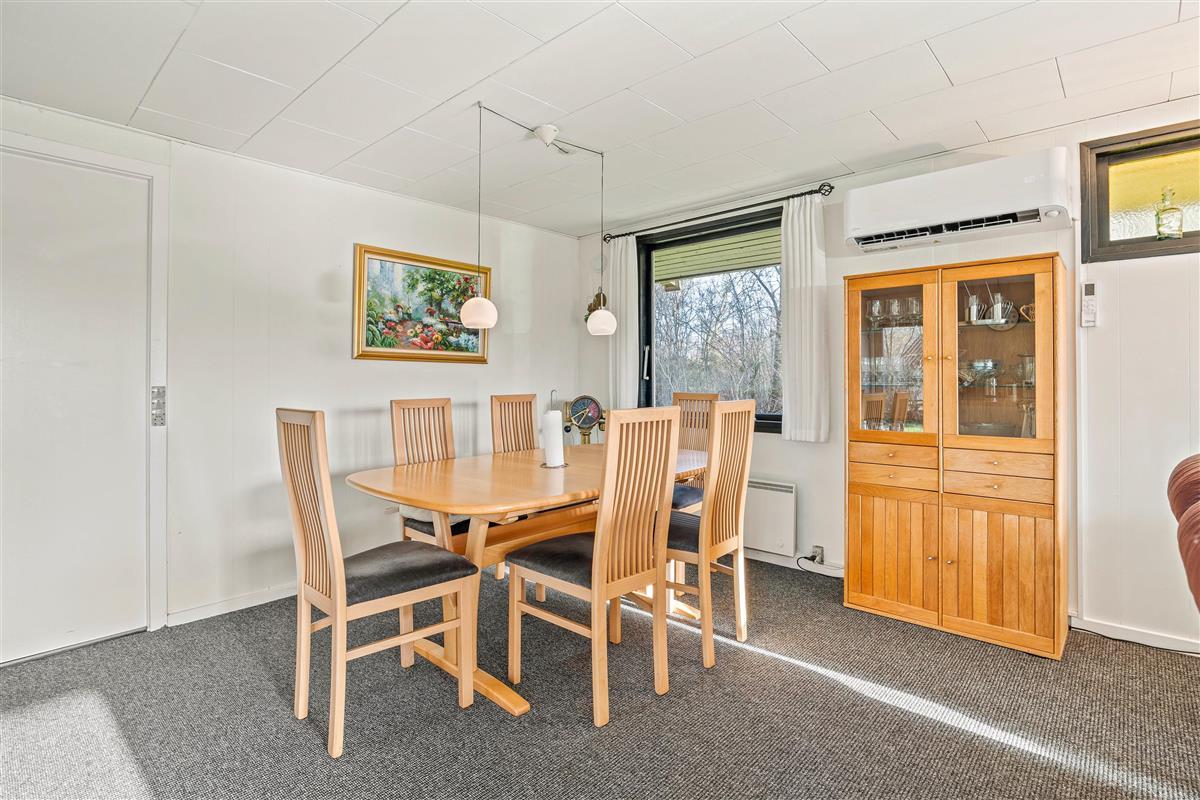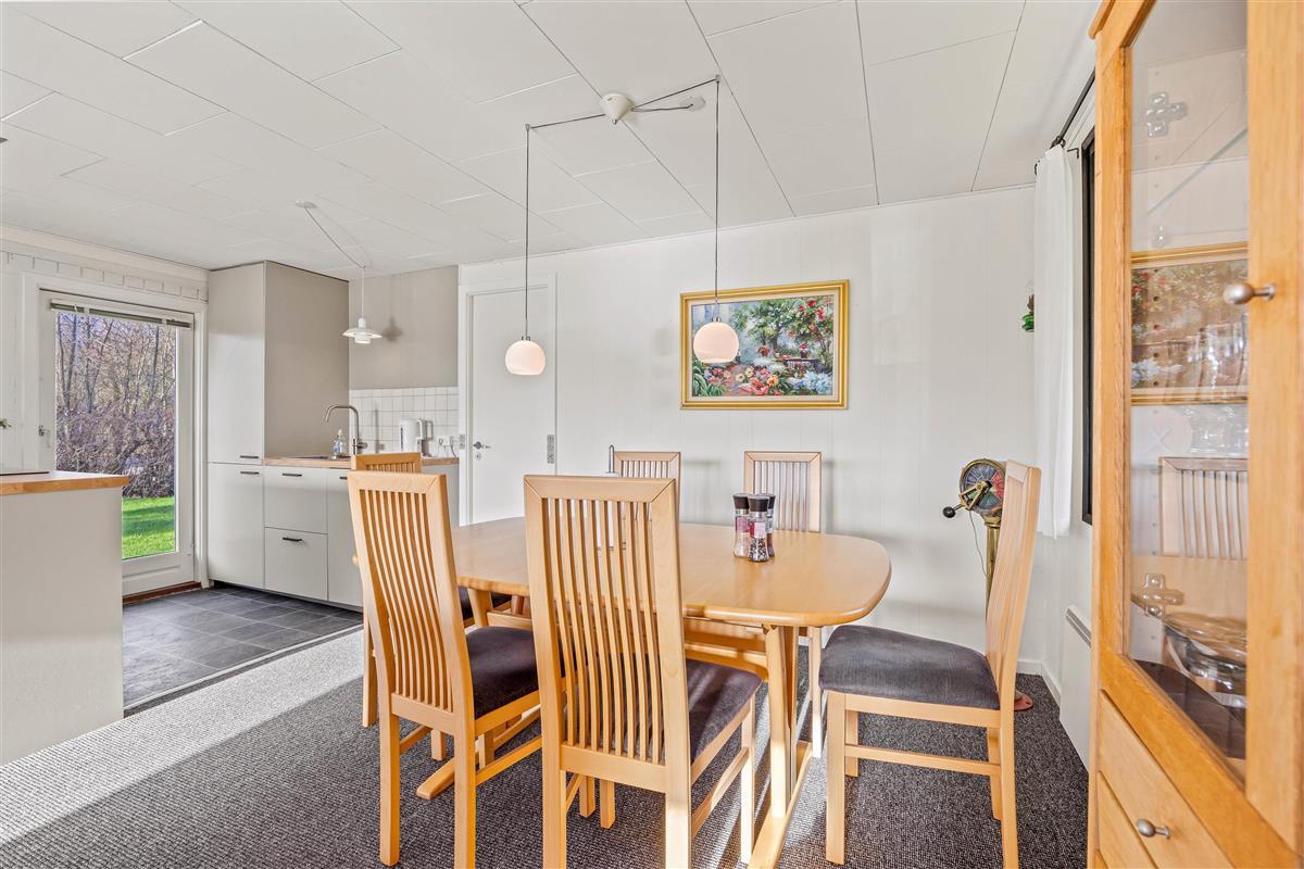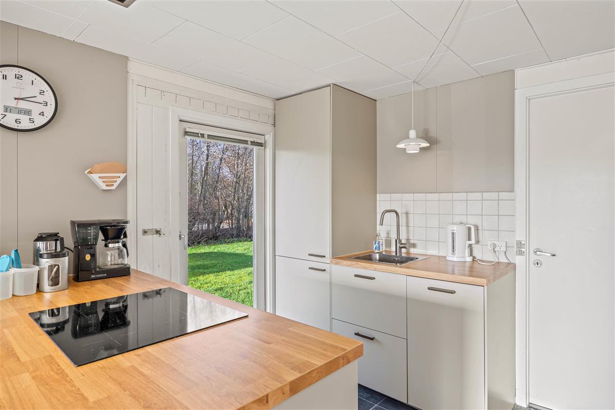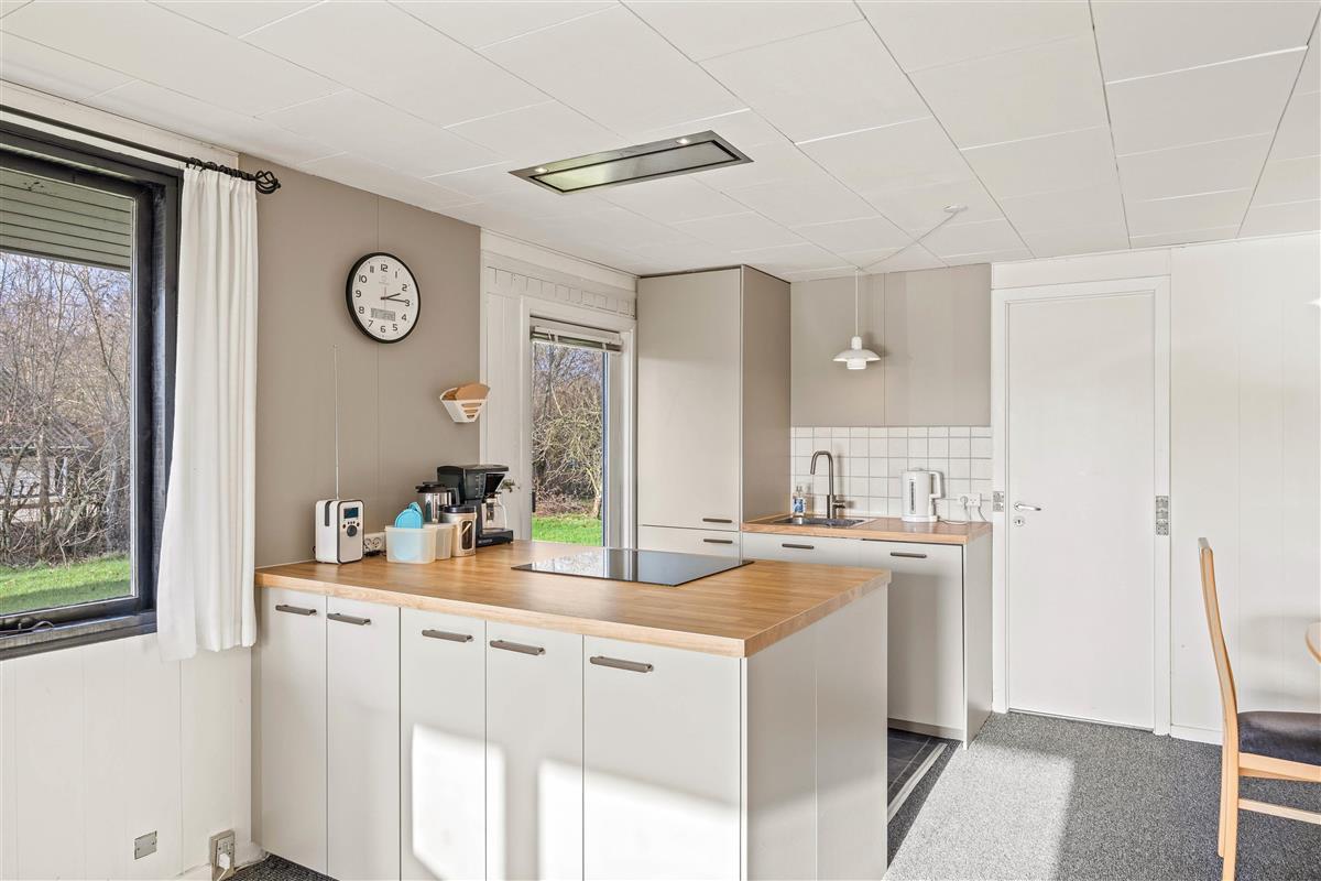 The other section of the holiday home features a spacious living area with an integrated kitchen, renovated in 2023, where the whole family can gather to spend quality time together. Whether cooking together, enjoying a cosy games night at the dining table or watching films - the gentle warmth from the pellet stove creates a wonderfully comfortable atmosphere. Throughout the holiday home, numerous windows flood the rooms with natural light, creating an open and welcoming feel. You can enjoy lovely views of the outdoors from every corner.