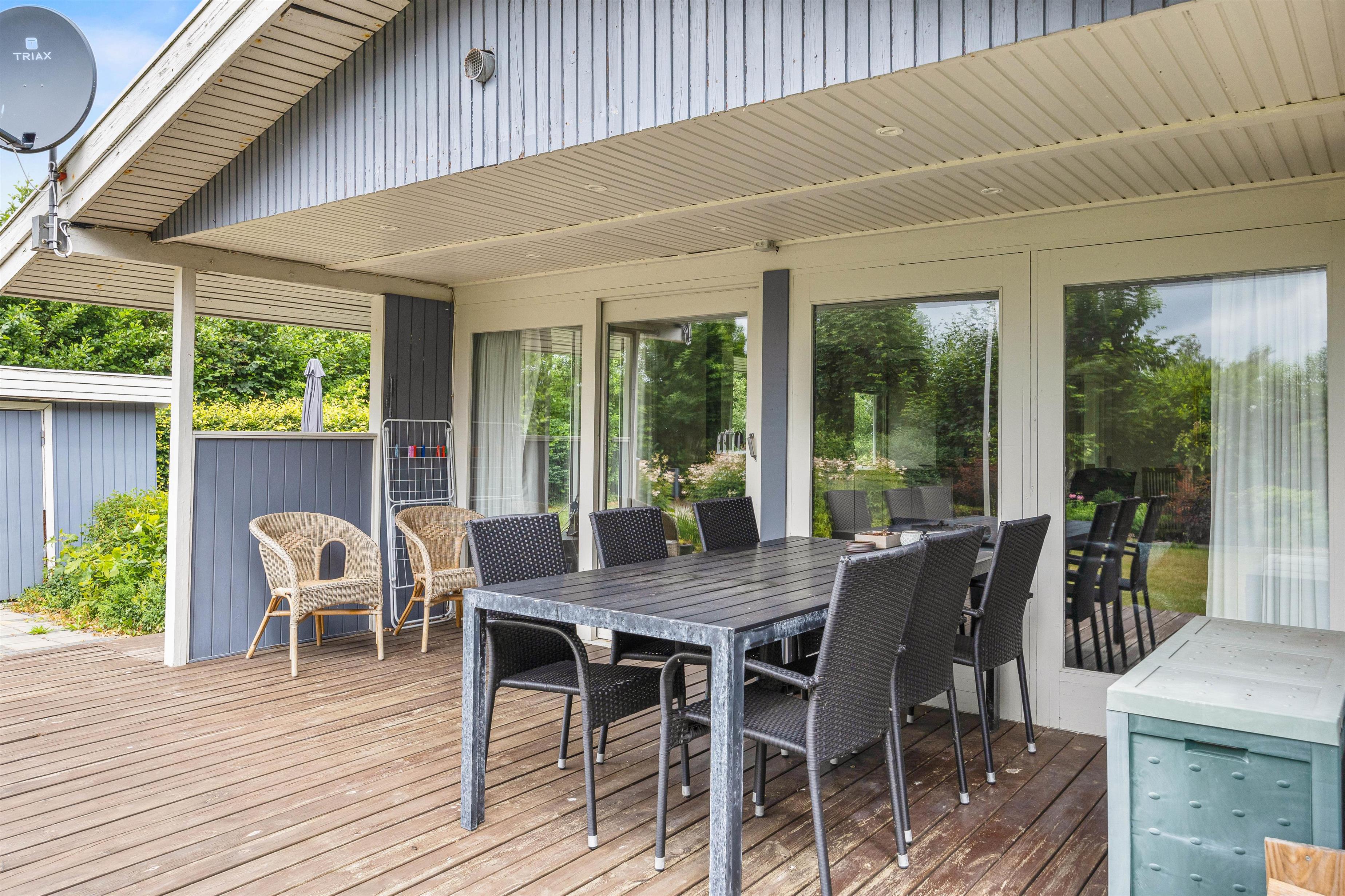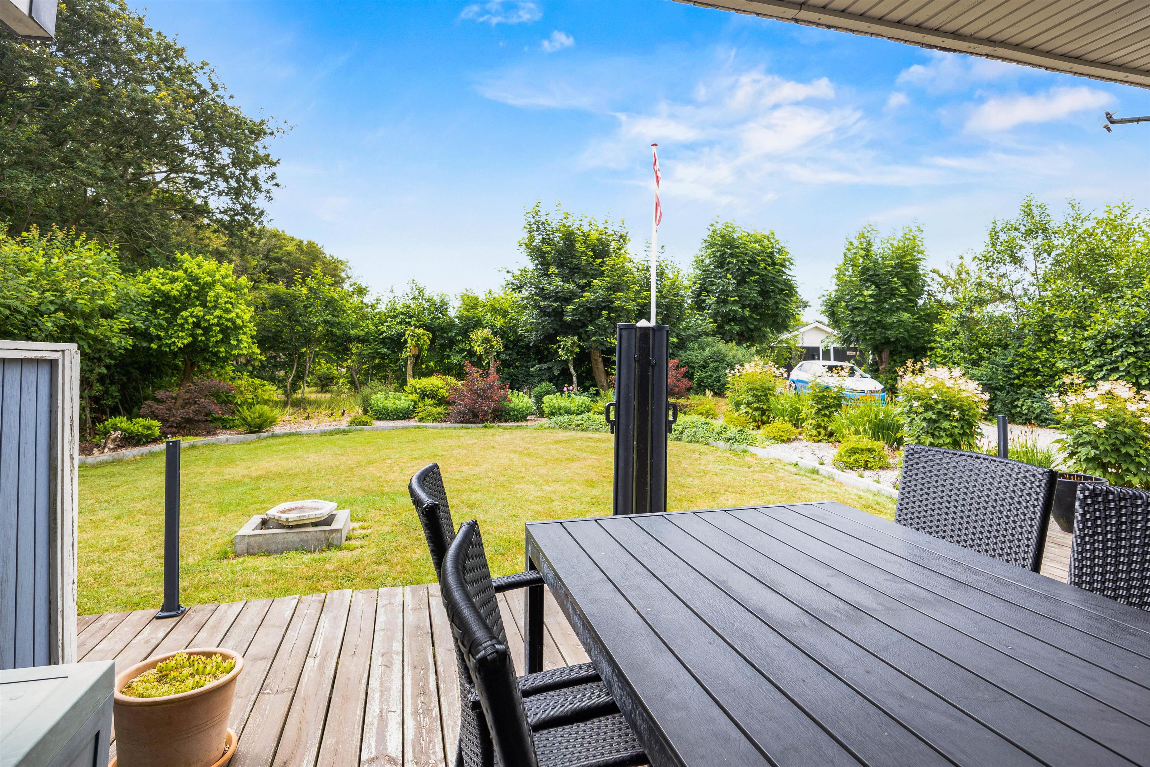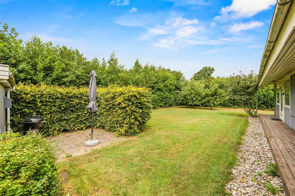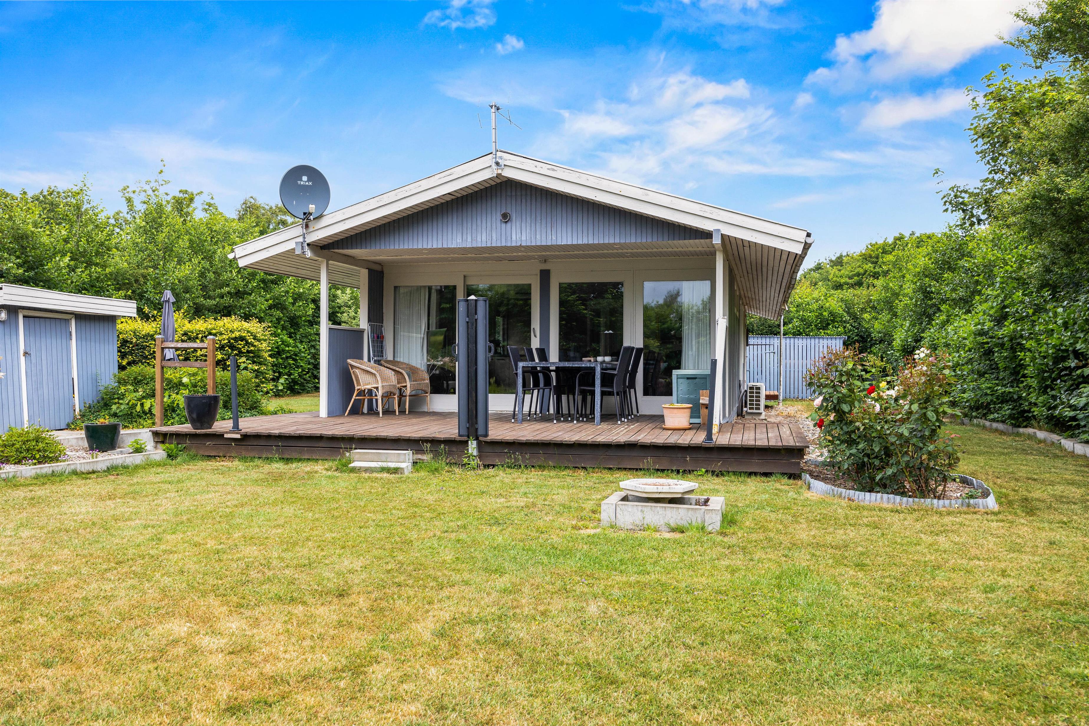 Every holiday home needs a beautiful outdoor space where you can enjoy the fresh air and listen to birdsong. This holiday home at Rylevænget 12 offers a well-maintained wooden terrace, partially covered for sheltered outdoor seating. The garden is thoughtfully landscaped and beautifully maintained.