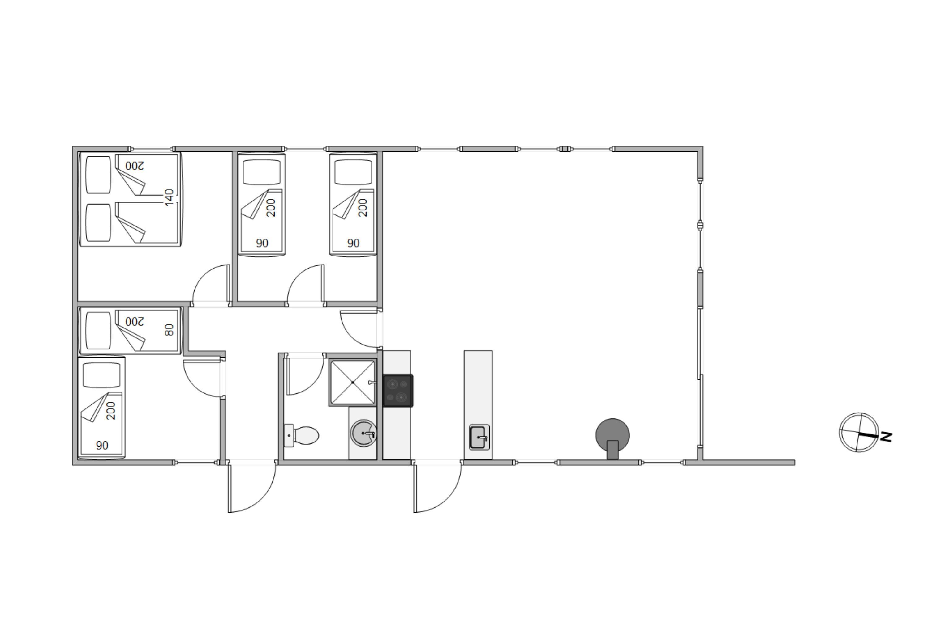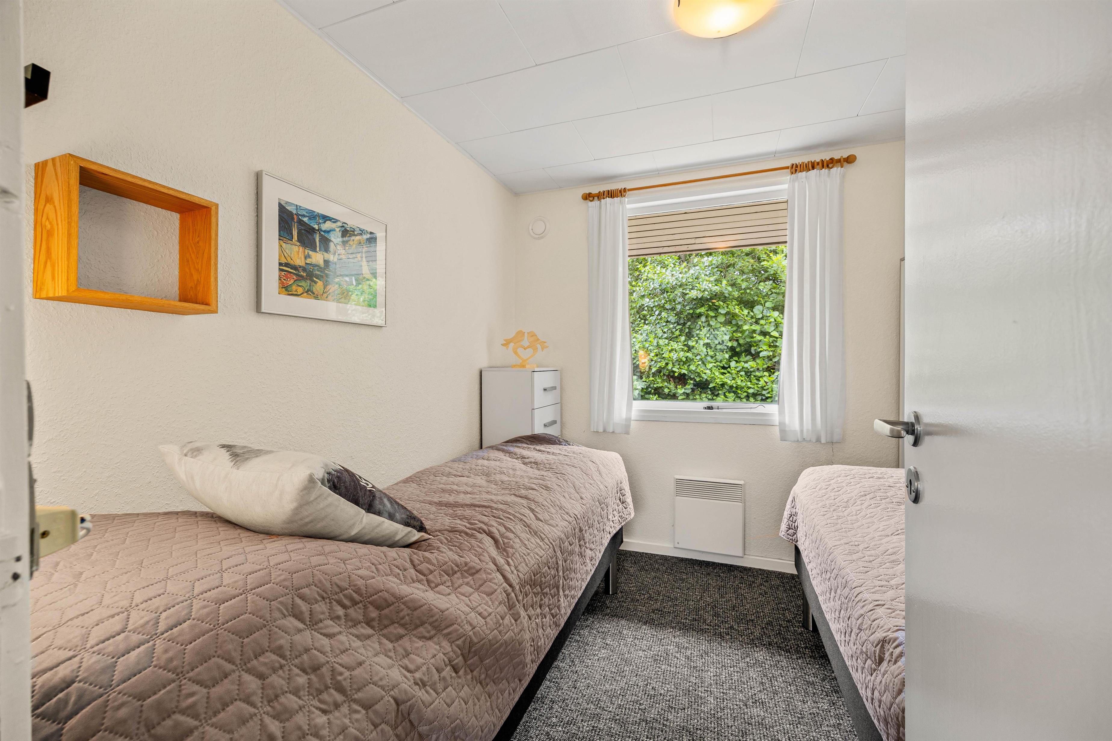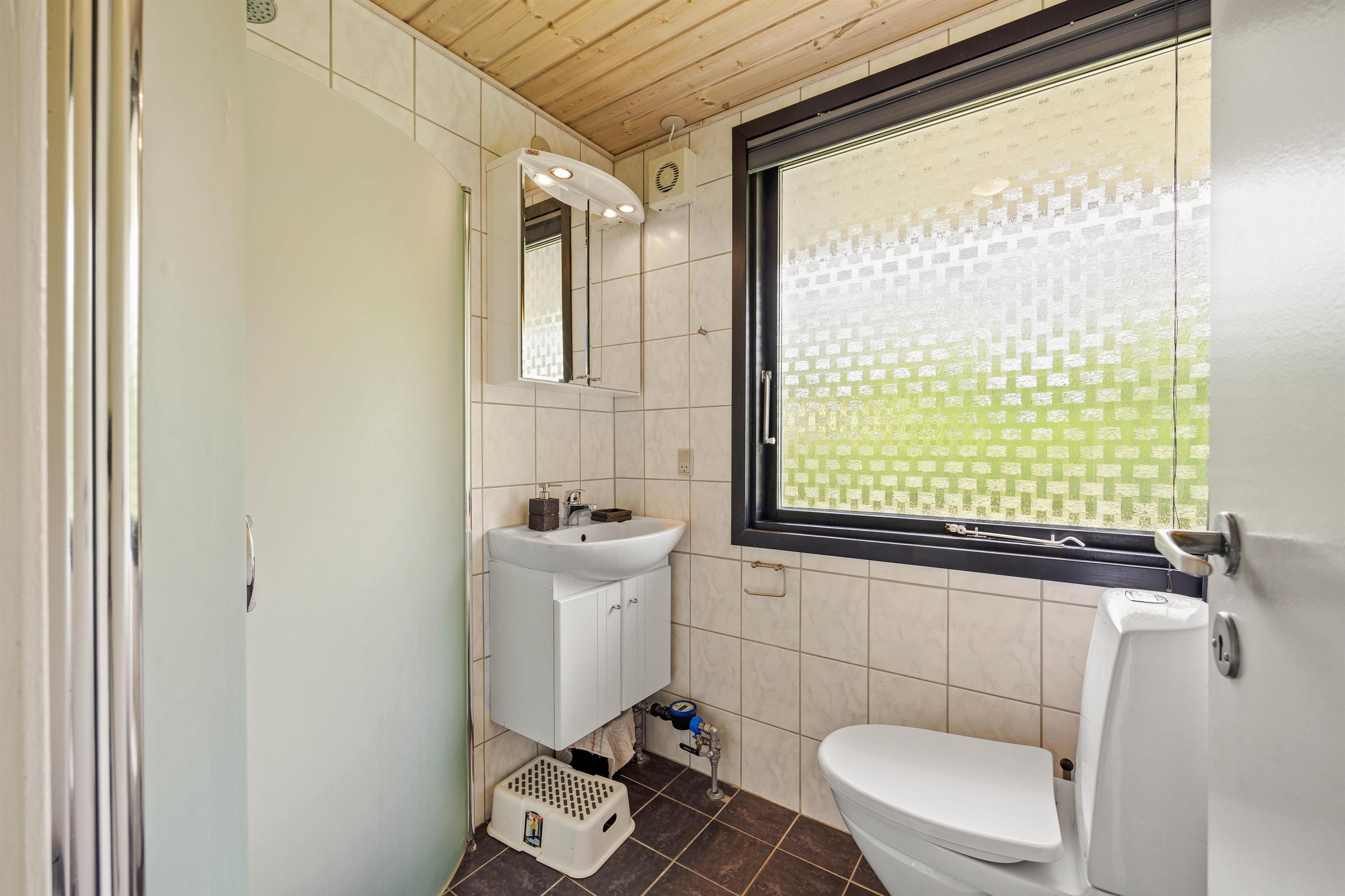 Experience authentic Danish hygge in this delightful holiday home. The well-planned layout ensures comfort throughout: The entrance area leads to three bedrooms, furnished with one double bed and four single beds. You'll also find the bathroom here, complete with a corner shower and underfloor heating.