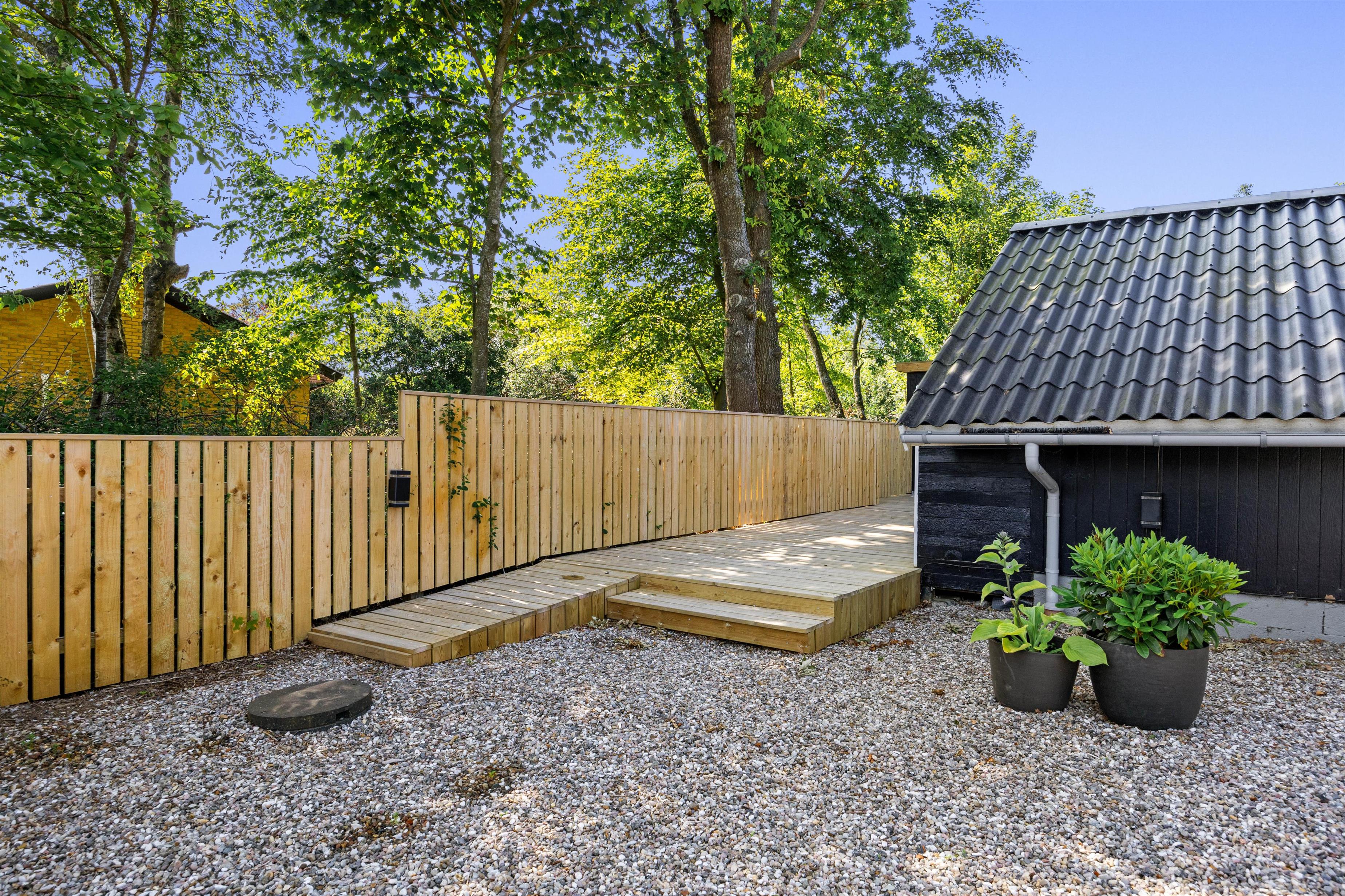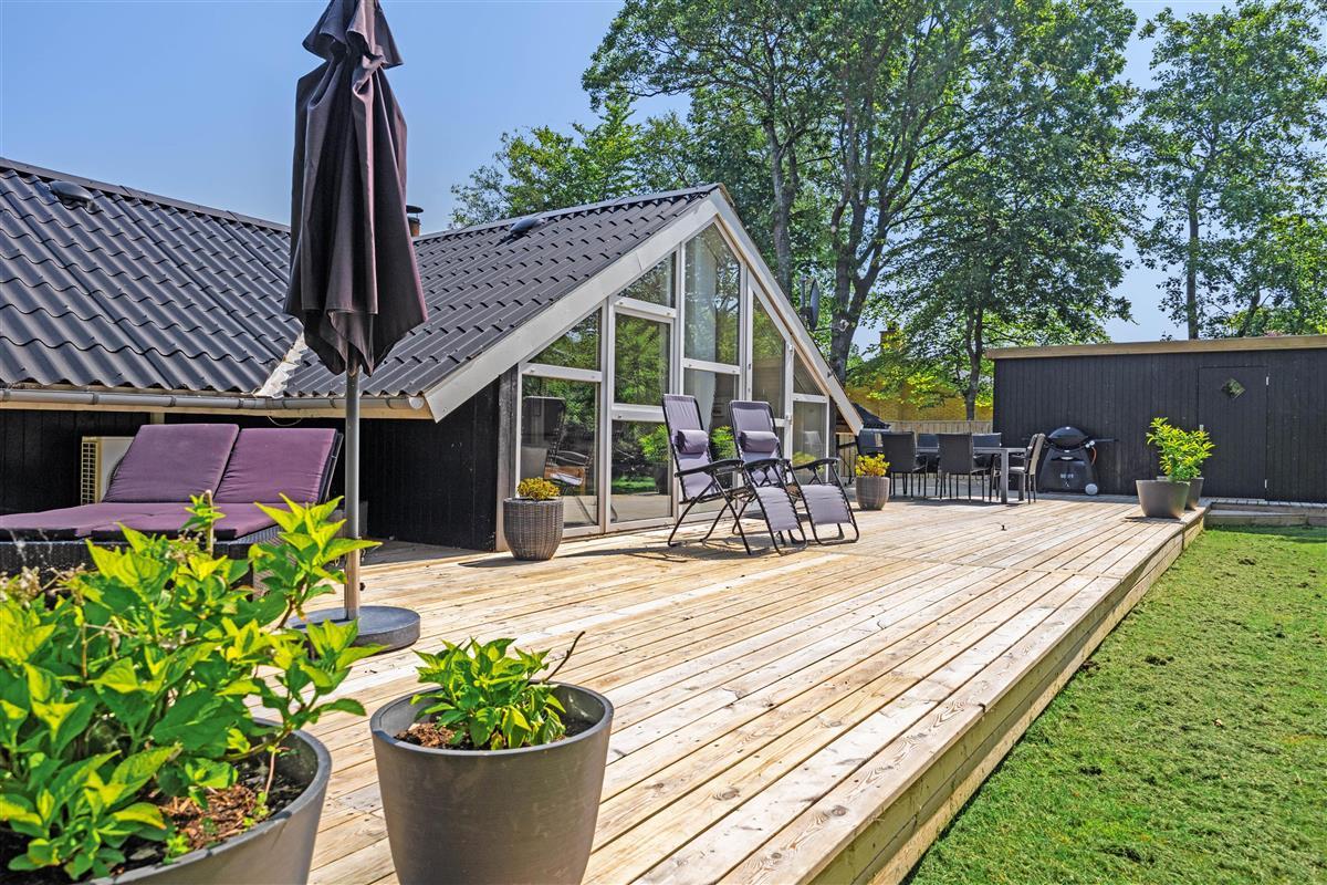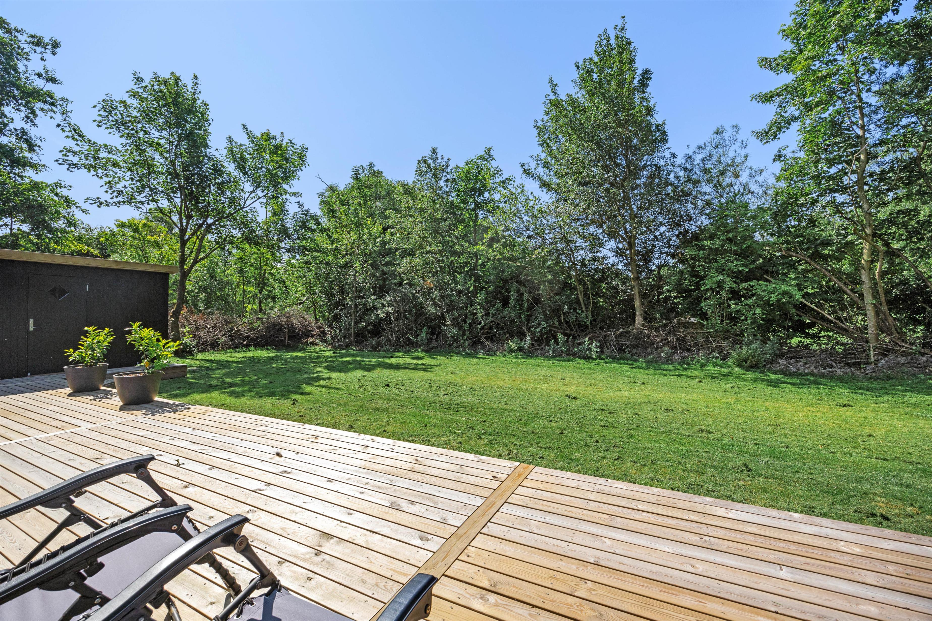 Your holiday home sits on a lawn surrounded by greenery, with bushes and trees providing excellent wind protection and privacy. You can enjoy the sun undisturbed on the terrace while your children play on the swing or in the grounds.