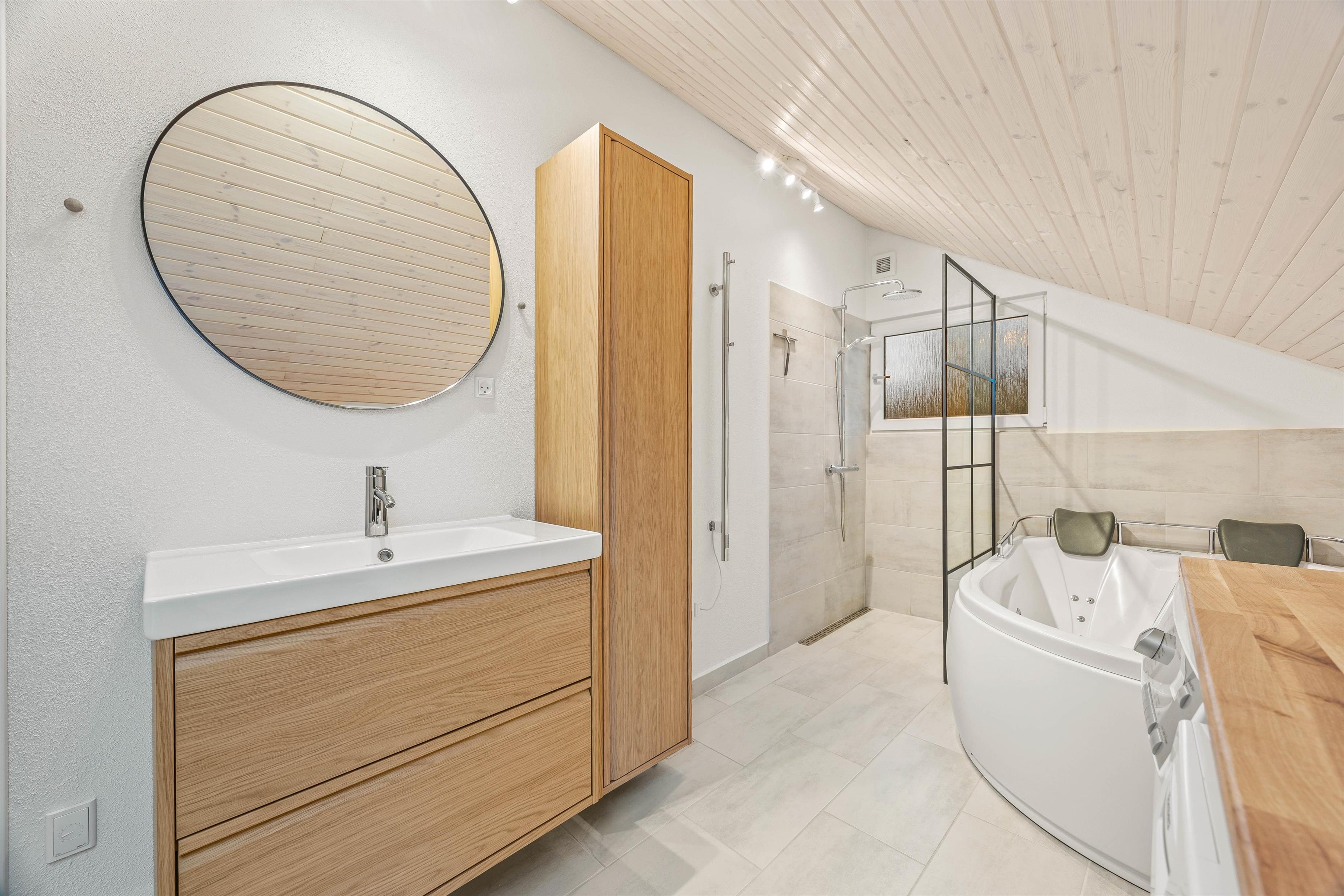 The open-plan kitchen is perfect for preparing delicious meals to enjoy together at the dining table. The dishwasher takes care of the cleaning up - leaving more time for relaxation. You'll find this in the sauna and whirlpool. Enjoy extended sauna sessions or a soak in the hot water - what better way to relax body and soul?