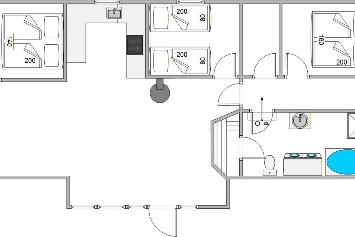 The holiday home accommodates up to 6 people in 3 comfortable bedrooms. These feature 1 double bed and 4 single beds, ensuring a restful night's sleep.