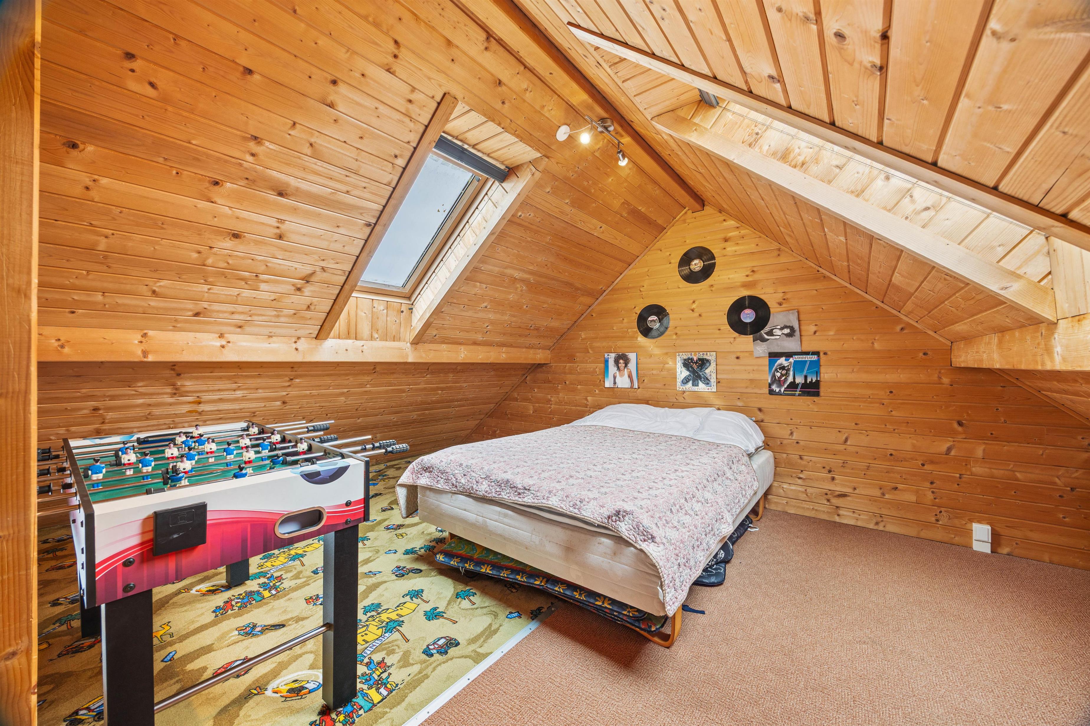 The large loft offers additional space for relaxation and entertainment and is equipped, among other things, with a sofa and a table football game. It’s the perfect place for casual coziness, where you can play table football or simply unwind with a good book. The loft creates an extra room that serves as a great retreat for children and adults alike.