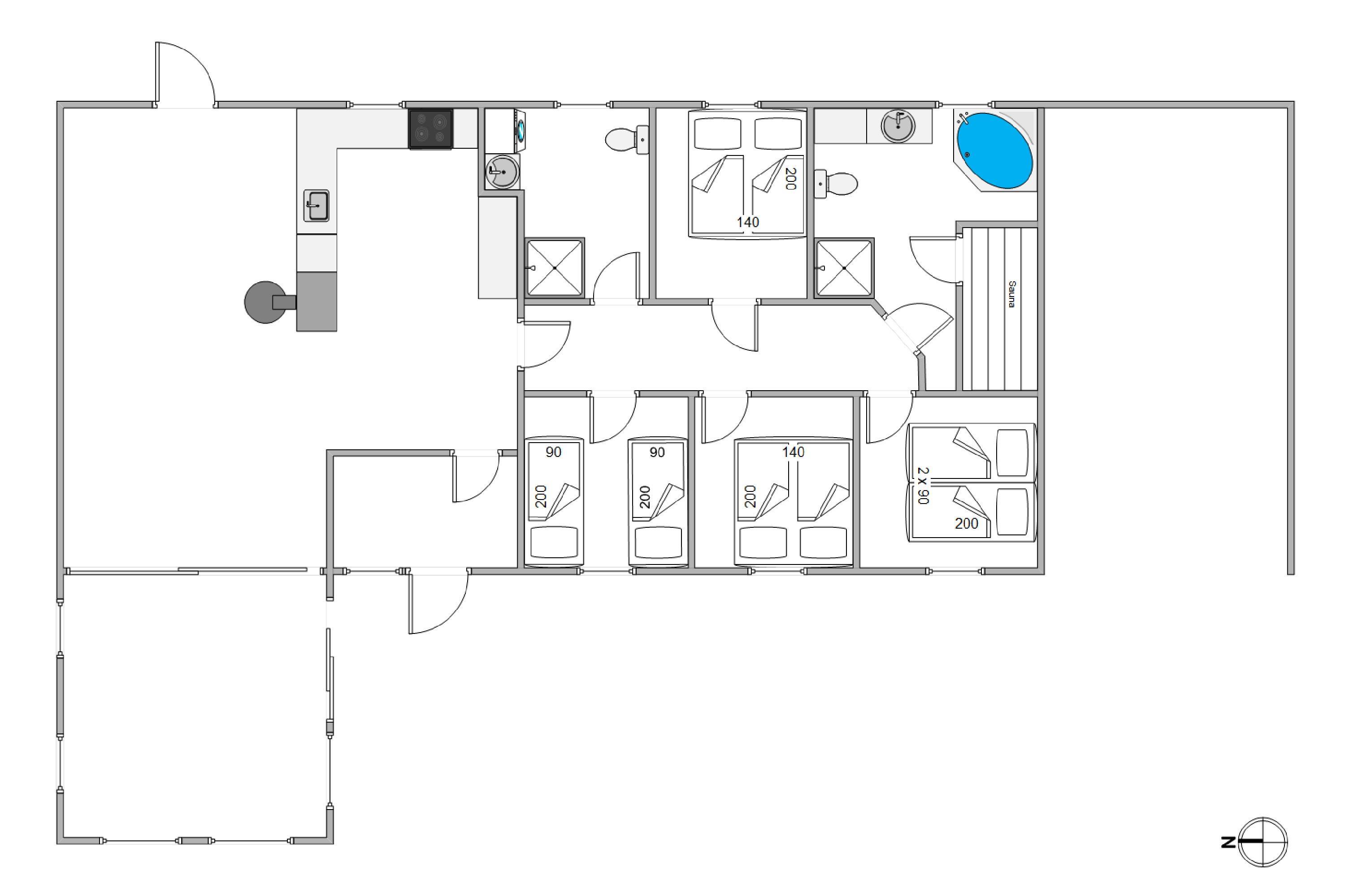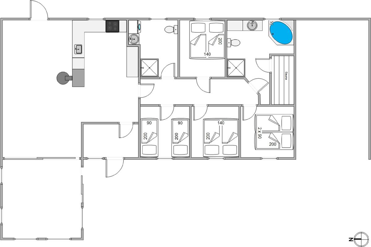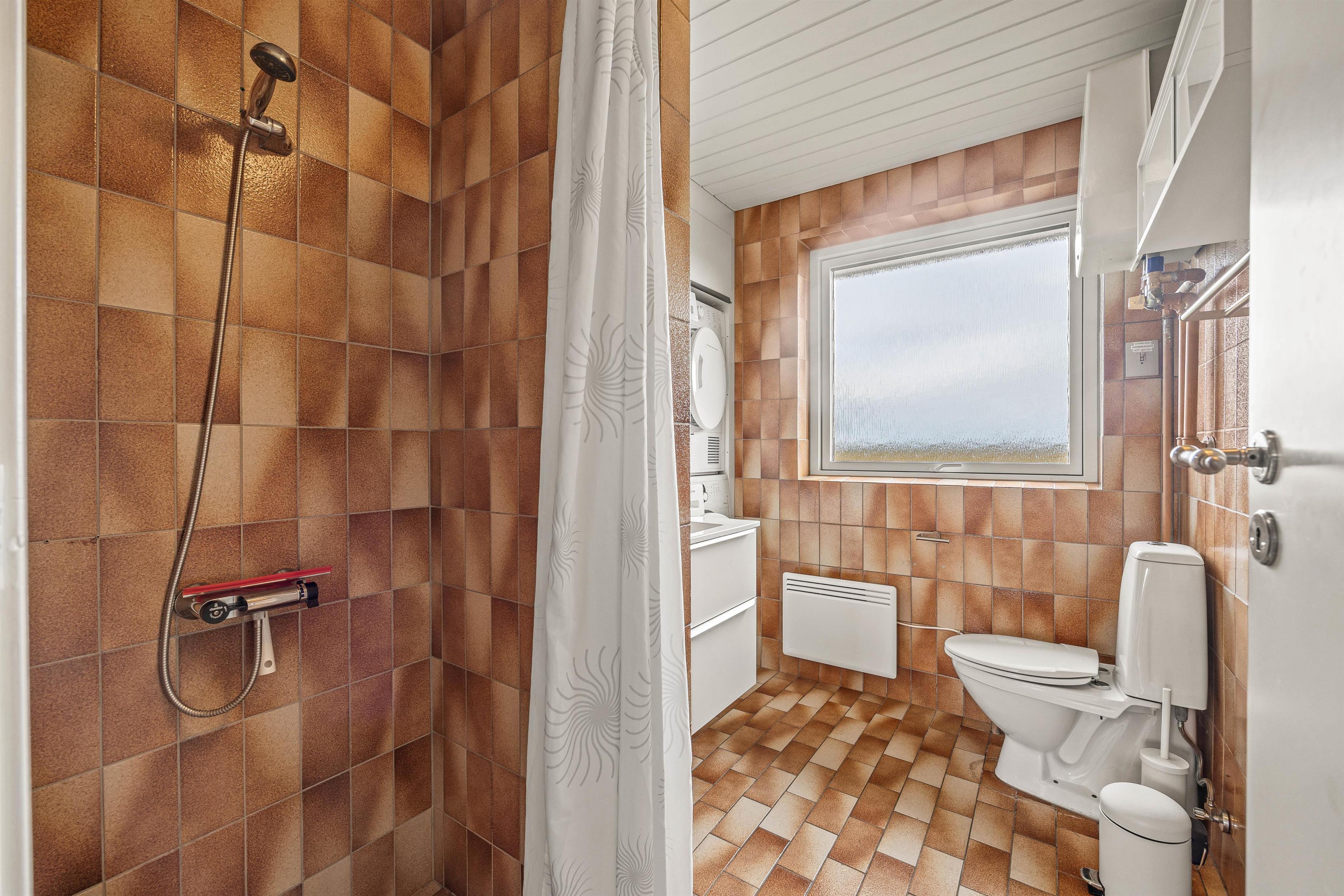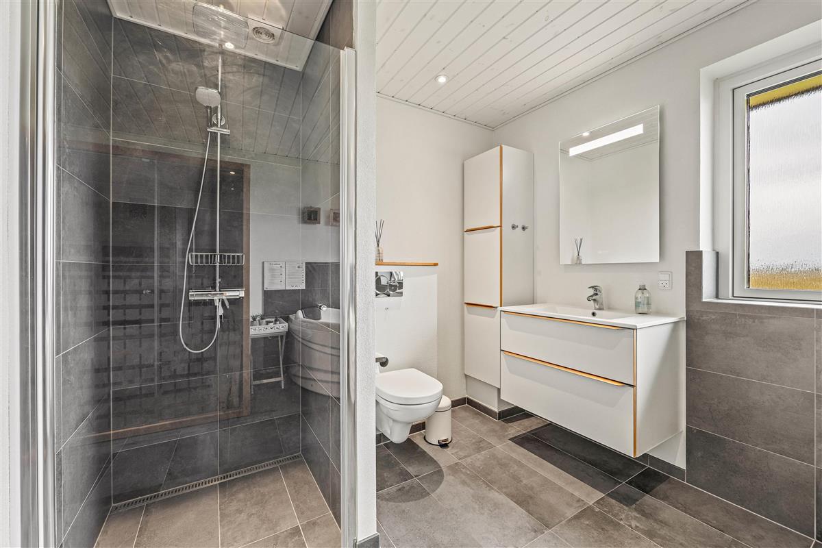 Enter your well-equipped holiday home through a practical hallway with plenty of space for coats and shoes. To the right, a corridor leads to the comfortable bedrooms and both bathrooms, one of which features underfloor heating. The smaller bathroom includes a shower, washing machine and tumble dryer. The larger bathroom offers relaxation and wellness facilities with an infrared sauna and whirlpool - perfect for unwinding after a long walk. The four inviting bedrooms feature three comfortable double beds and two single beds, providing excellent sleeping arrangements.