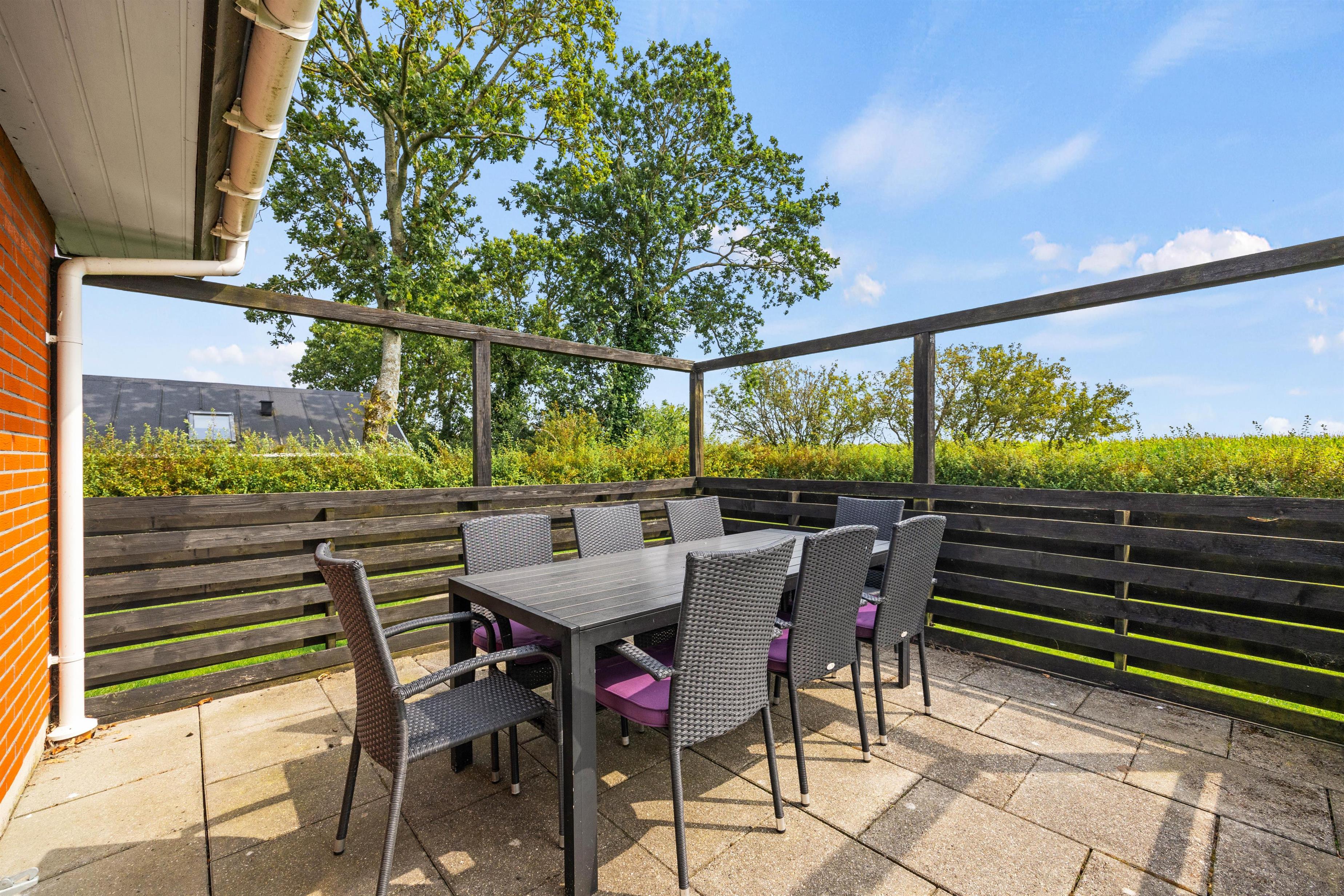 Your holiday home is situated on a 100 m² garden plot on the outskirts of the village, which is fenced and surrounded by a hedge. Here, your dogs can run free and your children can play football on the lawn. The sheltered terraces facing west and east invite you to linger. On one terrace, you can have breakfast at sunrise and on the other, you can barbecue as the sun slowly sets.