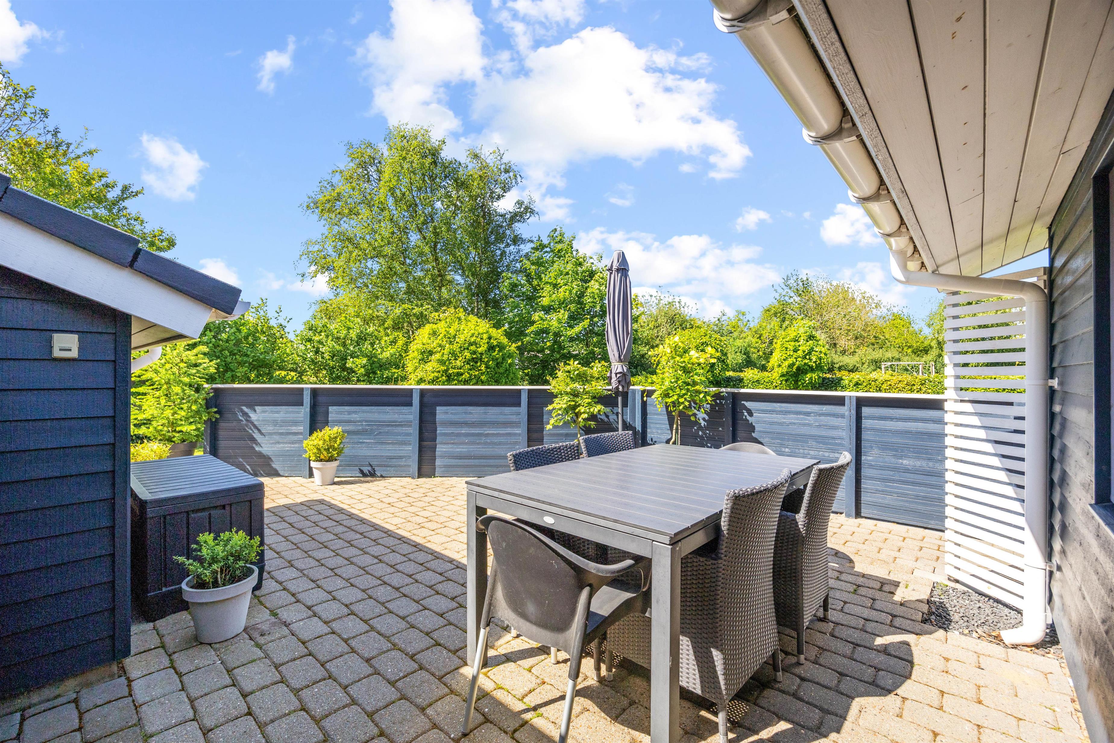 Sandkasten, Schaukel und große Terrasse im Strandvænget 38