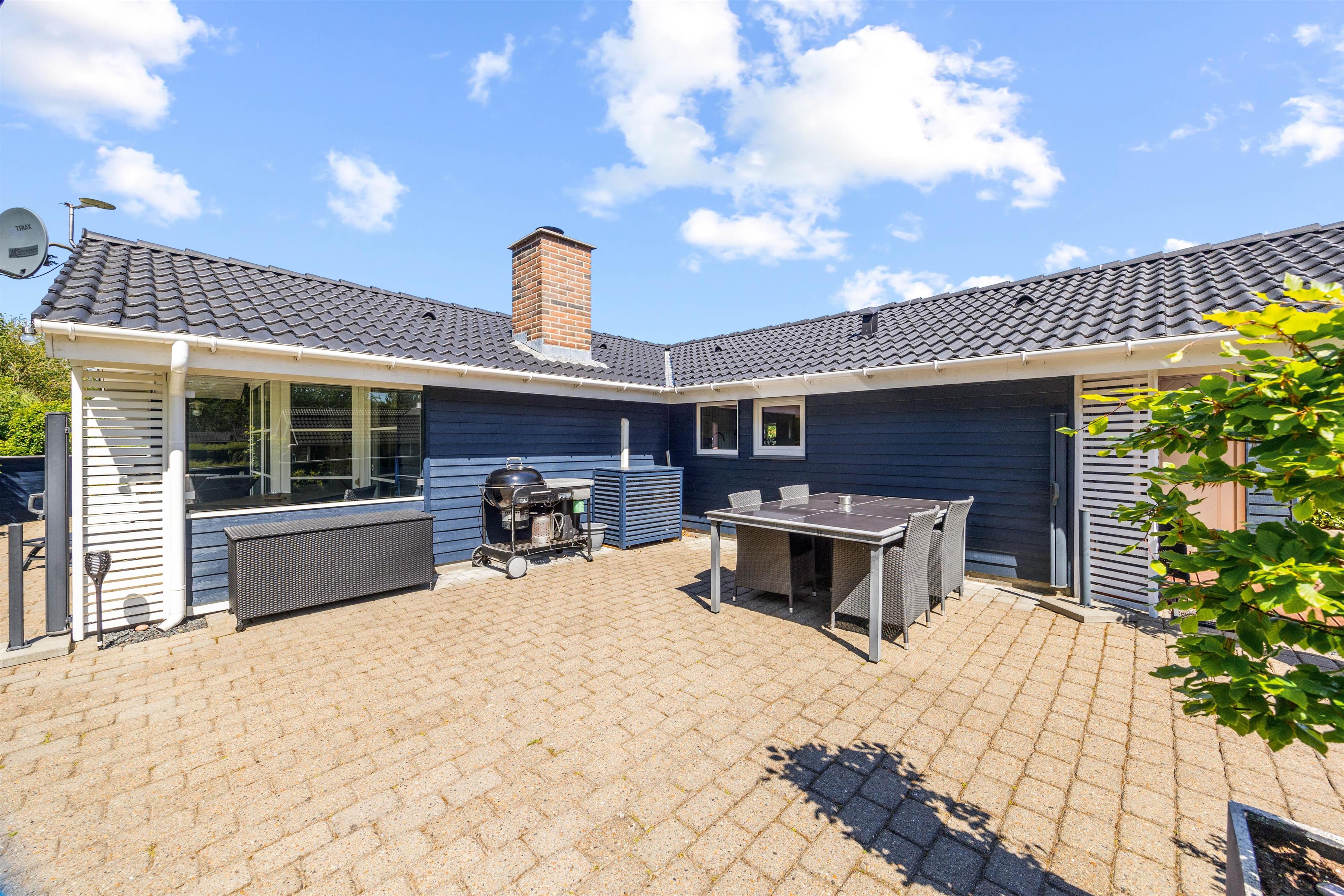Der Außenbereich des Ferienhauses in Bork Havn ist der perfekte Rückzugsort für Ruhe und Spaß zugleich. Die großzügige, teils überdachte Terrasse lädt dazu ein, die Sonne zu genießen und abends bei einem gemütlichen Drink unter freiem Himmel zu entspannen. Und der Grill steht bereit, um köstliche Mahlzeiten zu zaubern, während ihr mit euren Liebsten in geselliger Runde den Tag ausklingen lasst.