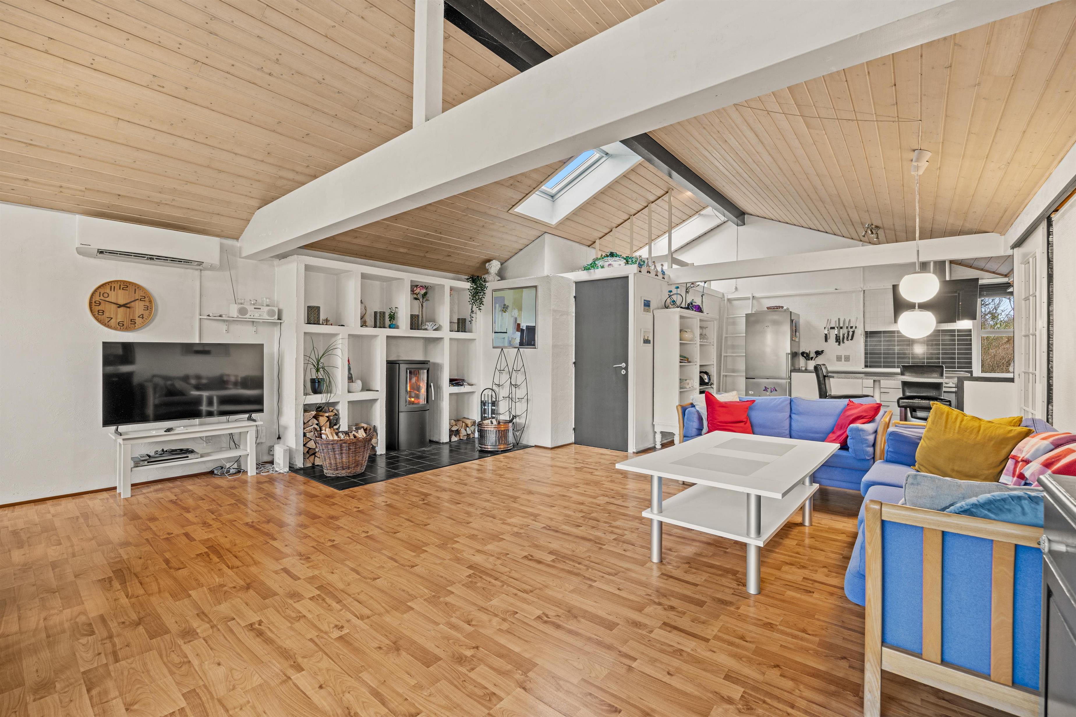 Warmth and comfort are guaranteed in this holiday home. The welcoming wood-burning stove in the living area ensures cosy evenings when the weather turns cool. It's the perfect spot to unwind after an eventful day. Additionally, the modern heat pump helps maintain a pleasant indoor climate. Benefit from a well-equipped kitchen, where the dishwasher provides practical convenience whilst cooking becomes a pleasure. The living area invites you to relax together on comfortable sofas and armchairs, perfect for reading or enjoying sociable evenings. The dining table in the living room is ideal for shared meals or fun game nights.
