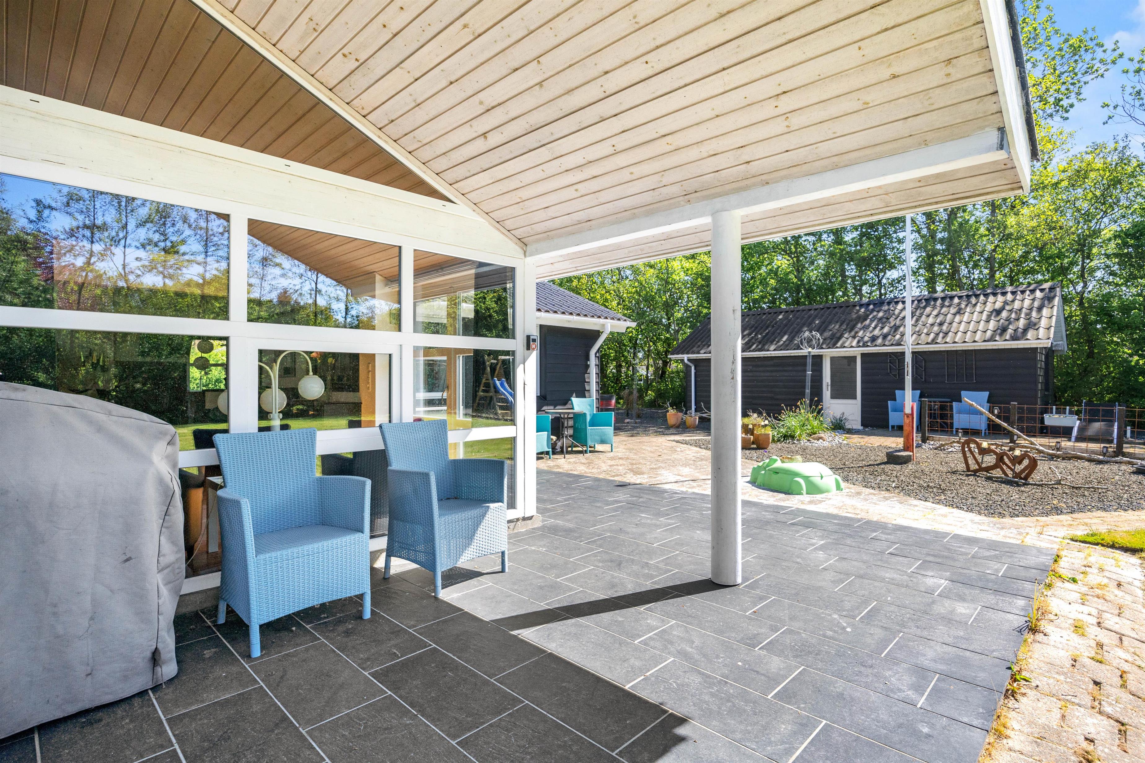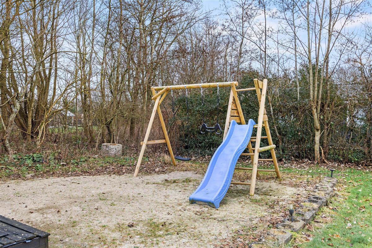 The outdoor area, with its garden furniture and inviting covered terrace, is perfect for enjoying outdoor meals or sociable evenings. The terrace also features a gas barbecue, ideal for culinary highlights and relaxed barbecue evenings. Young ones will enjoy the garden swing, promising additional playtime fun. Sun loungers are also available for soaking up the sunshine.