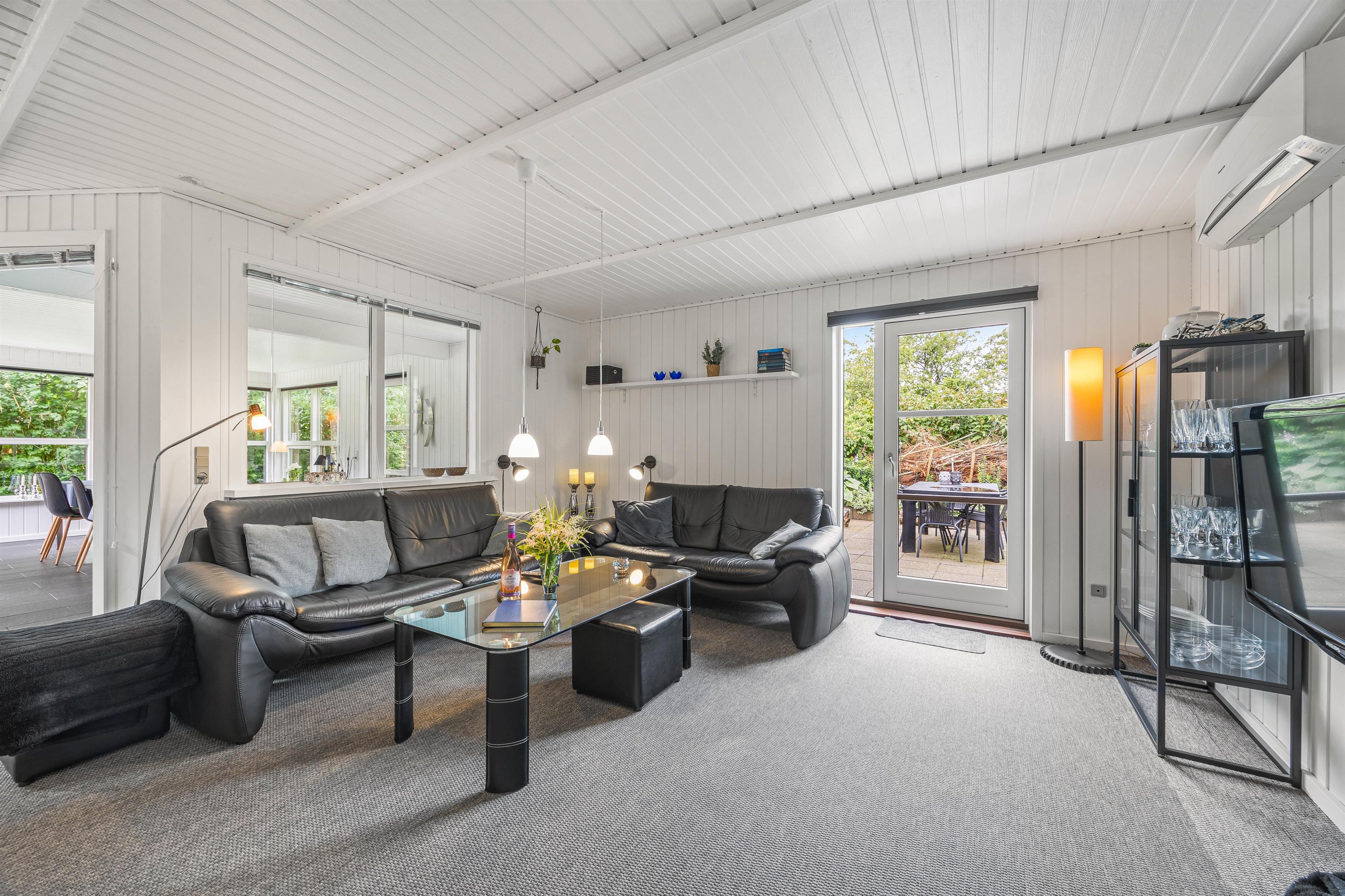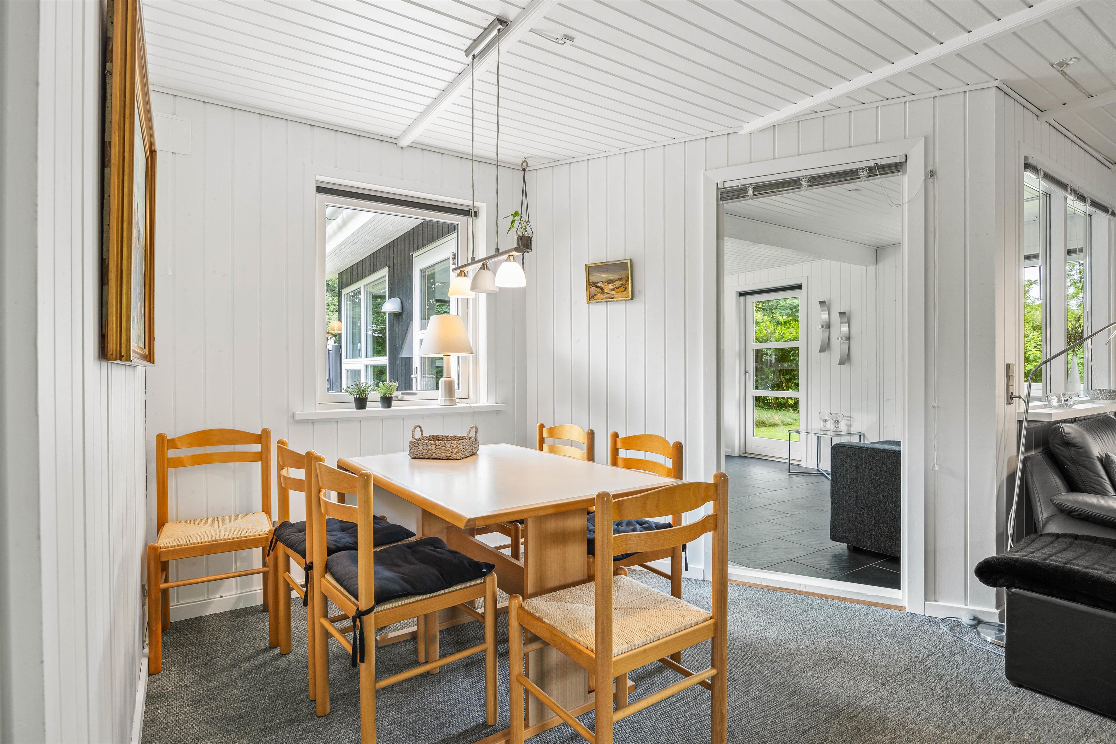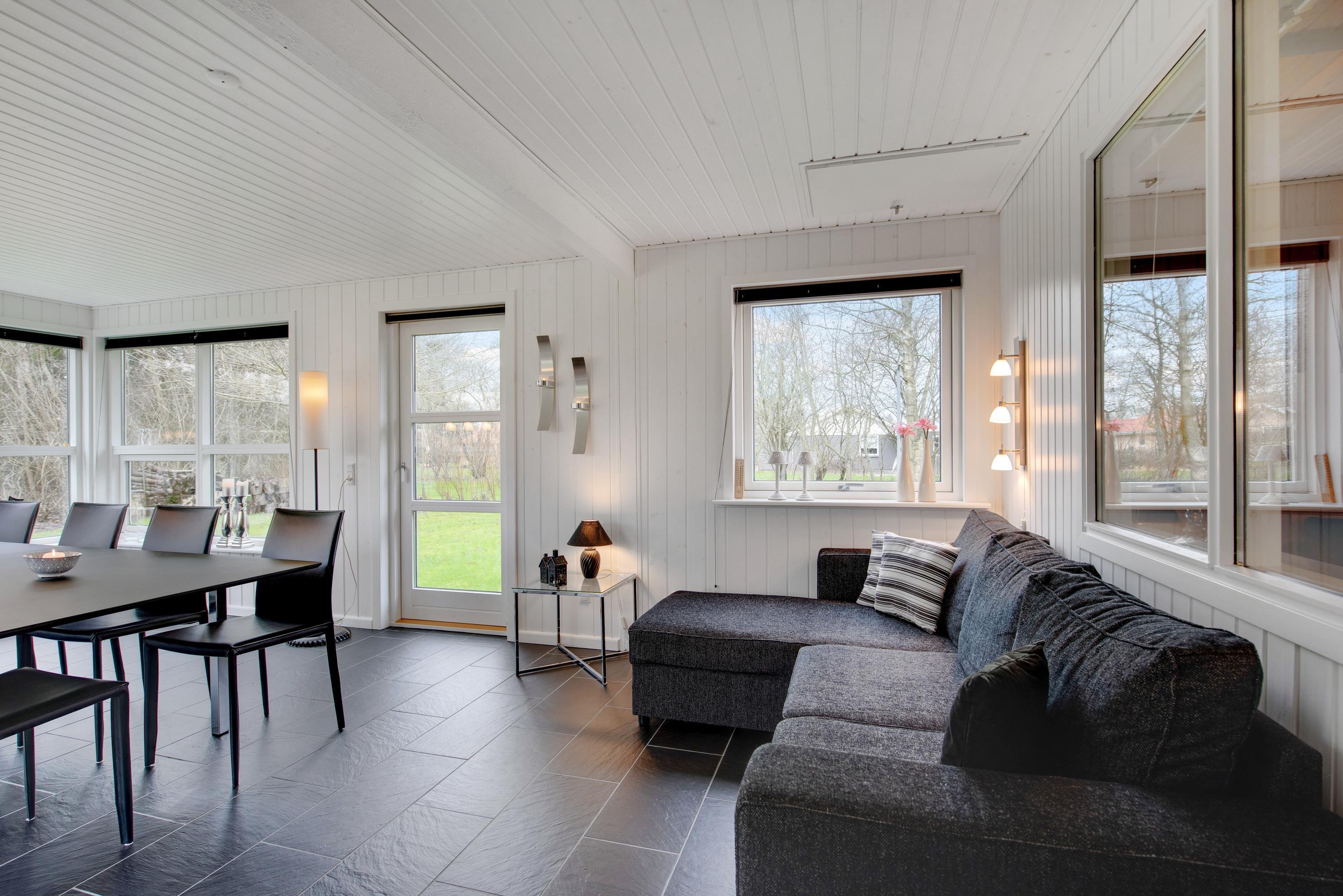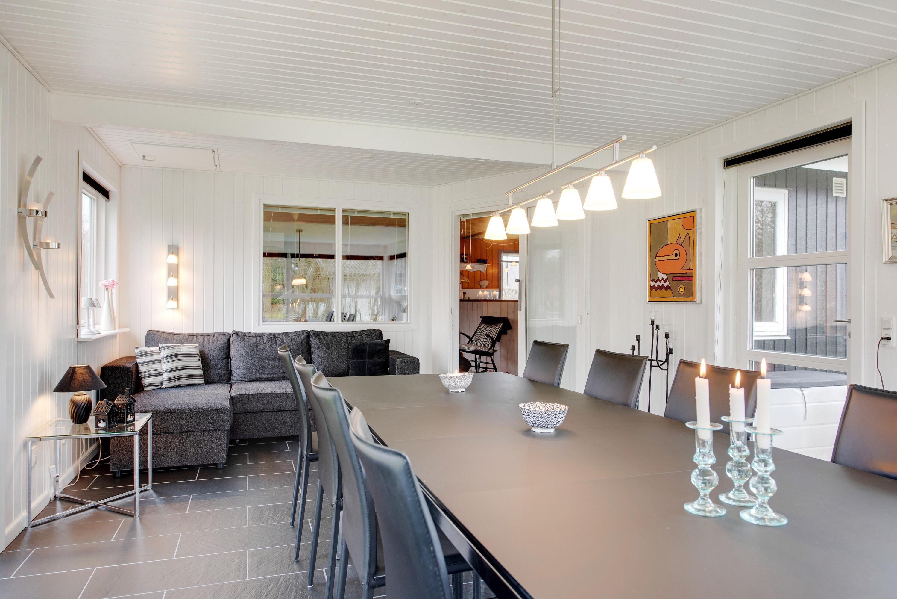 The heart of the holiday home at Linningvej 8 is the living area, where you can spend relaxing hours in front of the crackling wood-burning stove. The warmth of the fire creates an inviting atmosphere, perfect for social evenings or quiet moments with a good book.