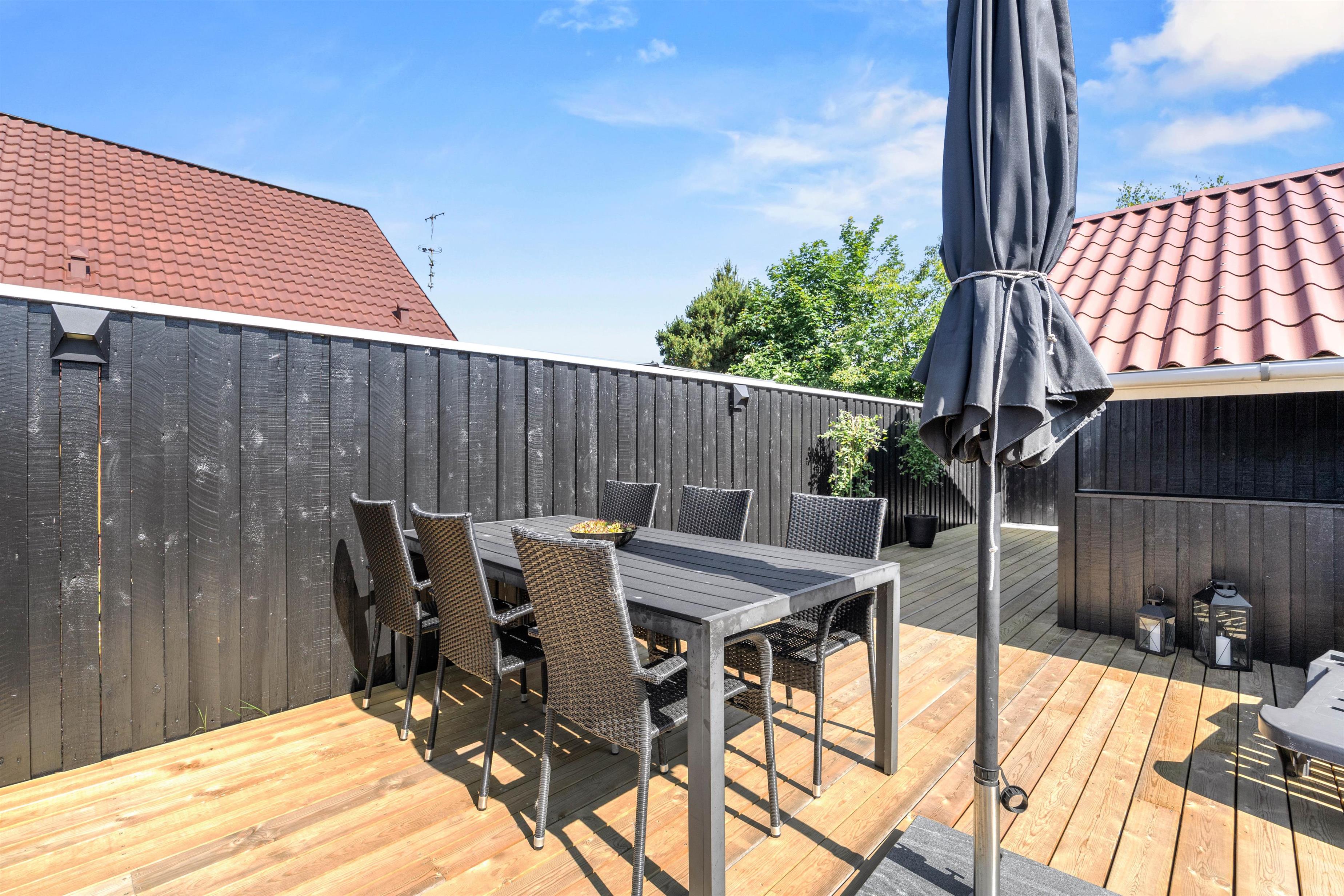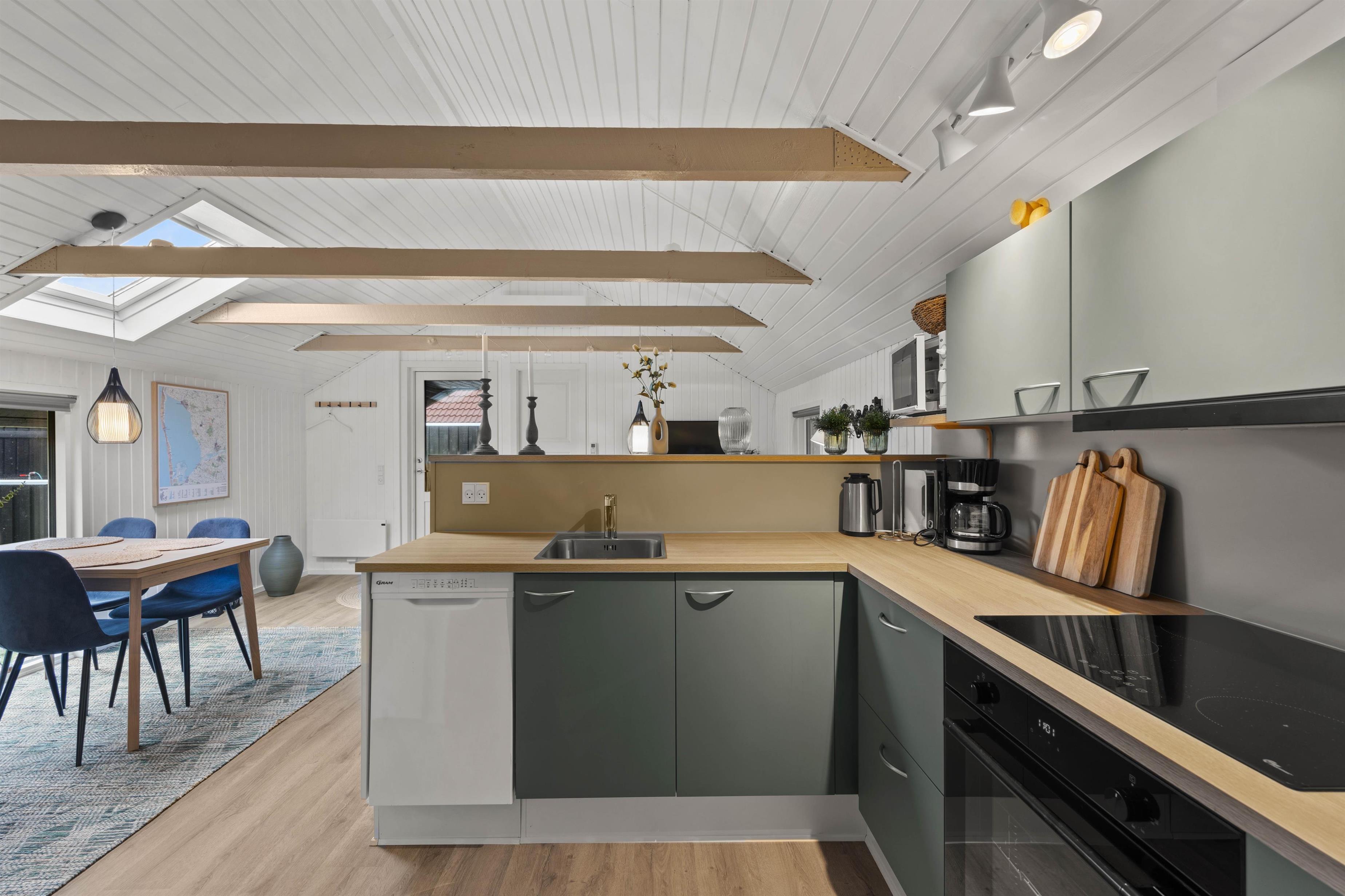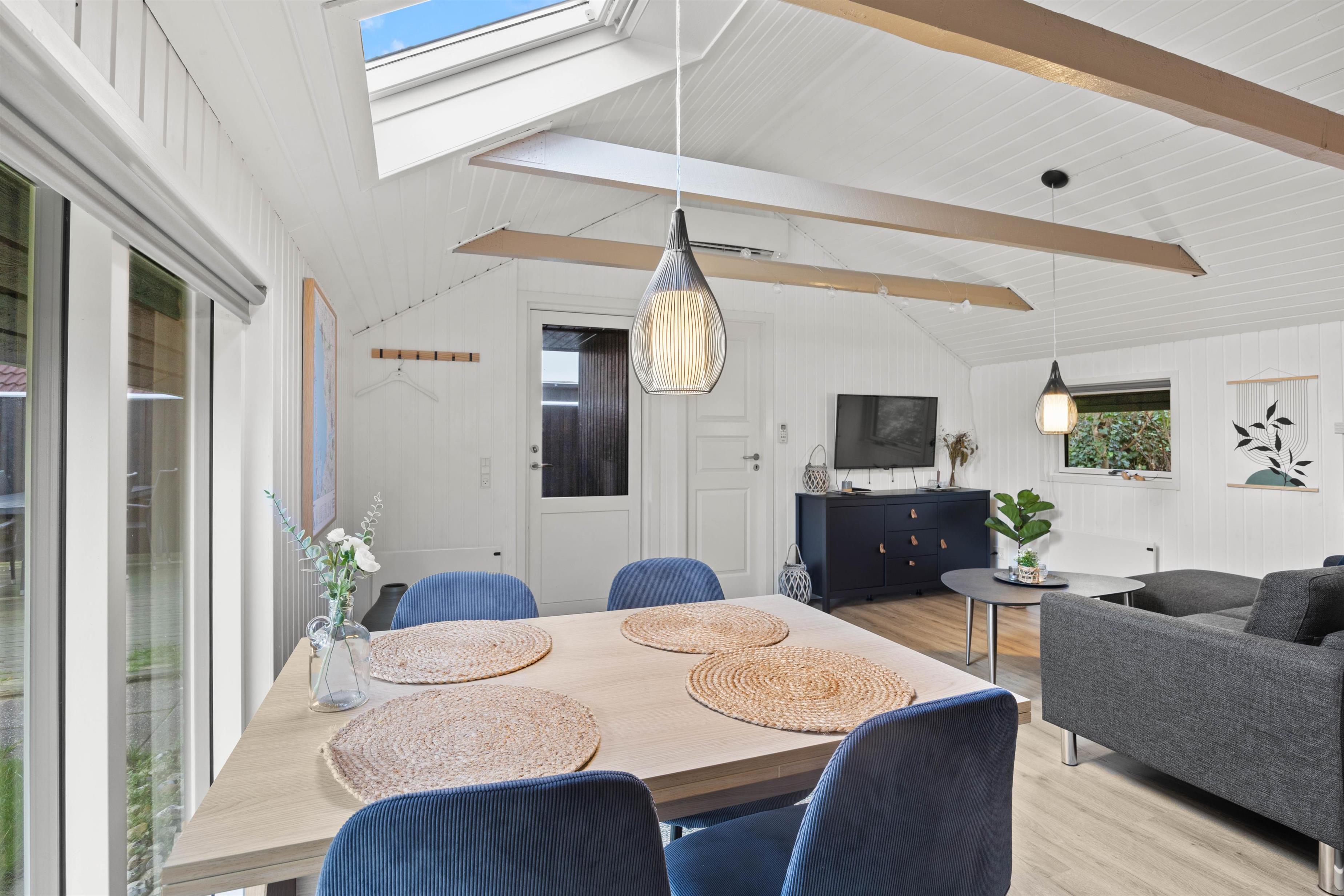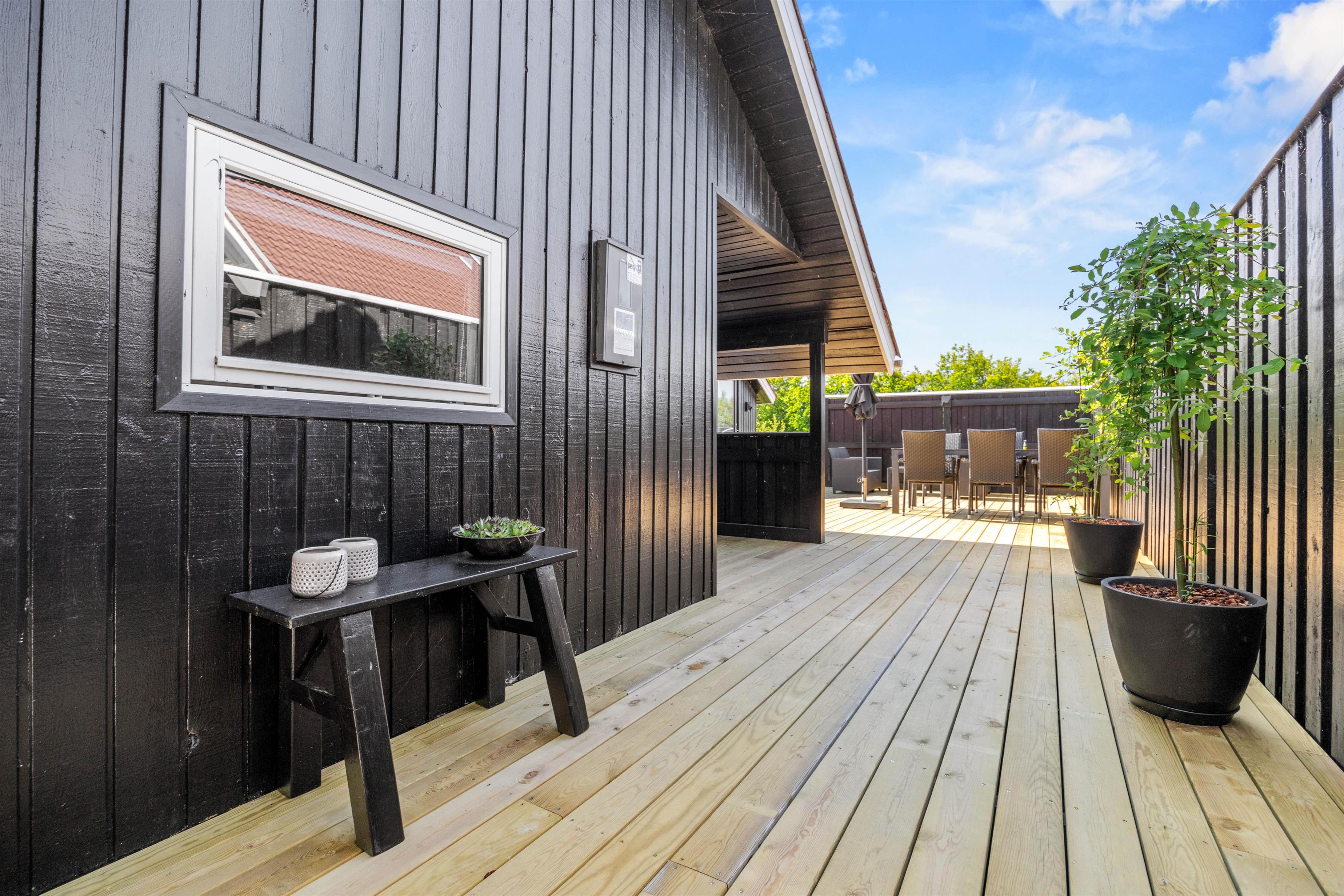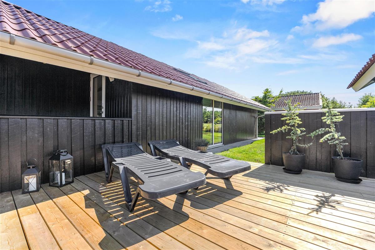 The holiday home at Bork Hytteby 138 features three different terrace areas: an open terrace, a sheltered terrace, and an enclosed terrace. The open terrace is perfect for sunny days when you want to soak up the sunshine. The sheltered terrace provides additional wind protection, creating a pleasantly protected atmosphere. The enclosed terrace allows you to enjoy the outdoor space even on cooler days.