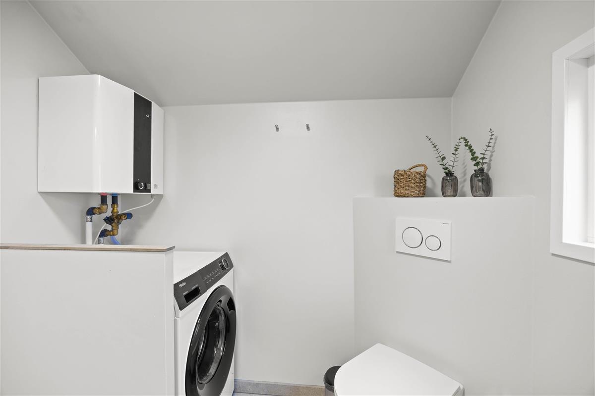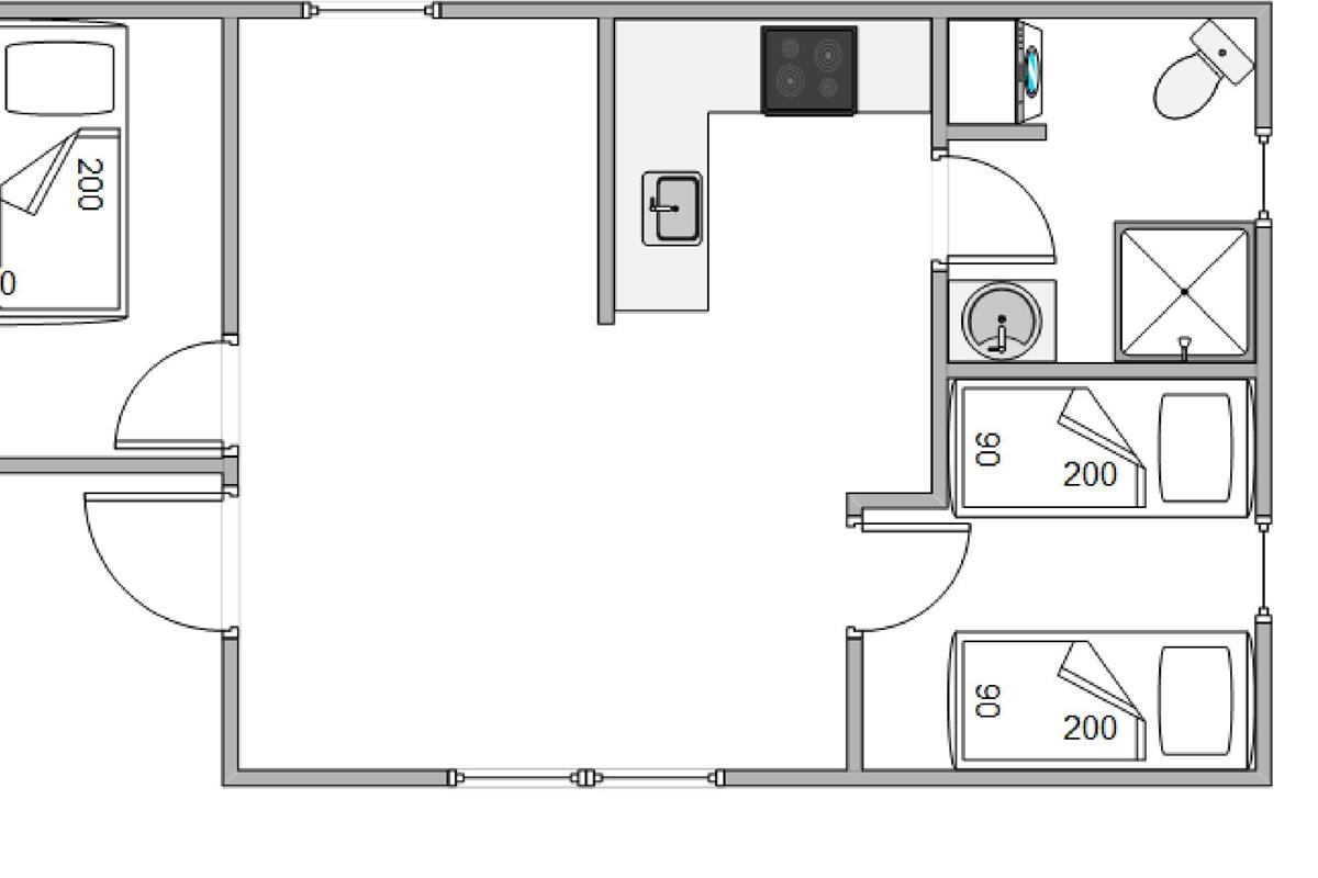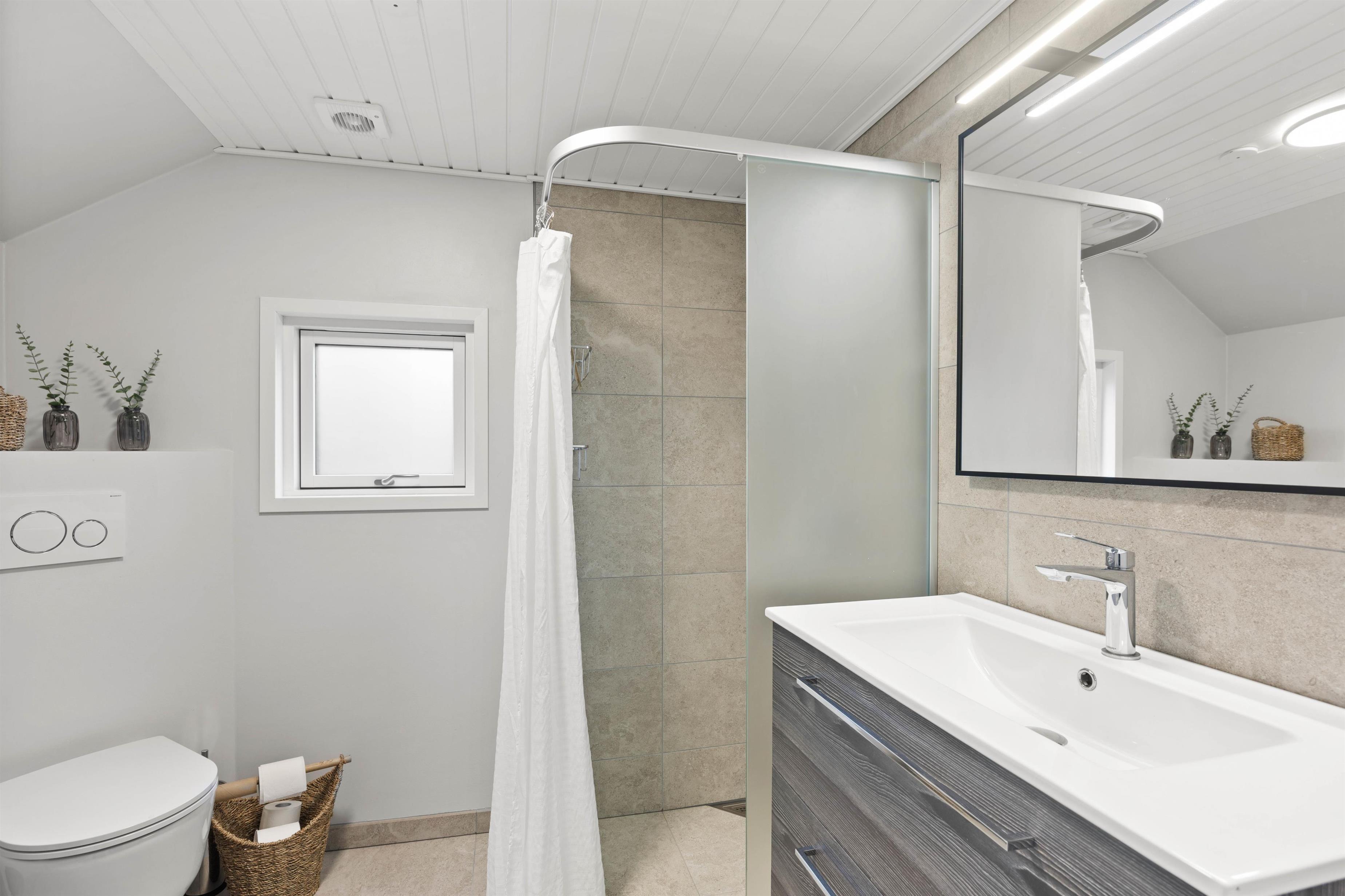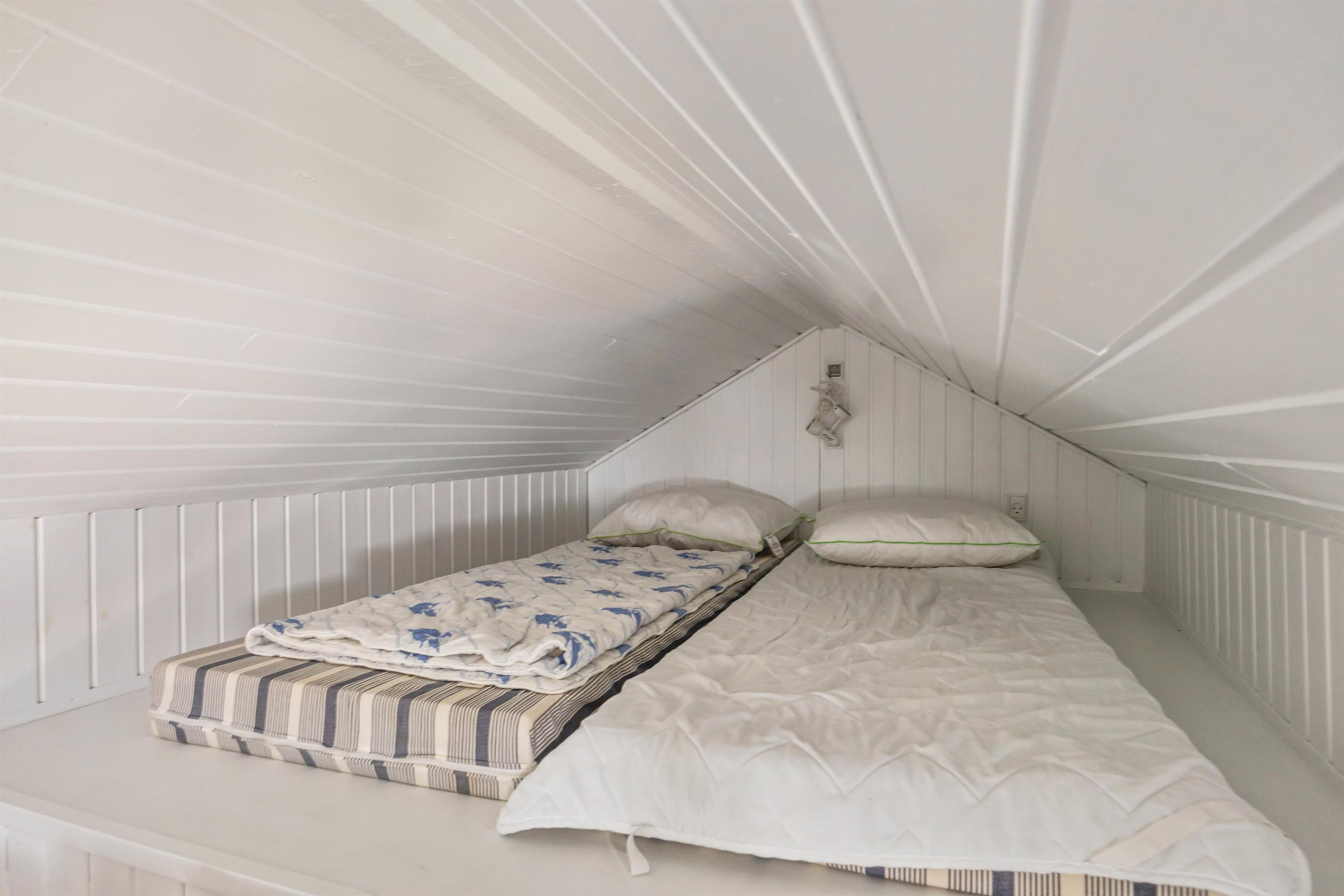 The holiday home offers two bedrooms. The main bedroom features a double bed, while the second bedroom provides two single beds. The small additional space in the loft is perfect for children or occasional overnight guests. The bathroom is modern and functional, featuring underfloor heating for extra comfort on cold days. A washing machine is also available, ensuring you always have fresh clothes.