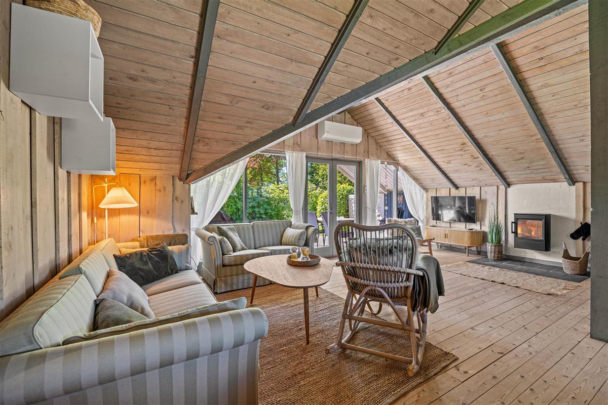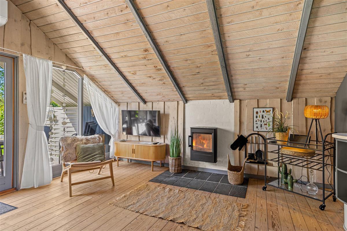 The living room features a charming wood-burning stove that fills the space with pleasant warmth, creating that classic holiday home atmosphere that many seek during their break. Gather around the flames while enjoying a hot cup of cocoa and reflecting on the day's adventures. The living room's Chromecast allows you to stream your favourite films and series.