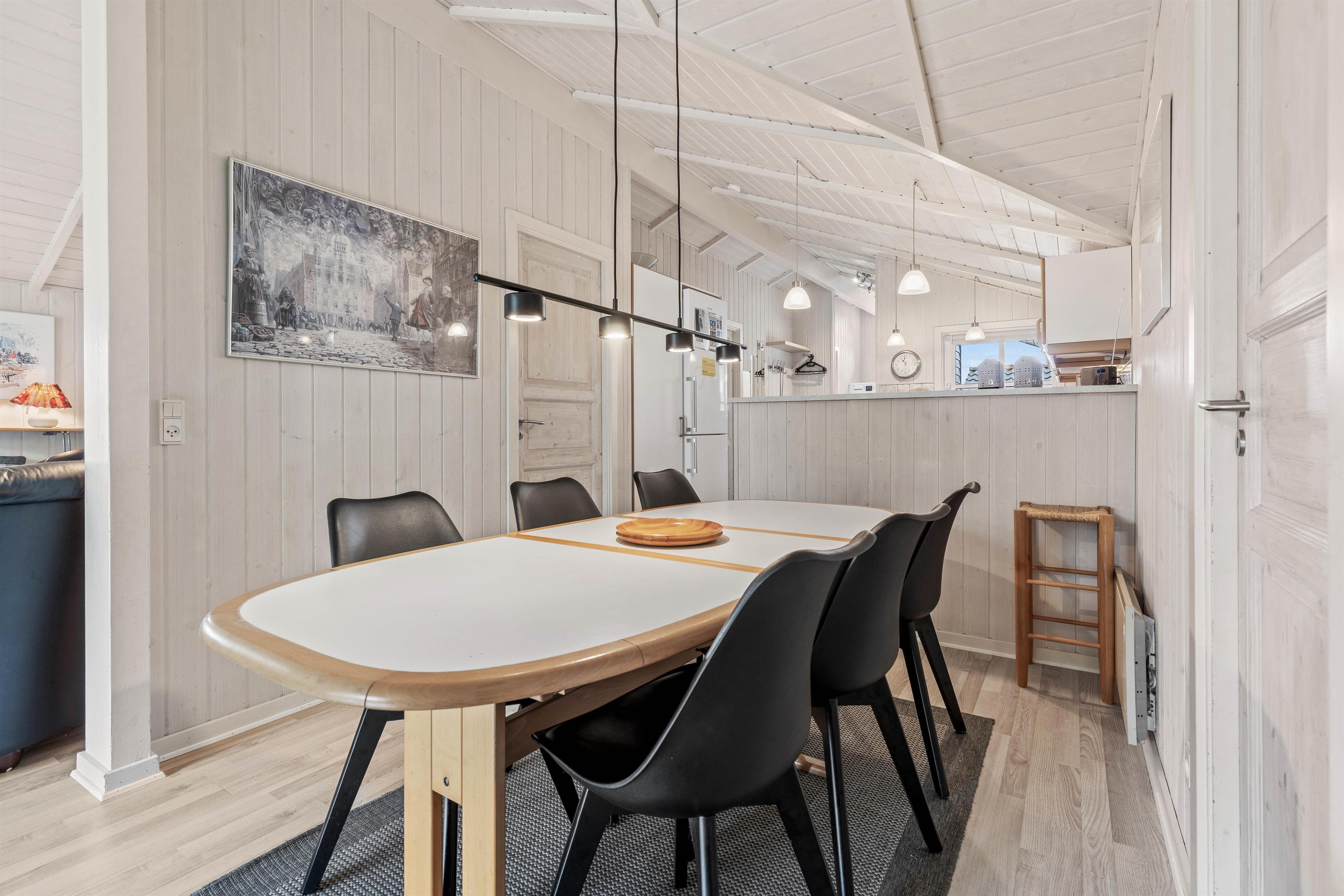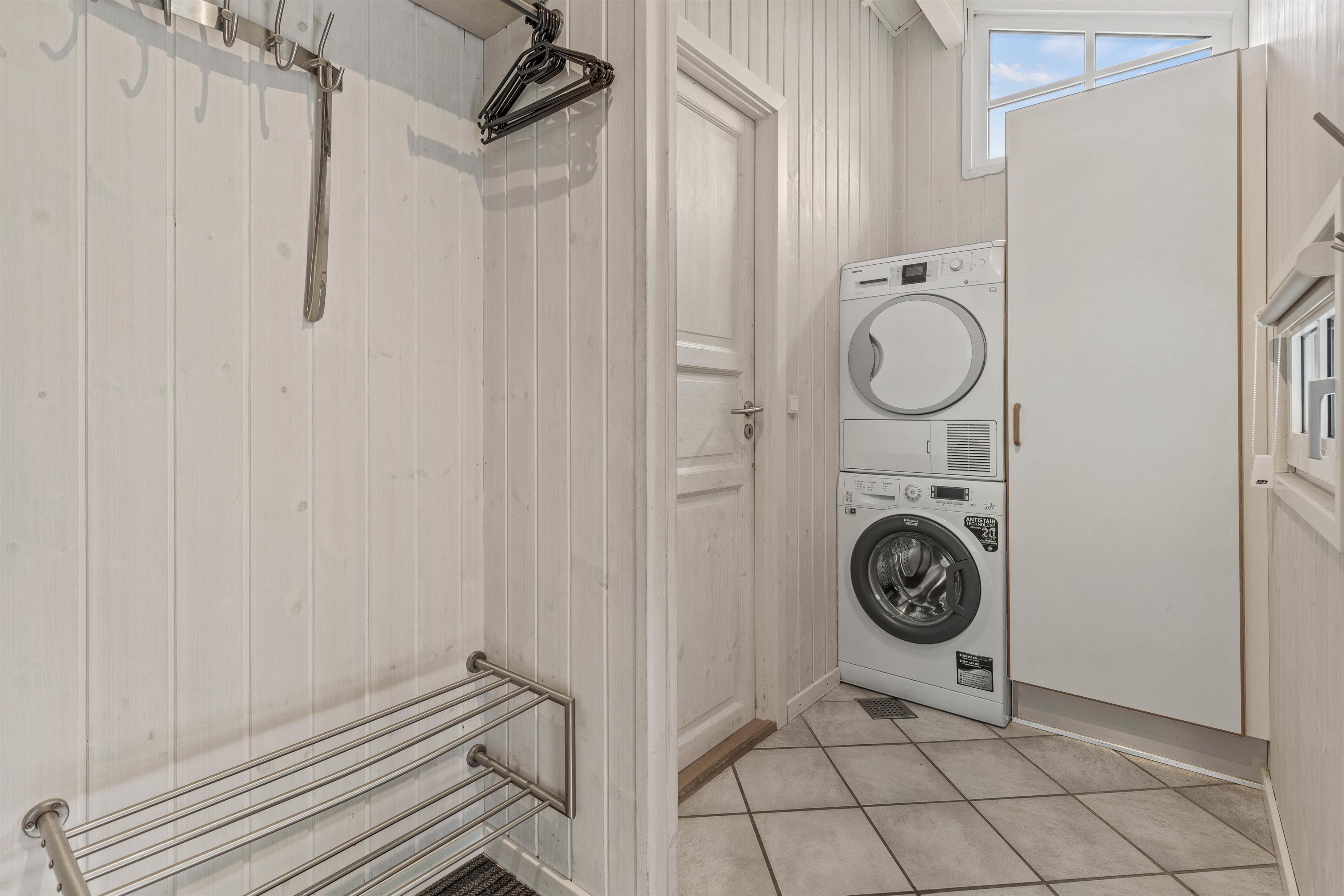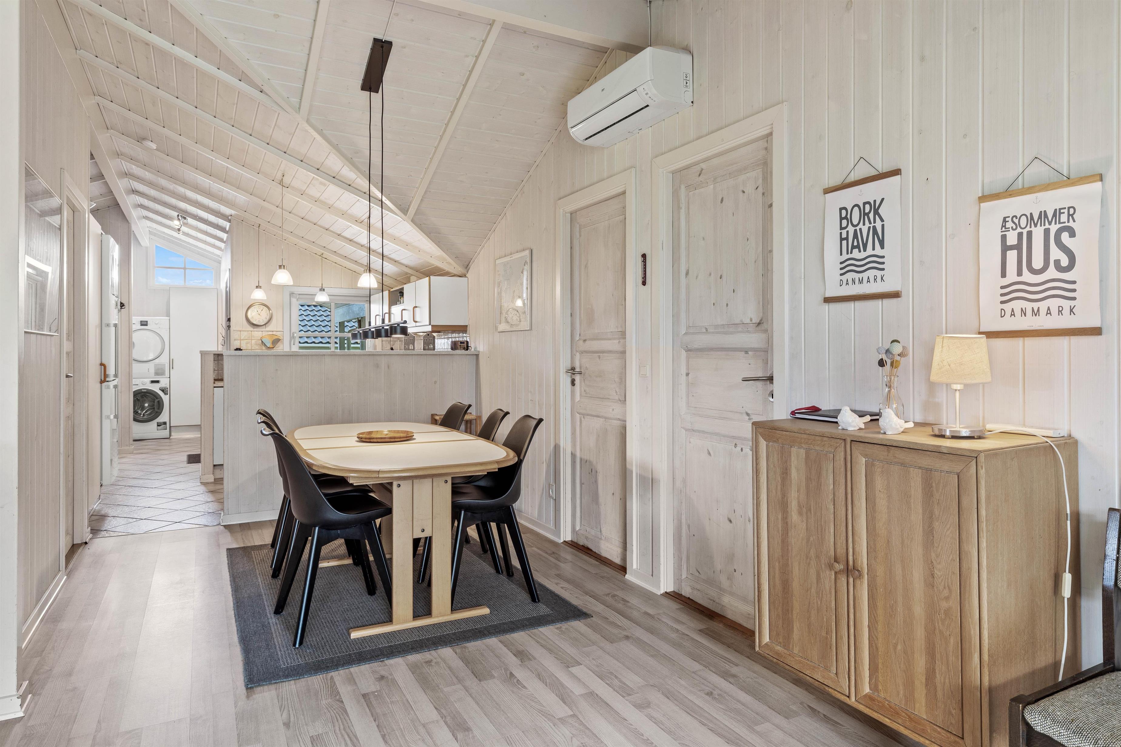 The holiday home in Bork Havn has a total living space of 102 square metres, providing ample room for up to 6 people. After an exciting day at the beach, you can unwind in front of the crackling wood-burning stove. The holiday home features a comfortable living area with Google Chromecast, allowing you to enjoy your favourite films and series on the large screen. The modern fitted kitchen with dishwasher makes preparing meals together a pleasure. Three bedrooms, furnished with two double beds and two single beds, ensure peaceful nights and a good start to each day. Thanks to underfloor heating in the bathroom, you'll stay comfortably warm even during the cooler seasons. In addition to the main bathroom with whirlpool, there's a separate guest WC. This extra facility ensures no morning queues and plenty of space for everyone's personal routines. A washing machine and tumble dryer mean you'll always have fresh laundry available, even during longer stays.