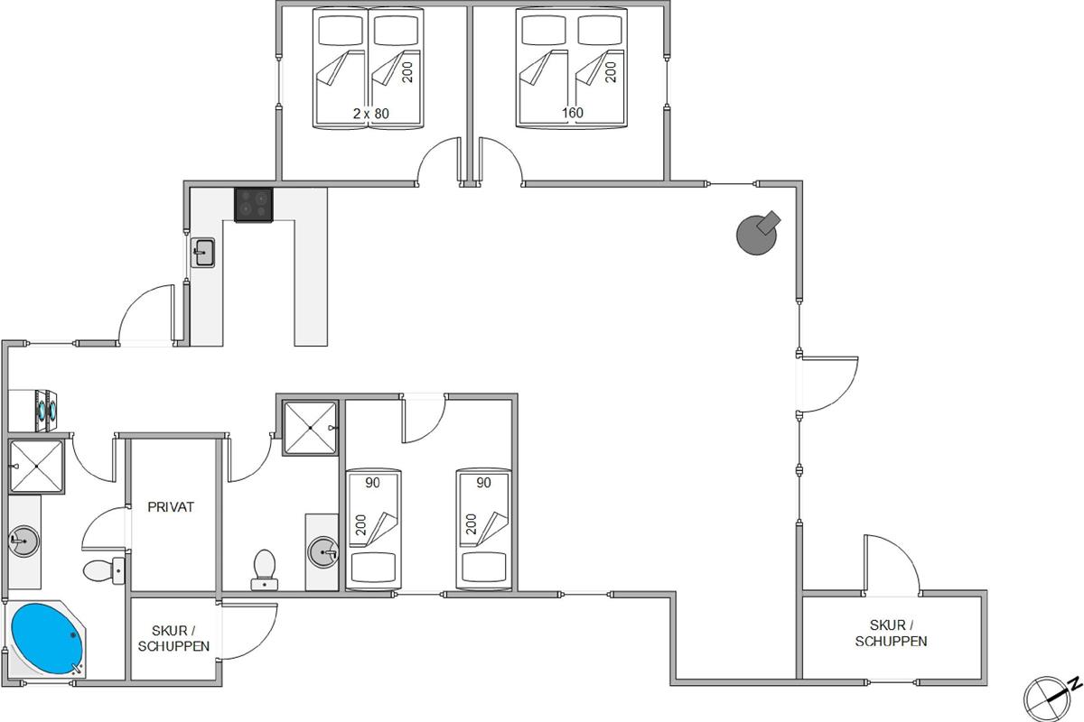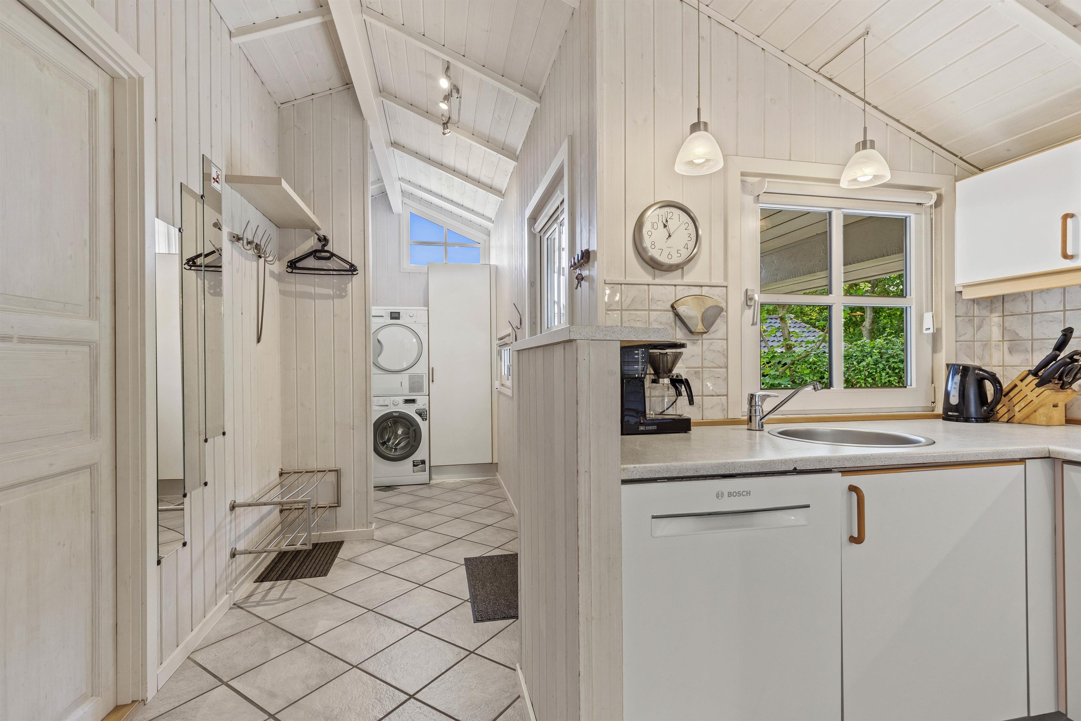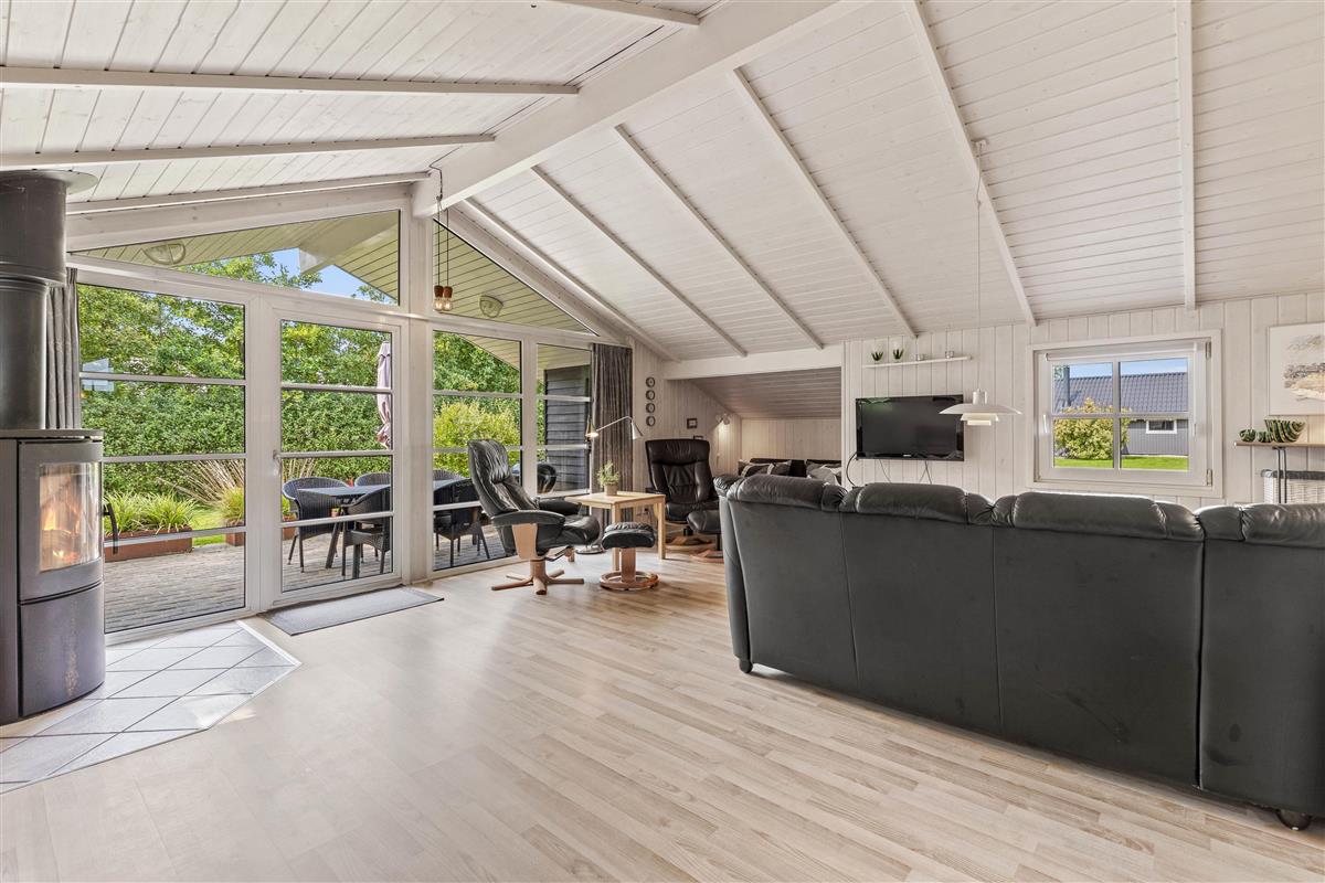 The holiday home in Bork Havn has a total living space of 102 square metres, providing ample room for up to 6 people. After an exciting day at the beach, you can unwind in front of the crackling wood-burning stove. The holiday home features a comfortable living area with Google Chromecast, allowing you to enjoy your favourite films and series on the large screen. The modern fitted kitchen with dishwasher makes preparing meals together a pleasure. Three bedrooms, furnished with two double beds and two single beds, ensure peaceful nights and a good start to each day. Thanks to underfloor heating in the bathroom, you'll stay comfortably warm even during the cooler seasons. In addition to the main bathroom with whirlpool, there's a separate guest WC. This extra facility ensures no morning queues and plenty of space for everyone's personal routines. A washing machine and tumble dryer mean you'll always have fresh laundry available, even during longer stays.