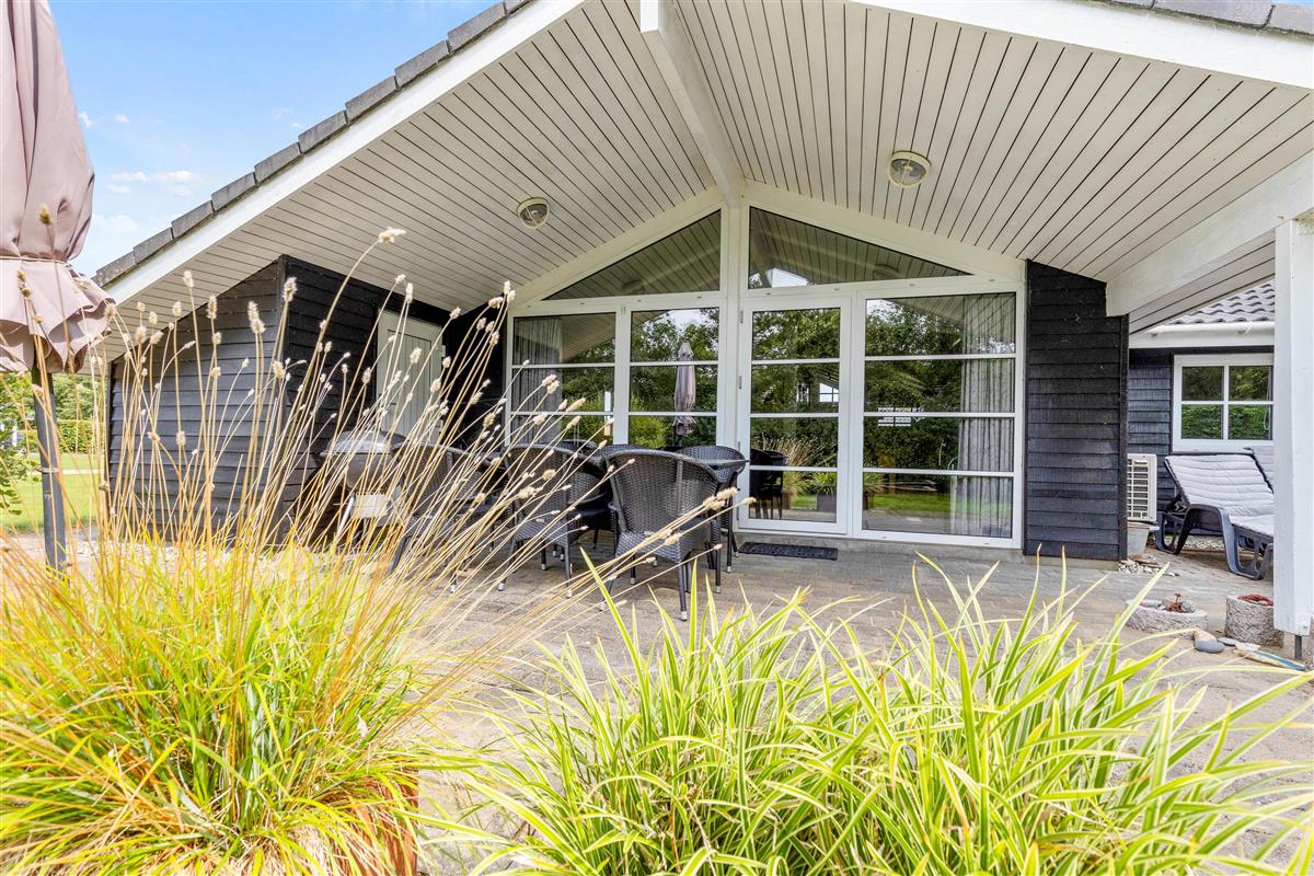 Children will have great fun on the spacious lawn with swing and sandpit. Whether building sandcastles or soaring high on the swing – they'll be thrilled. While they play, you can fire up the barbecue and prepare a delicious outdoor meal. The screened terrace of the holiday home in Bork Havn offers a wonderful combination of shelter and freedom. You can relax undisturbed, protected from wind and prying eyes. The terrace is perfect for long evenings with a glass of wine, morning breakfast outdoors, or simply lounging in the sun. There's also a covered terrace, allowing you to sit outside and enjoy the fresh air even in changeable weather.