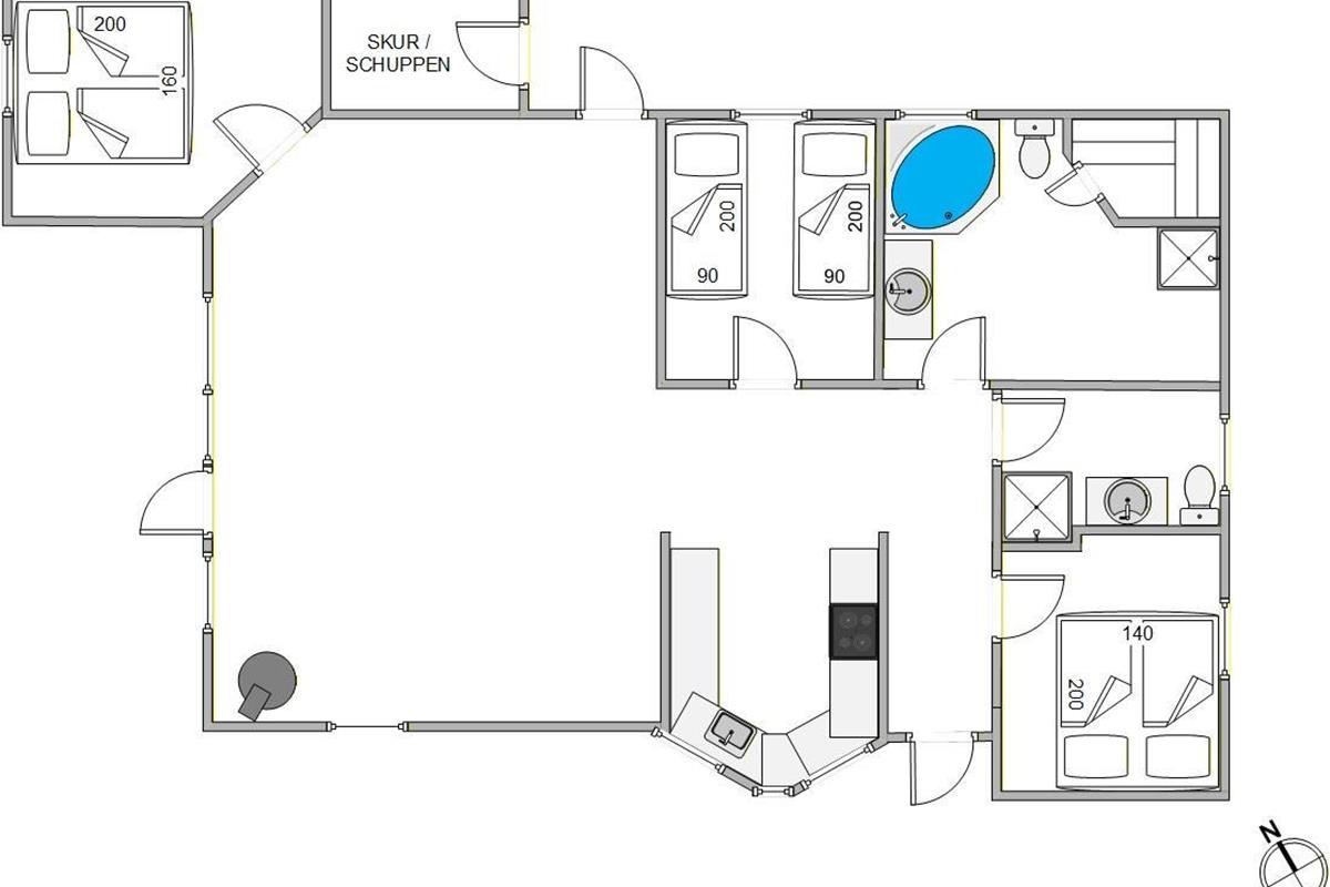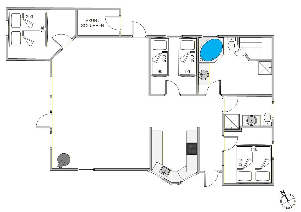 Erlebt die perfekte Kombination aus Komfort, Natur und Erholung an der dänischen Westküste. Dieses klassische Ferienhaus in Bork Havn, gelegen im Duevænget 33, bietet auf 94 qm Platz für bis zu 6 Personen und 1 Hund. Katzen sind aufgrund von Allergie leider nicht erlaubt. Freut euch auf entspannte Stunden in der Badetonne unter freiem Himmel, oder im Badezimmer mit Sauna und Whirlpool – ideal um die Seele baumeln zu lassen.