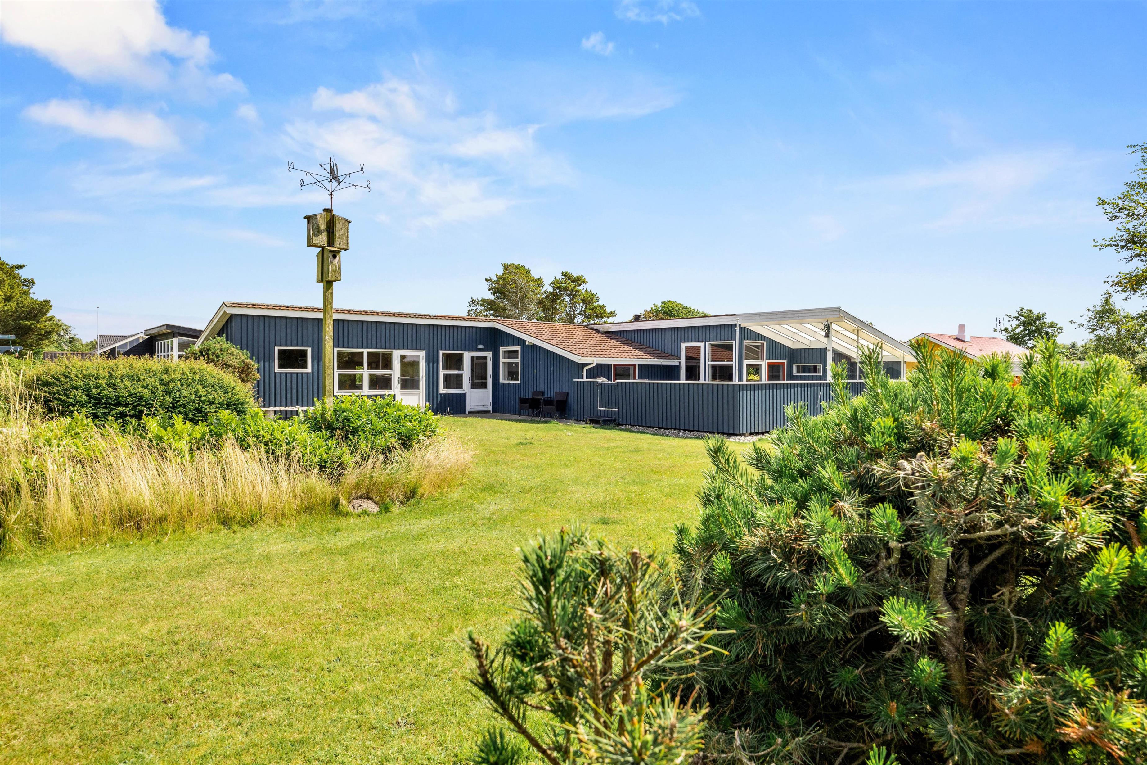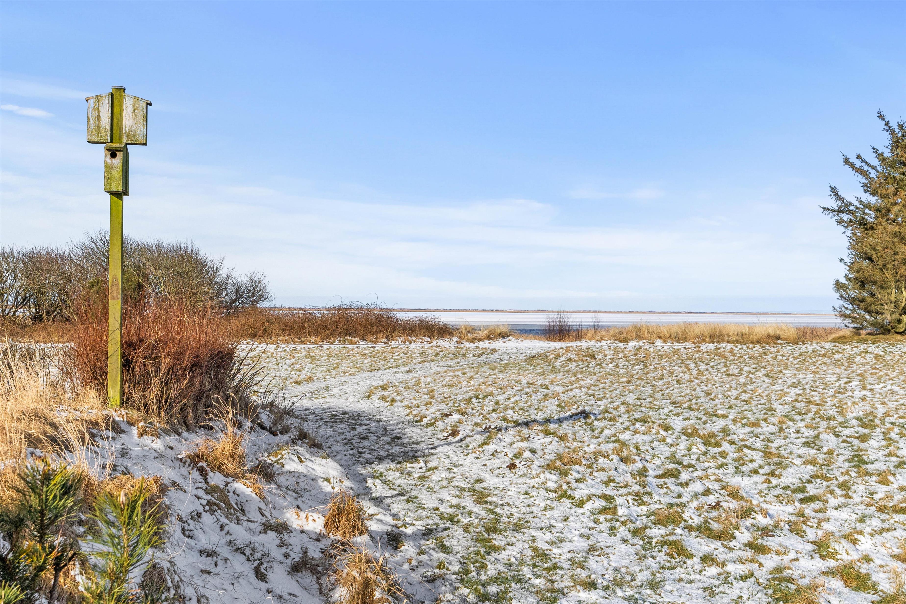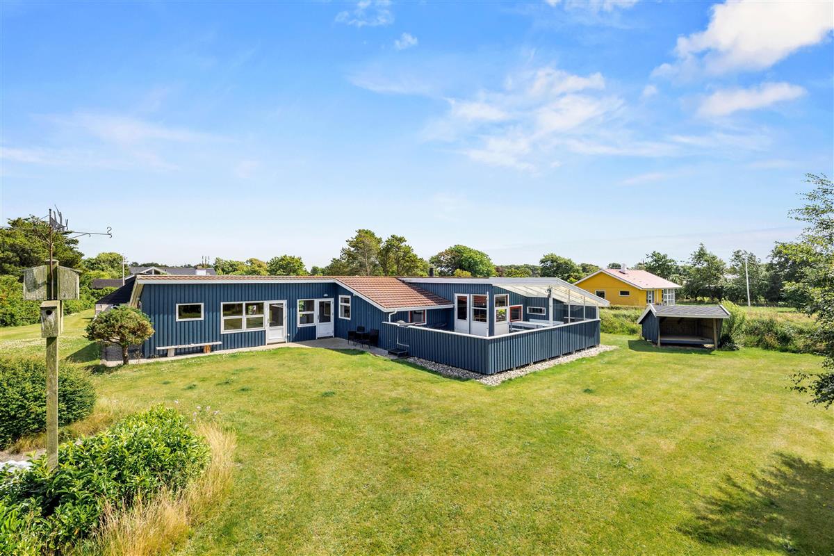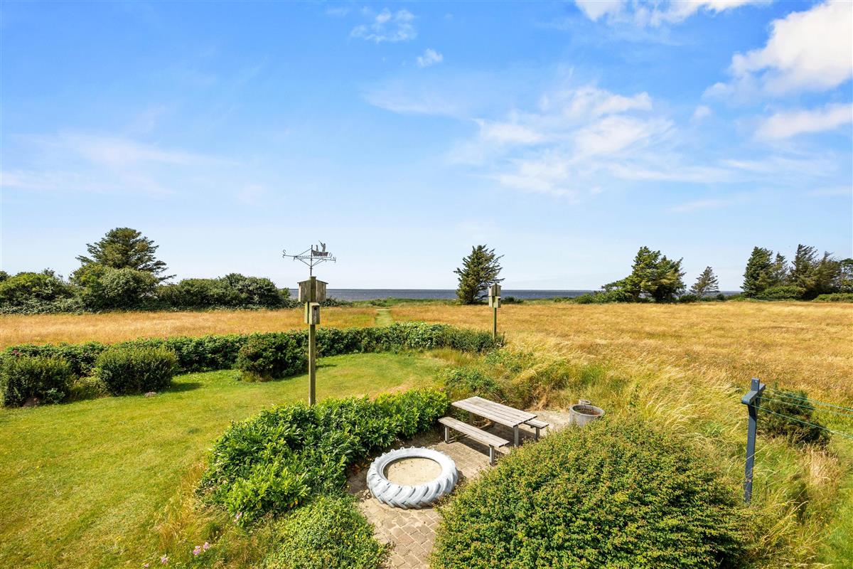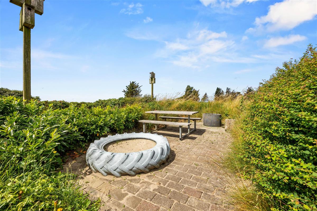 Die Rasenfläche bietet viel Platz zum Entspannen oder Spielen, und in der kleinen, gefliesten Ecke findet ihr einen Tisch mit Bank und einen Sandkasten, den die Kleinen lieben werden. Außerdem befindet sich ein Shelter auf dem Grundstück, der zum Übernachten genutzt werden kann, wenn ihr die frische westjütländische Luft und den Blick auf die Sterne die ganze Nacht über genießen möchtet.