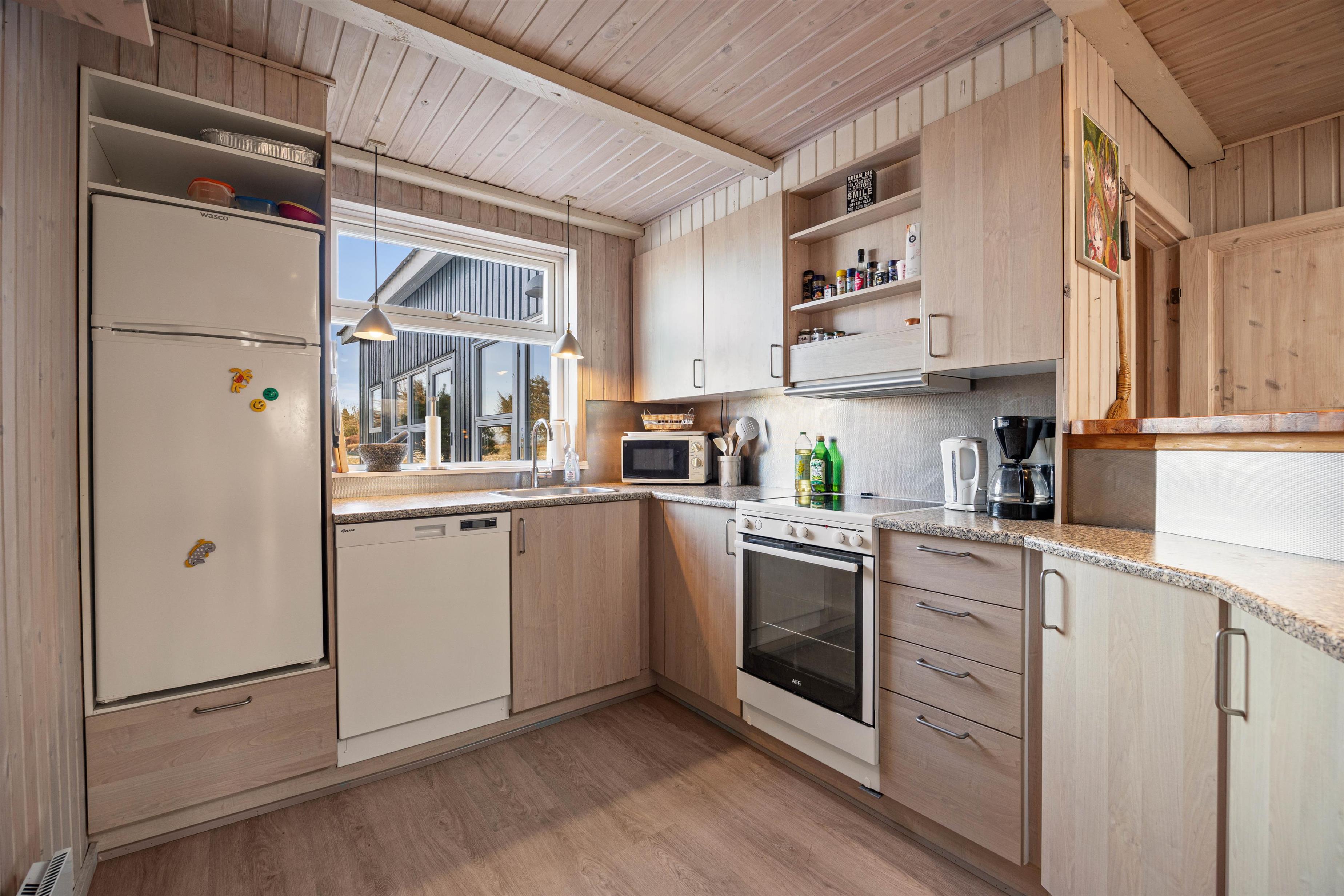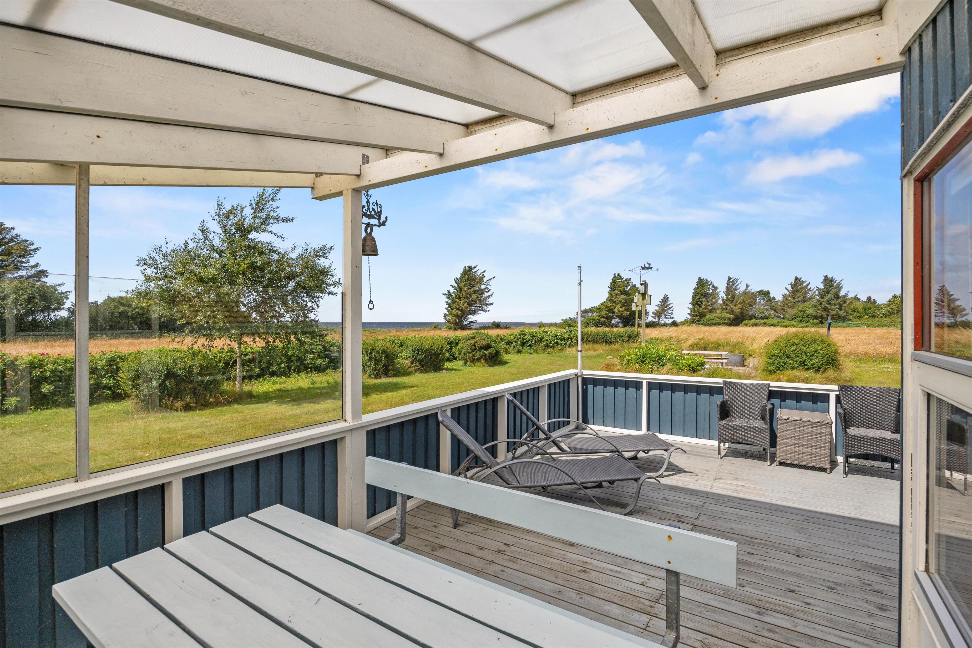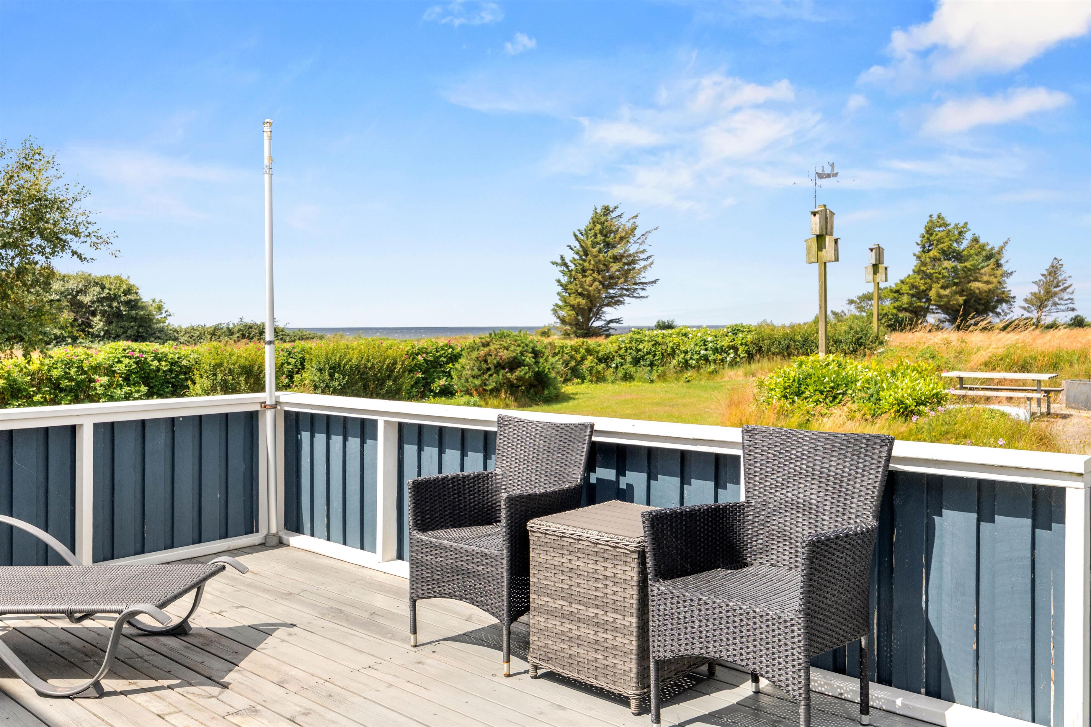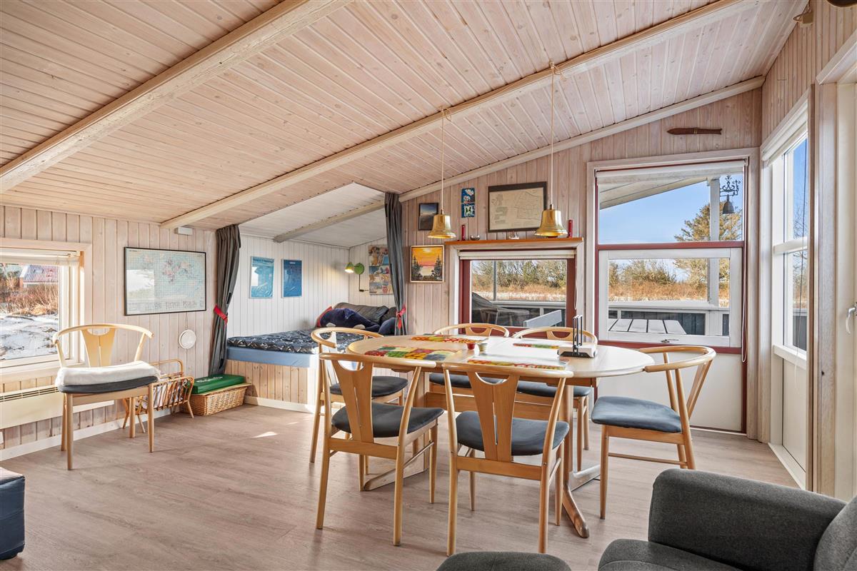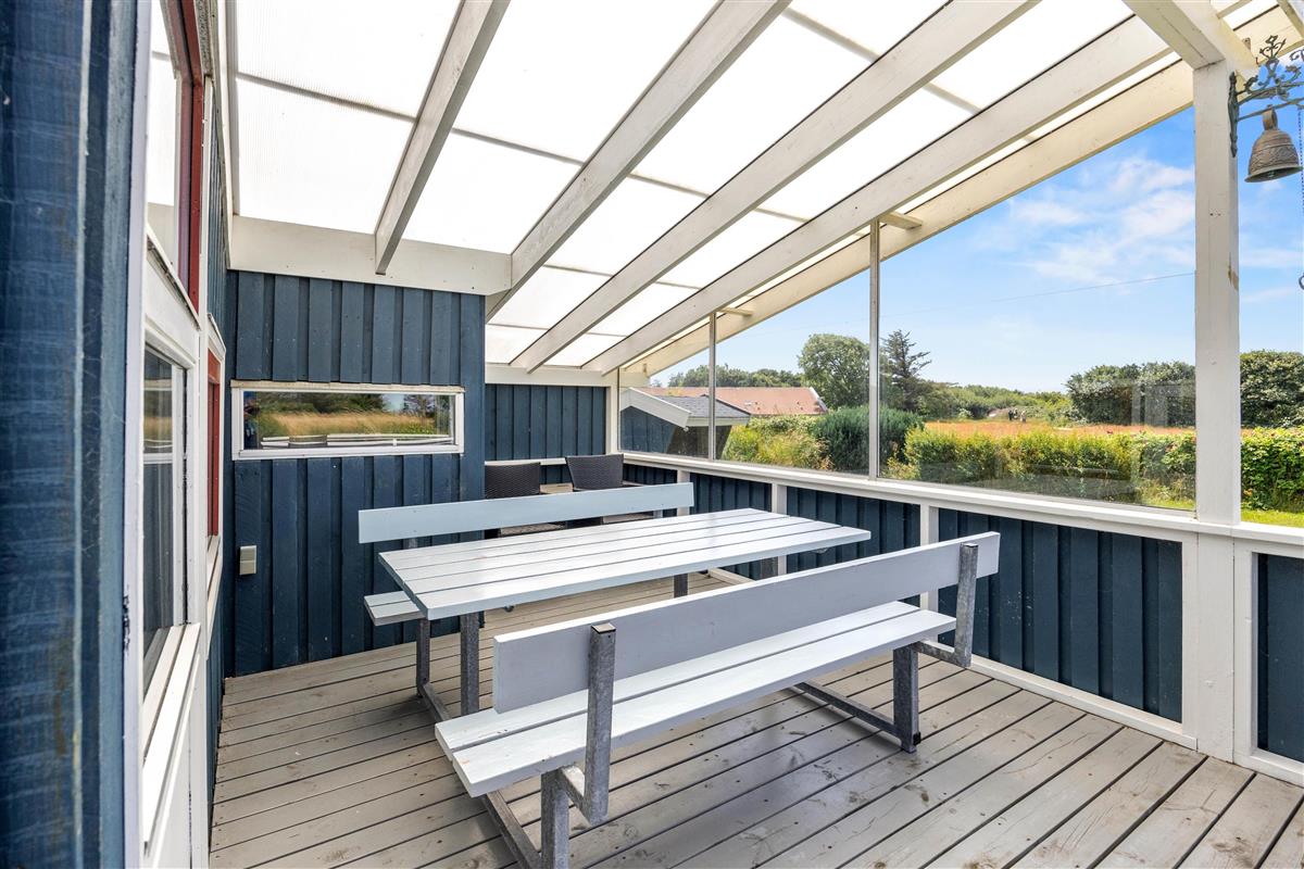 Die Rasenfläche bietet viel Platz zum Entspannen oder Spielen, und in der kleinen, gefliesten Ecke findet ihr einen Tisch mit Bank und einen Sandkasten, den die Kleinen lieben werden. Außerdem befindet sich ein Shelter auf dem Grundstück, der zum Übernachten genutzt werden kann, wenn ihr die frische westjütländische Luft und den Blick auf die Sterne die ganze Nacht über genießen möchtet.