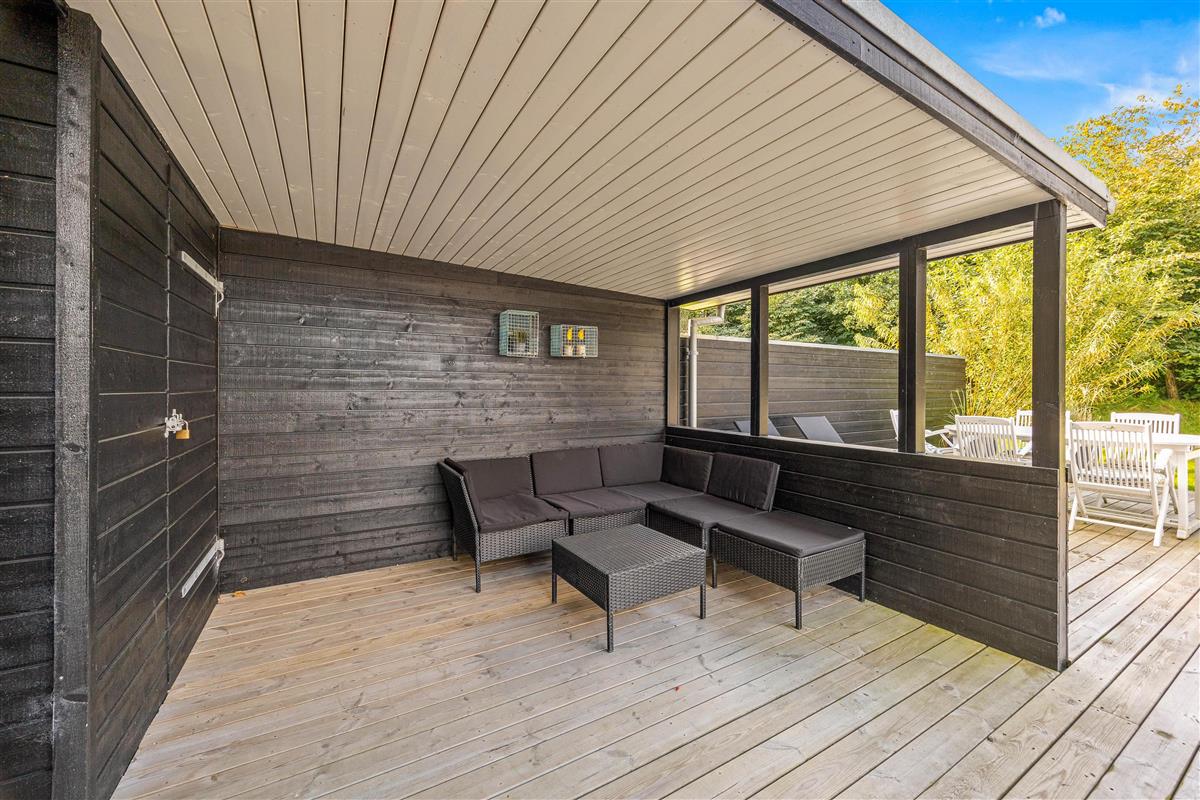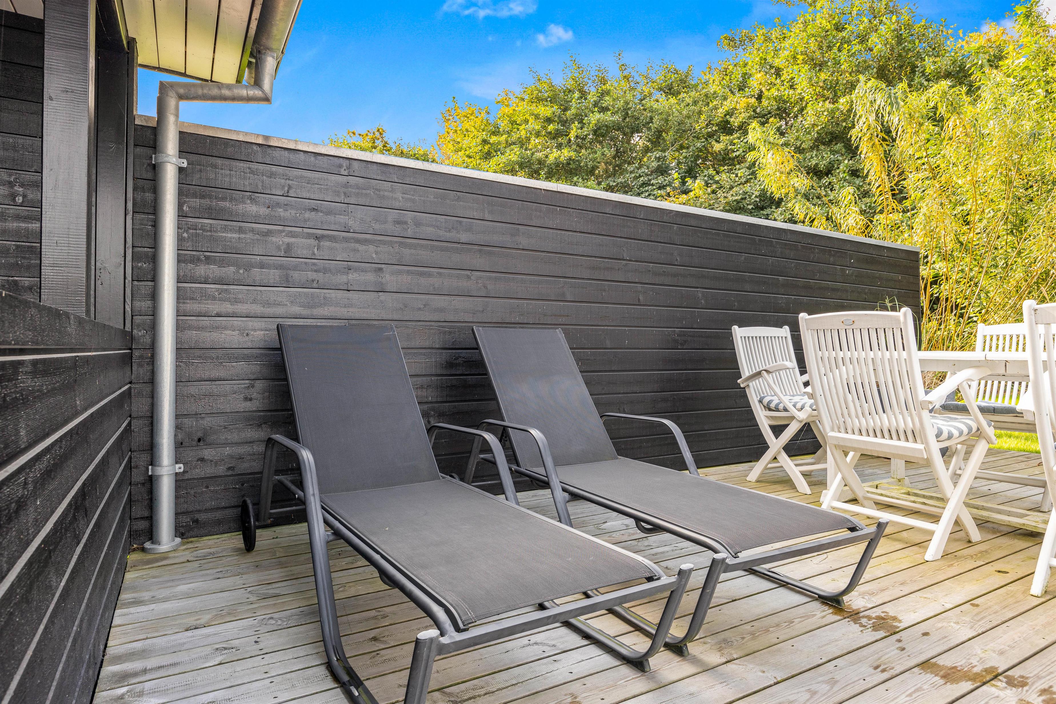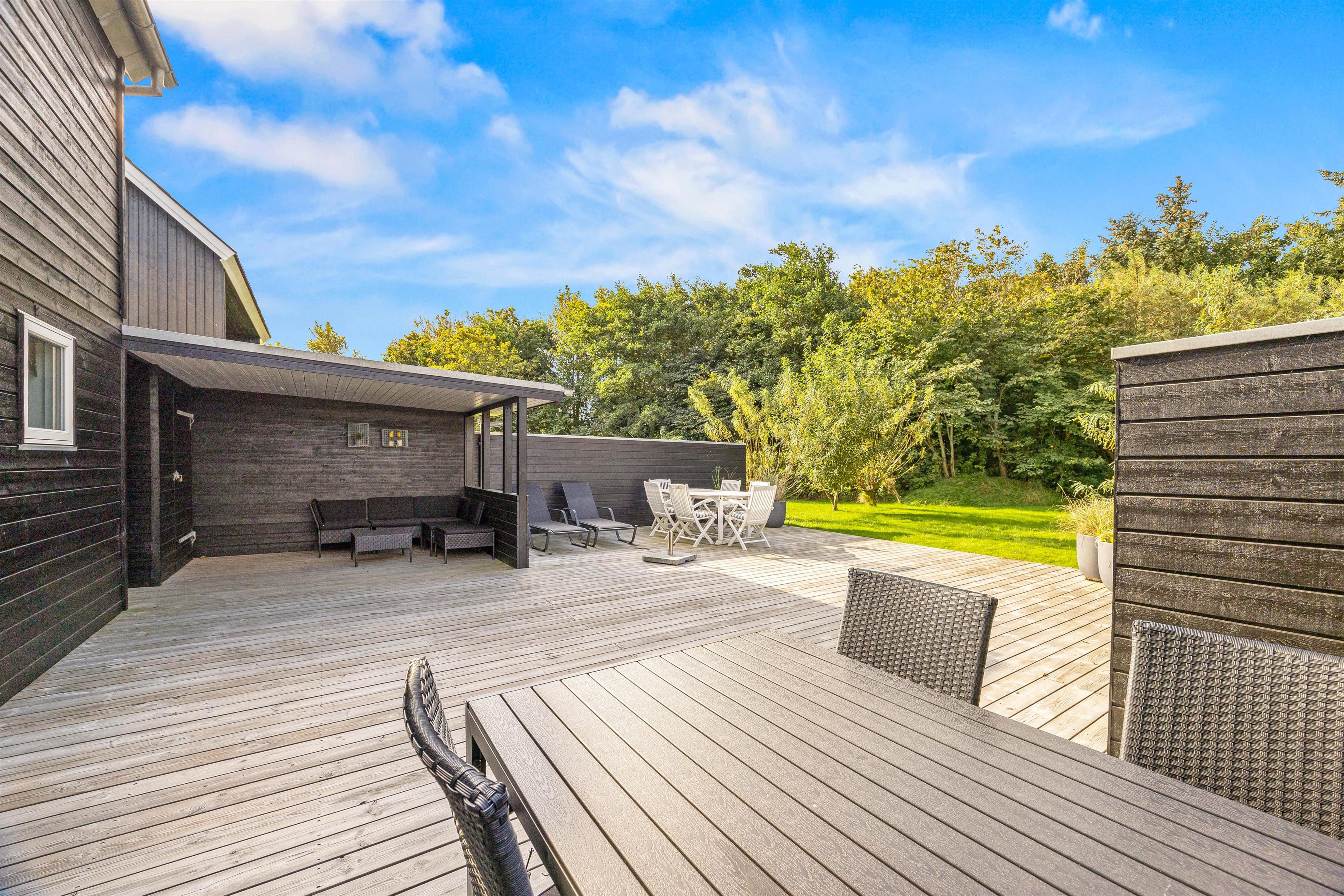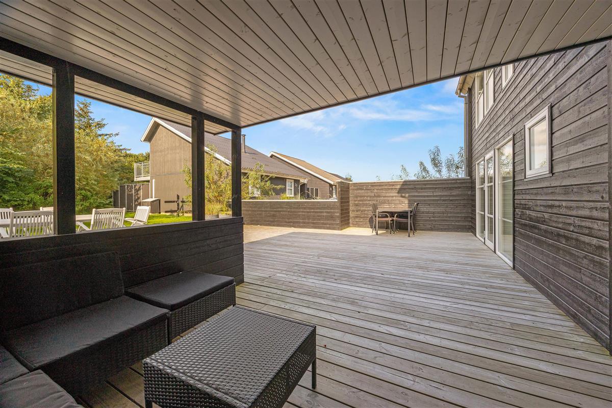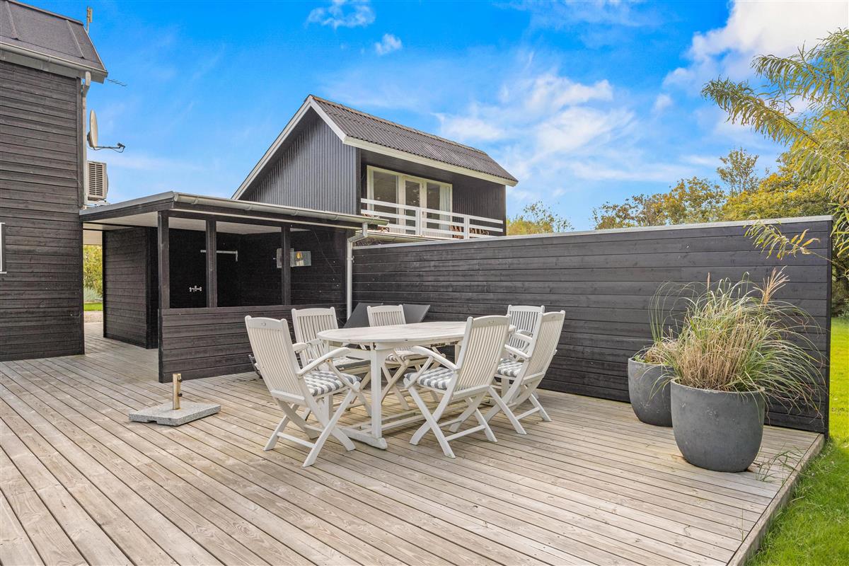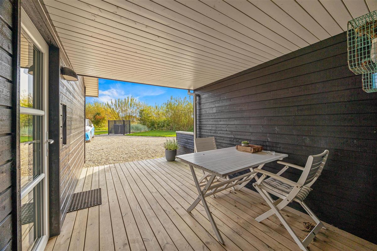 Your holiday home in idyllic Bork Havn features a well-sheltered, southwest-facing terrace with comfortable garden furniture and sun loungers. Here you can sunbathe, enjoy breakfast, or sample a glass of wine in the evening. If it rains, the covered area provides shelter. The 452-square-metre plot includes a lawn area with plenty of space for a game of Viking chess (Kubb).