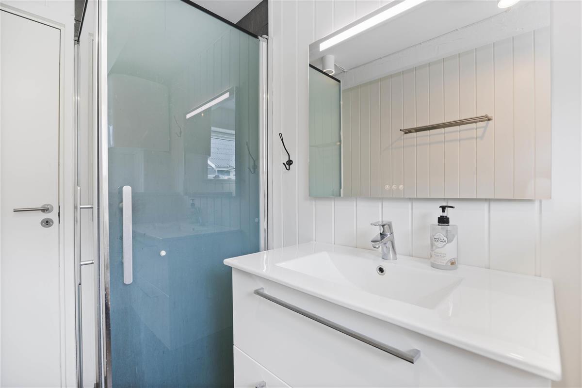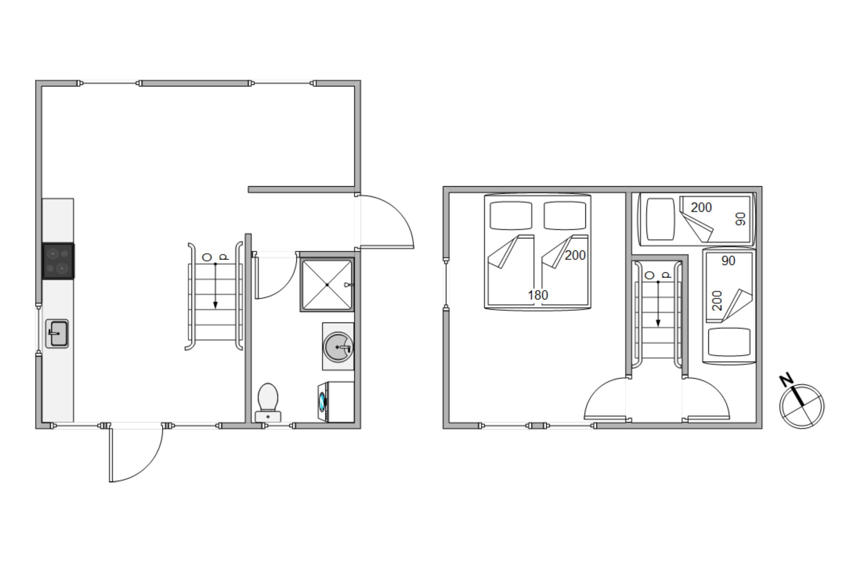 Your idyllic holiday home is practically arranged over two floors. The ground floor features a modern bathroom with shower and underfloor heating, plus a spacious living area with open-plan kitchen.