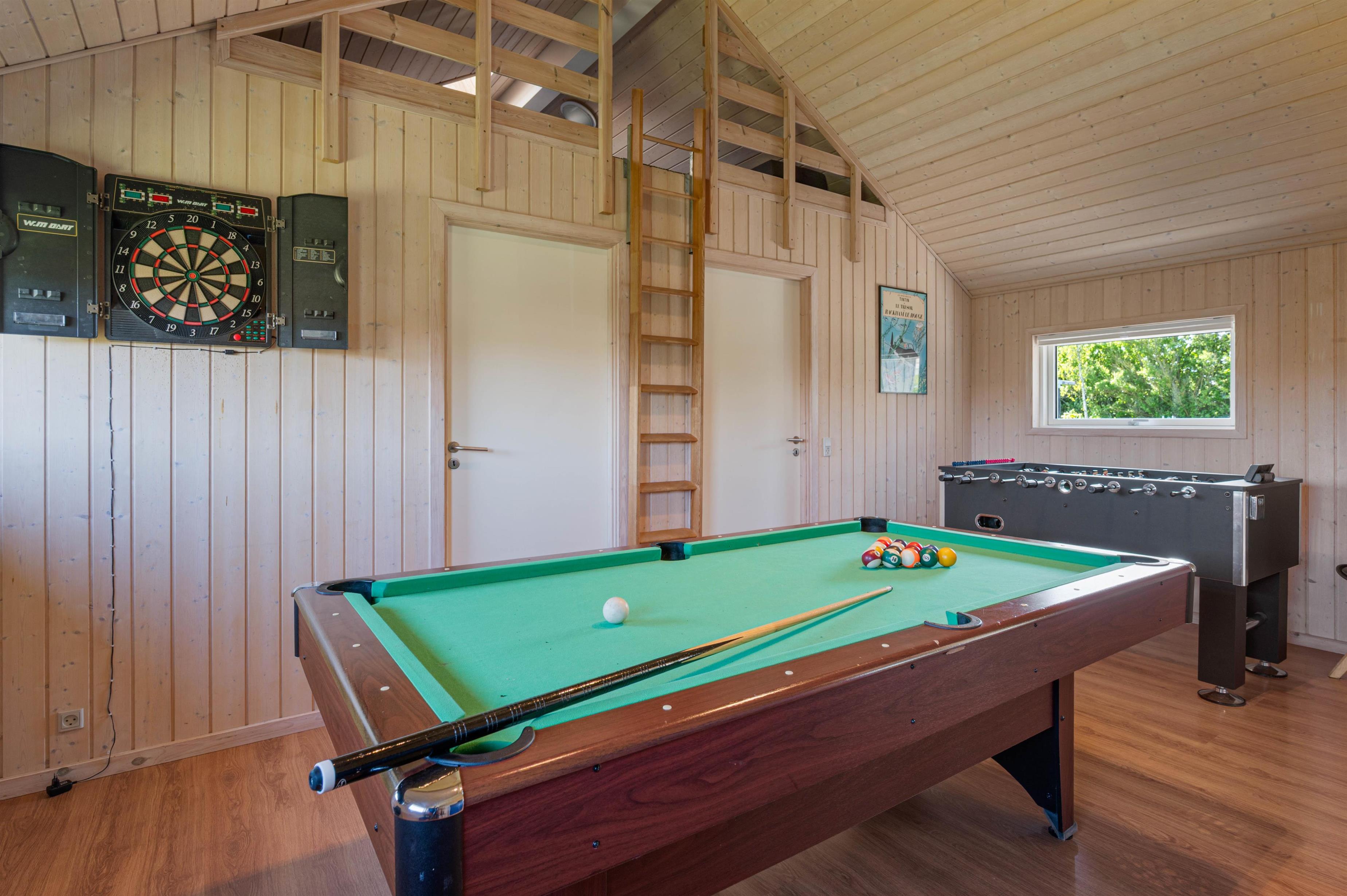 There's plenty to keep everyone entertained! Alongside a pool table and table football, you'll find a dart board, and the mezzanine games room features various electronic games. There's no shortage of fun and variety!
