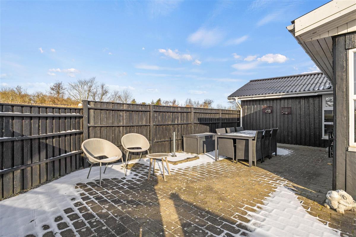 Draußen erstreckt sich ein schönes 1.037 m² großes Grundstück, das viel Platz zum Spielen, Entspannen und für gemütliche Stunden bietet. Das Ferienhaus verfügt sowohl über eine offene als auch über eine abgeschirmte Terrasse, die sich perfekt für Mahlzeiten, Sonnenbaden oder eine Tasse Kaffee im Windschutz eignet.