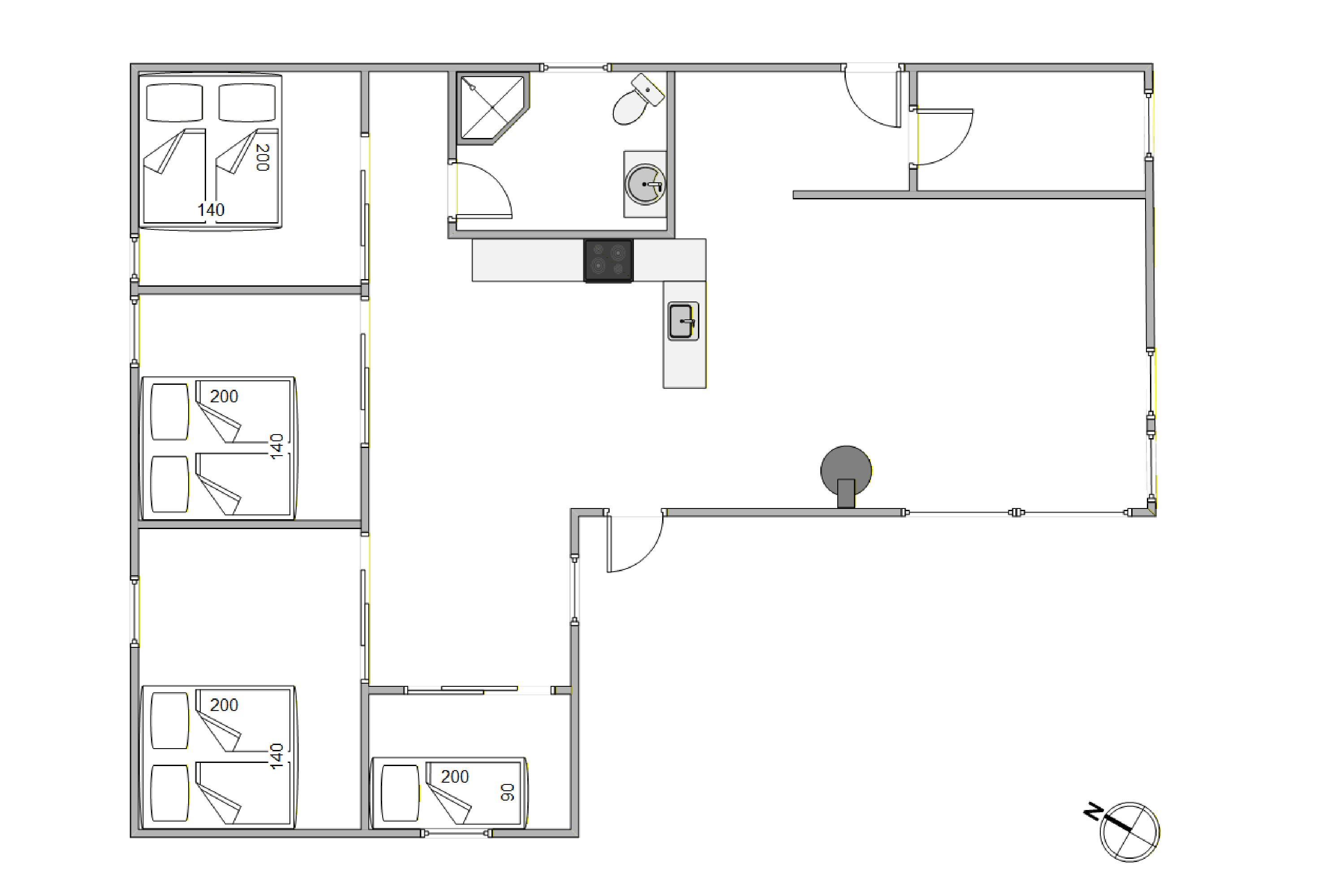 Das Ferienhaus verfügt über 1 Badezimmer mit Fußbodenheizung und 7 komfortable Schlafplätze, verteilt auf 4 Schlafzimmer. 3 der Schlafzimmer sind mit bequemen Doppelbetten ausgestattet und das 4. verfügt über 1 Einzelbett.