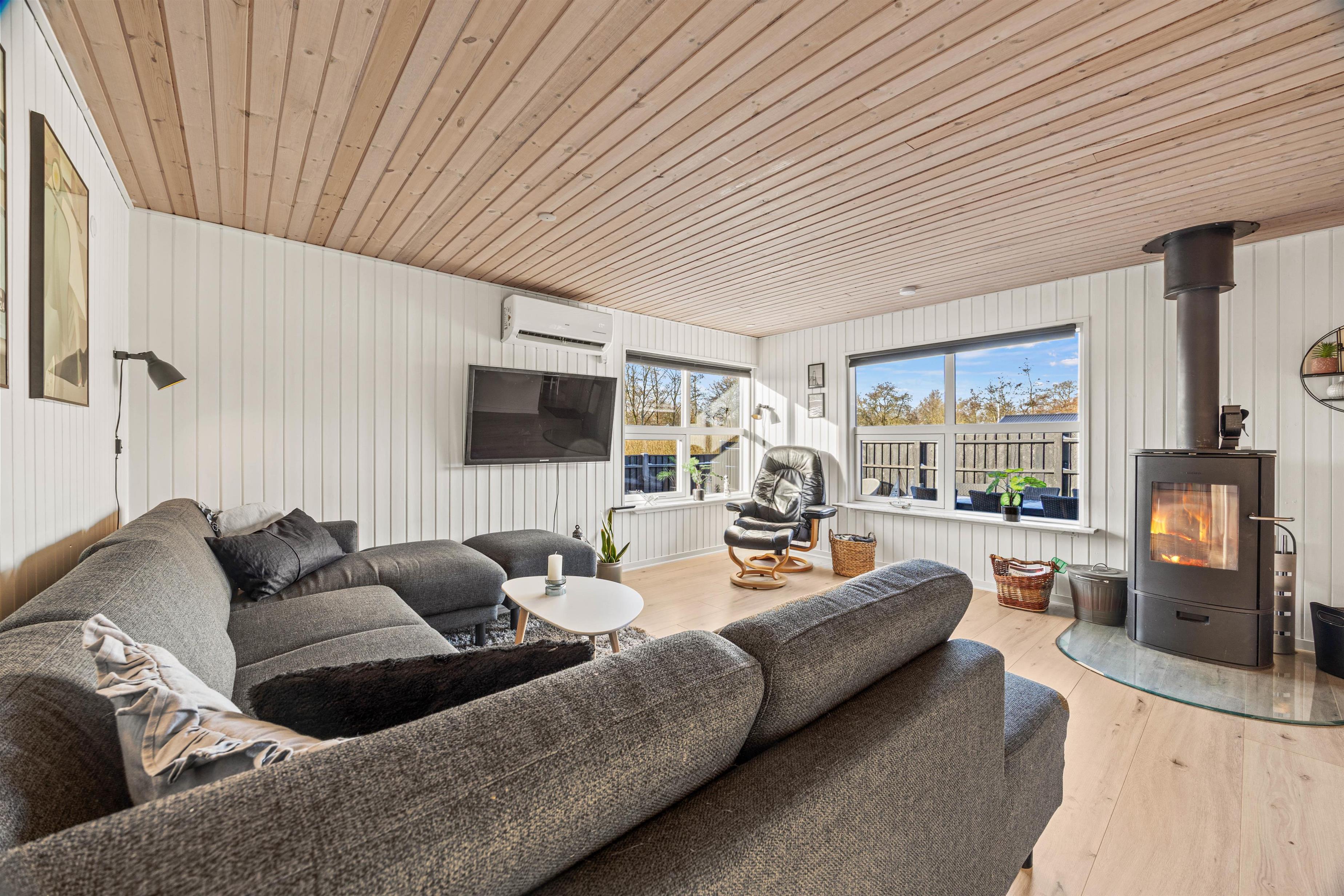 Im Tranvænget 2 in Bork Havn erwartet euch ein gemütliches Ferienhaus mit 83 m² Größe für 6 Personen – und natürlich Platz für 2 Hunde. Im Inneren bietet das Ferienhaus einen warmen und stimmungsvollen Kaminofen sowie eine energiesparende Luft-Luft-Wärmepumpe, die das ganze Jahr über für Komfort sorgt.