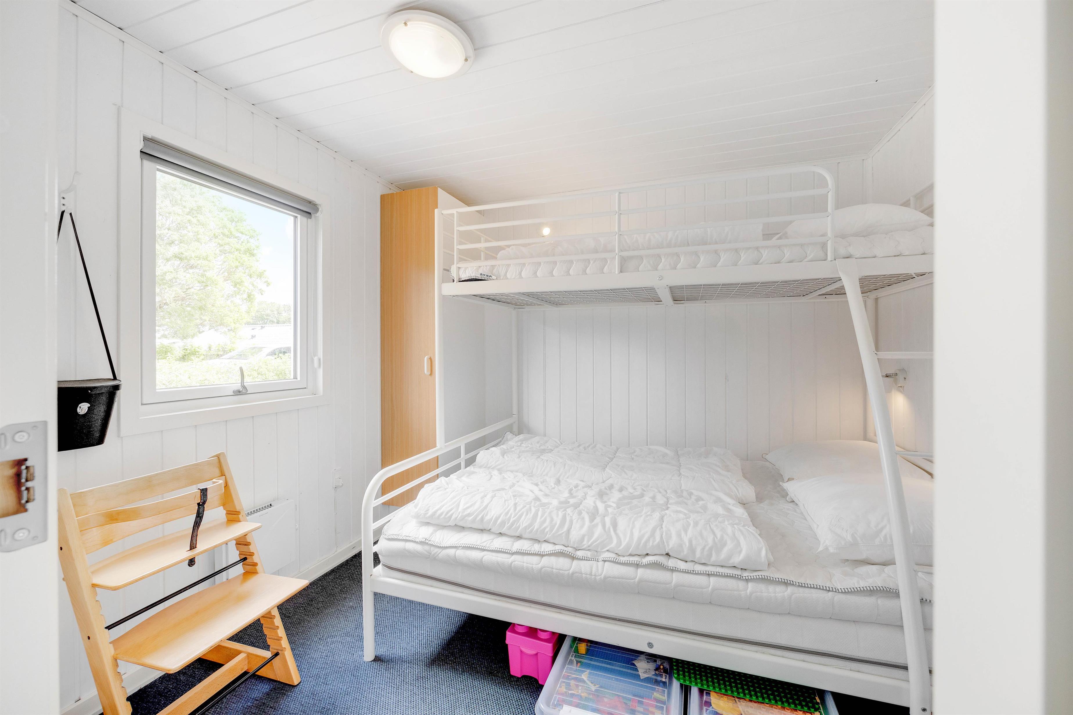 The three bedrooms accommodate up to 6 people. One features a double bed, another has two single beds, and the third bedroom contains a bunk bed – ideal for families or small groups.