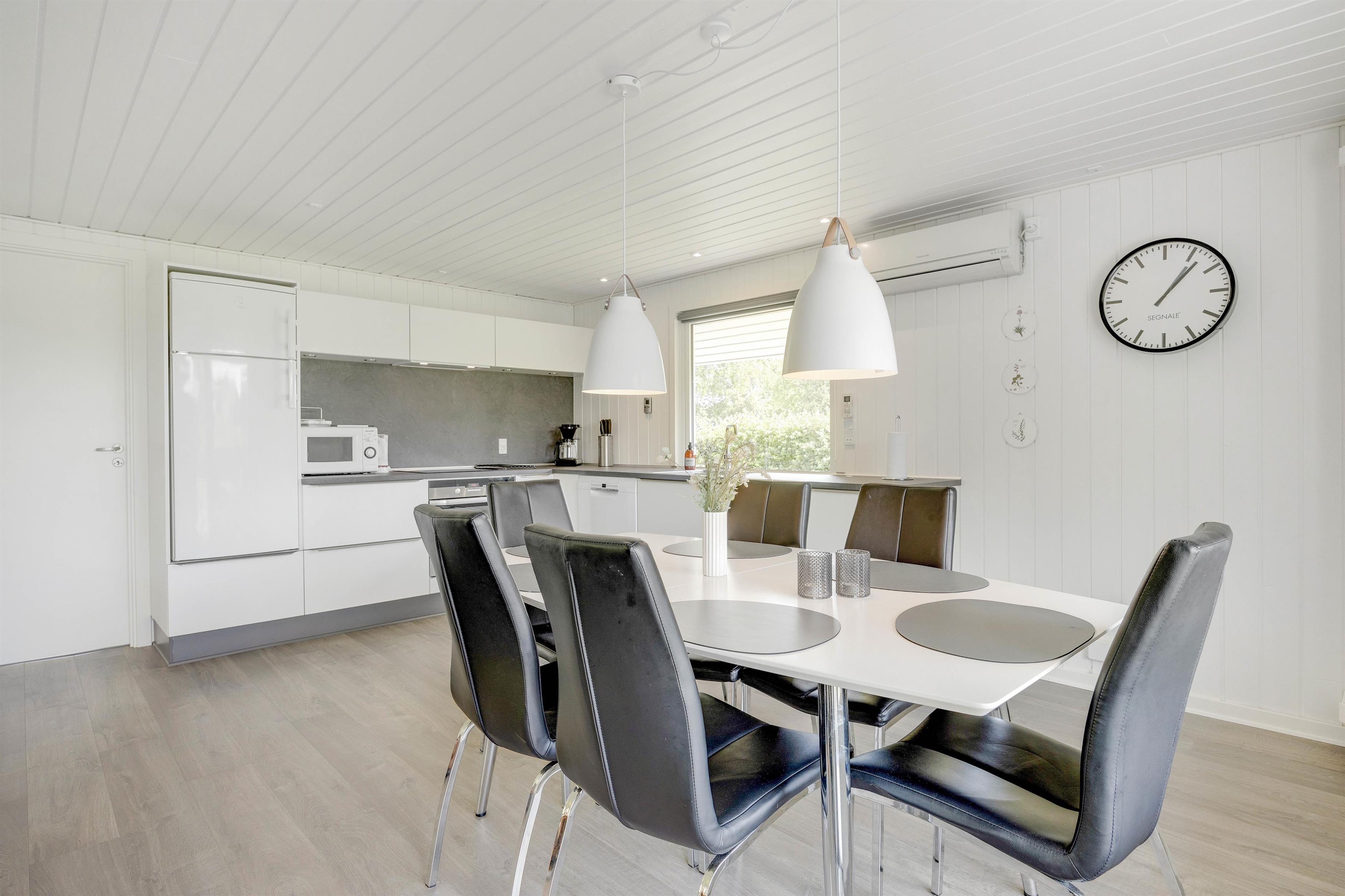 The holiday home at Horsfold 150 was renovated in 2022 and impresses with its modern yet cosy furnishings. The centrepiece of the living area is the wood-burning stove, providing welcome warmth on cooler days and creating an inviting atmosphere. It's the perfect spot for relaxation – whether reading a good book or enjoying a cosy film evening with loved ones. The well-equipped kitchen makes cooking a pleasure, featuring practical appliances including a dishwasher. Adjacent to the kitchen, the dining table awaits your delicious meals.