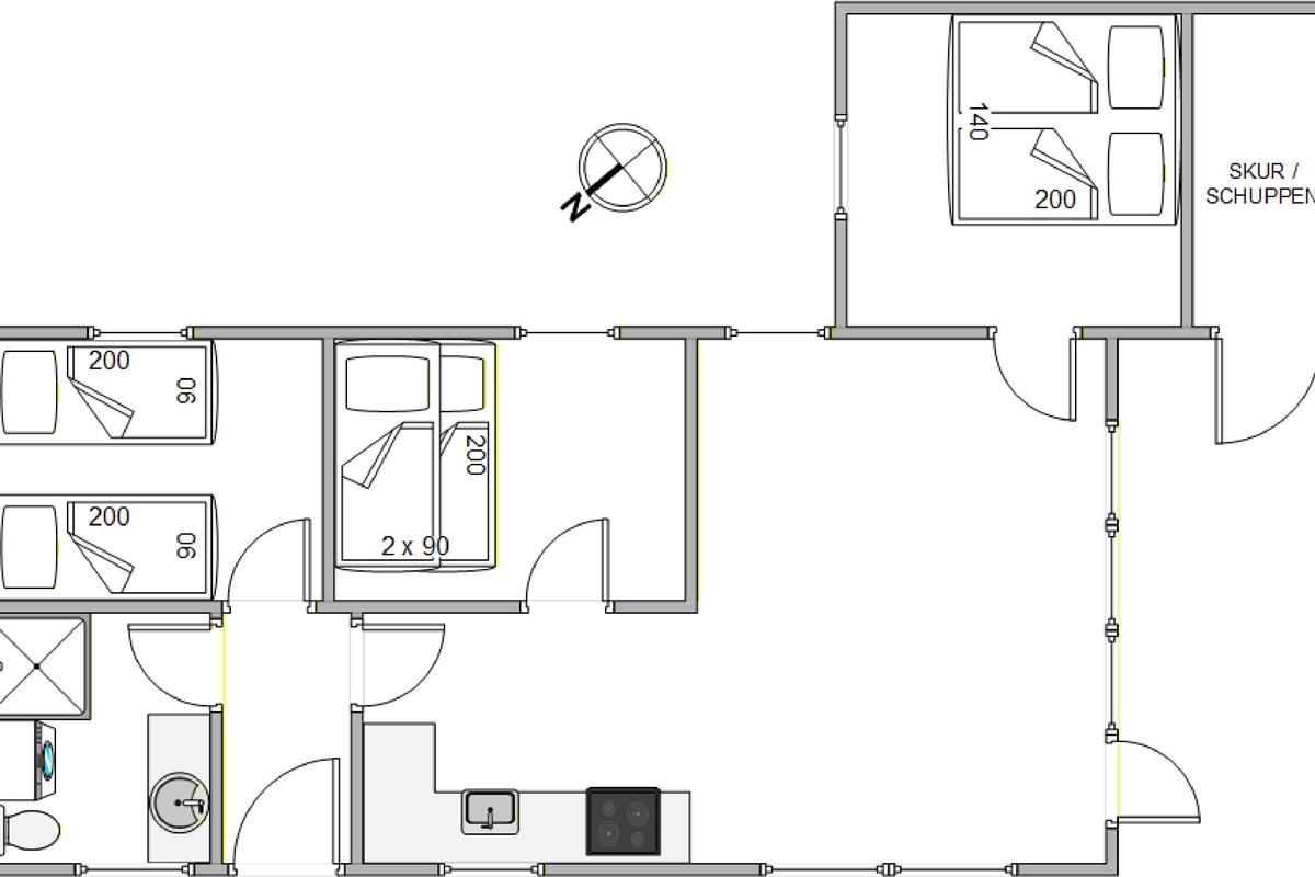 The holiday home in Bork Havn has a living area of 58 m2 and the heart of the home is the cosy living room. Large windows let in plenty of daylight, and the open-plan design offers plenty of space to move around freely. The well-equipped kitchen has a dishwasher to make washing up easier.
