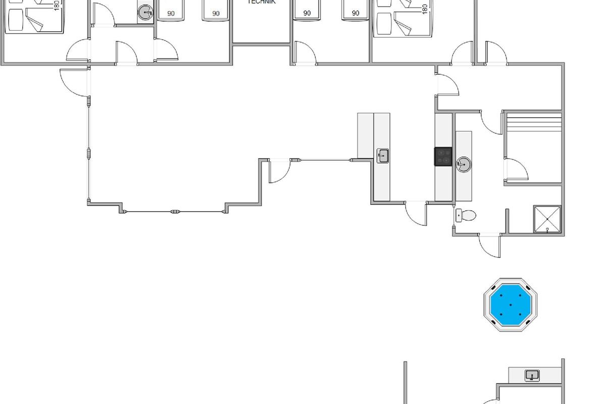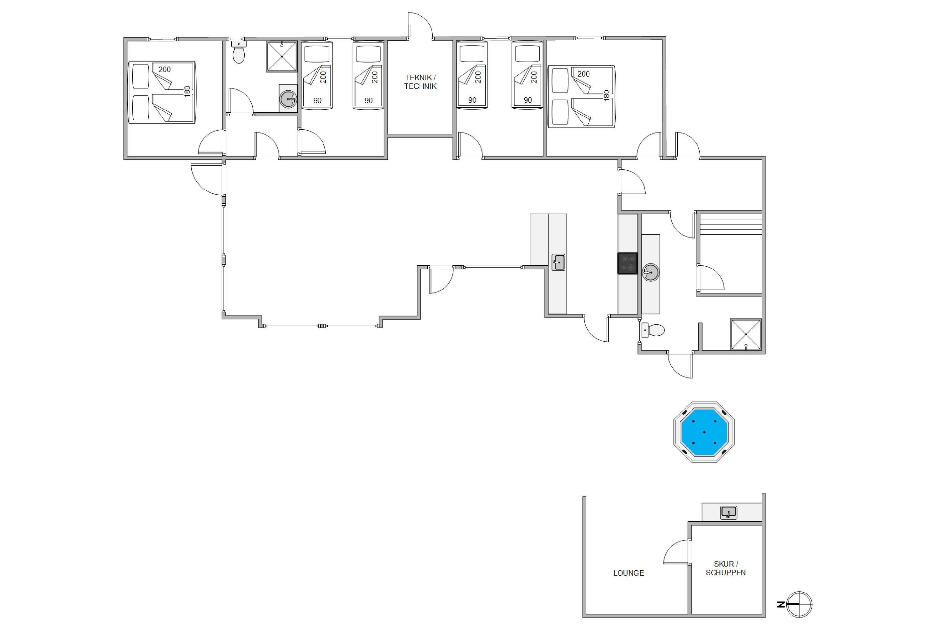 The open-plan living room and kitchen form the heart of the house. Here you'll find ample space for socialising while cooking, watching television, or playing cards in the sofa area. As darkness falls, it's the perfect time to snuggle under a blanket and dive into a good book in the cosy alcove – comfort is truly paramount here. Throughout the rest of the house, you'll find four beautiful bedrooms accommodating up to eight people.