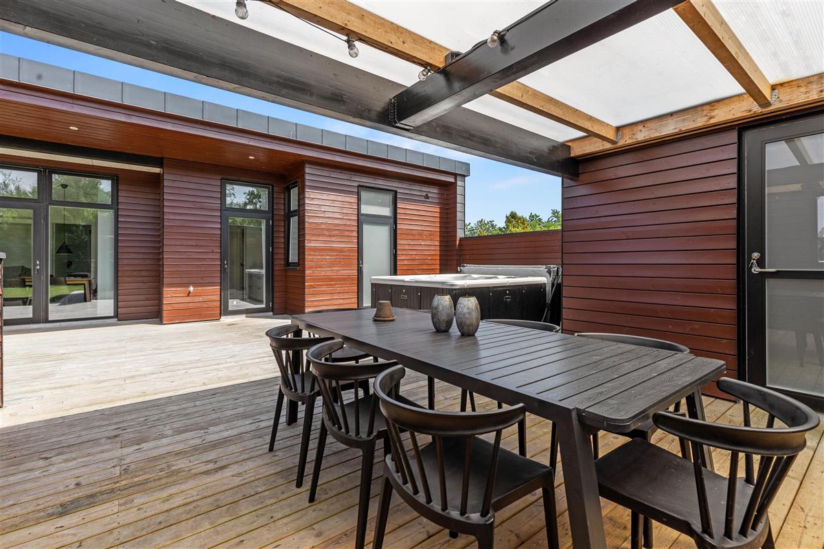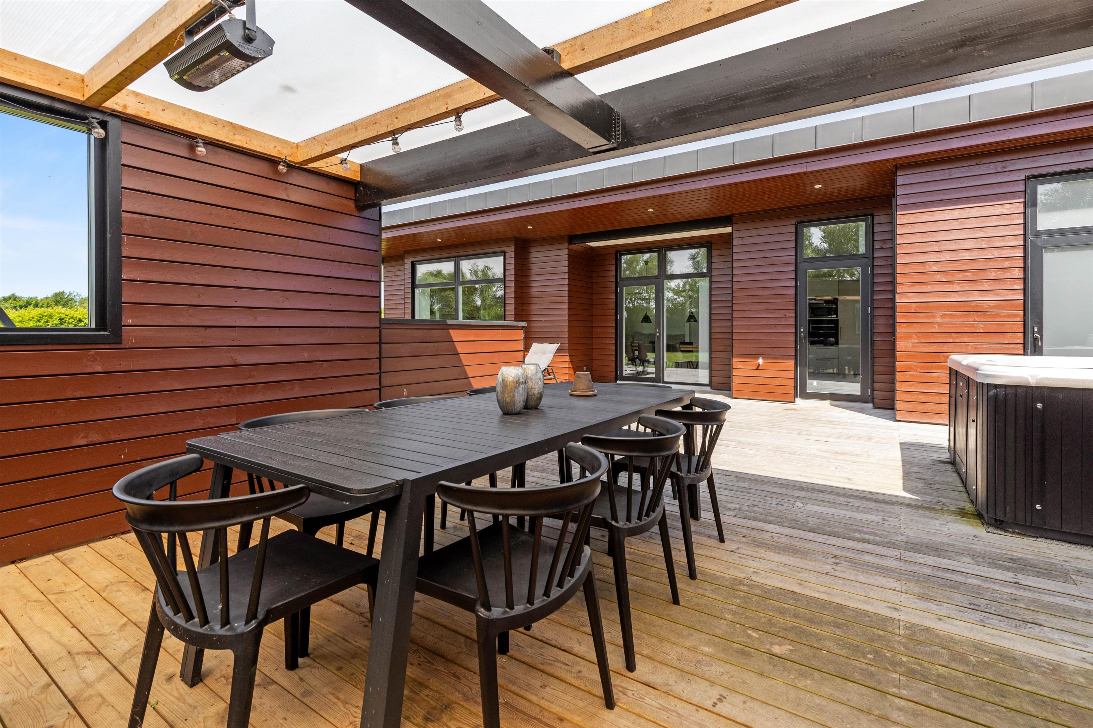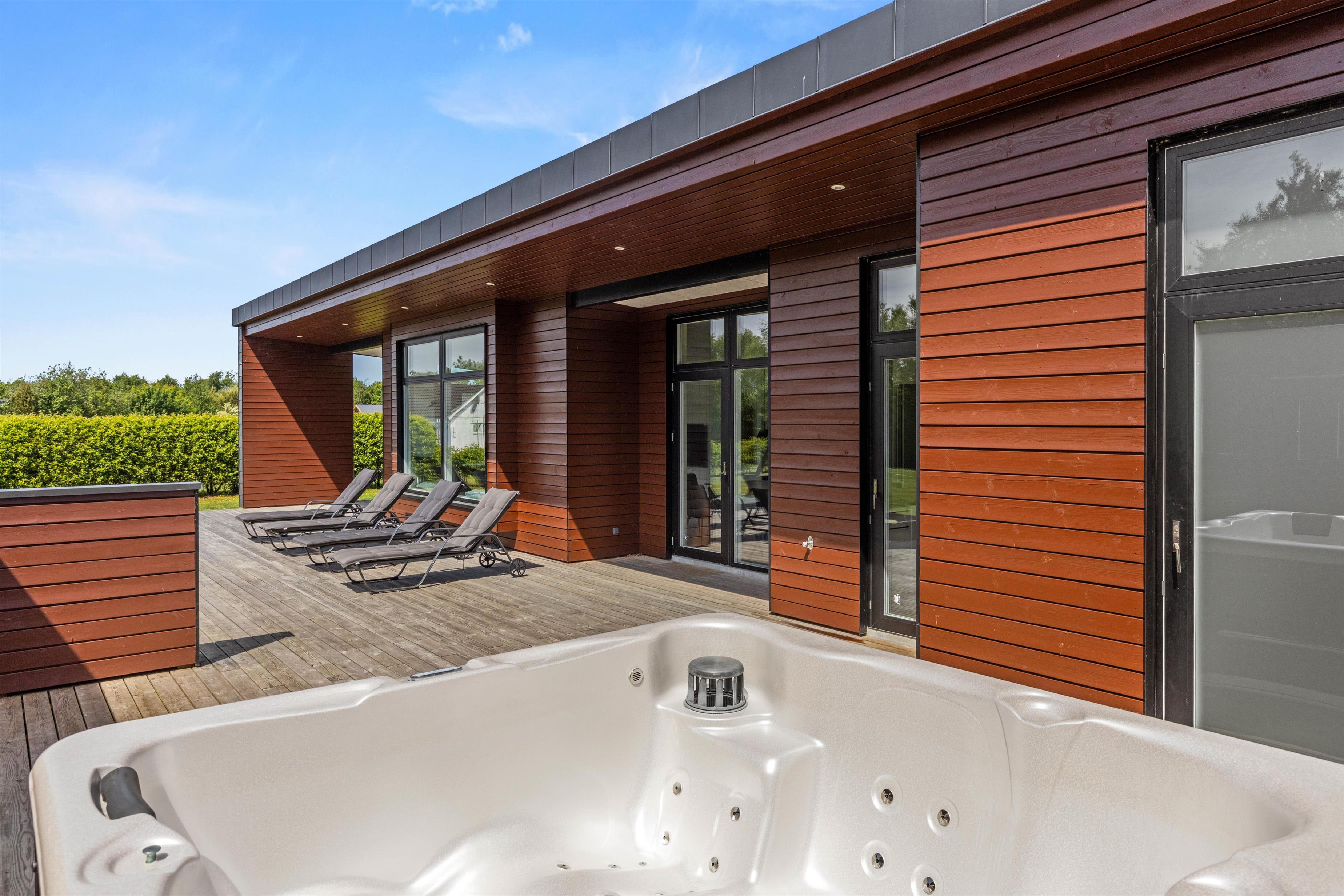 The terrace features a five-person outdoor hot tub where you can relax in warm, bubbling water.