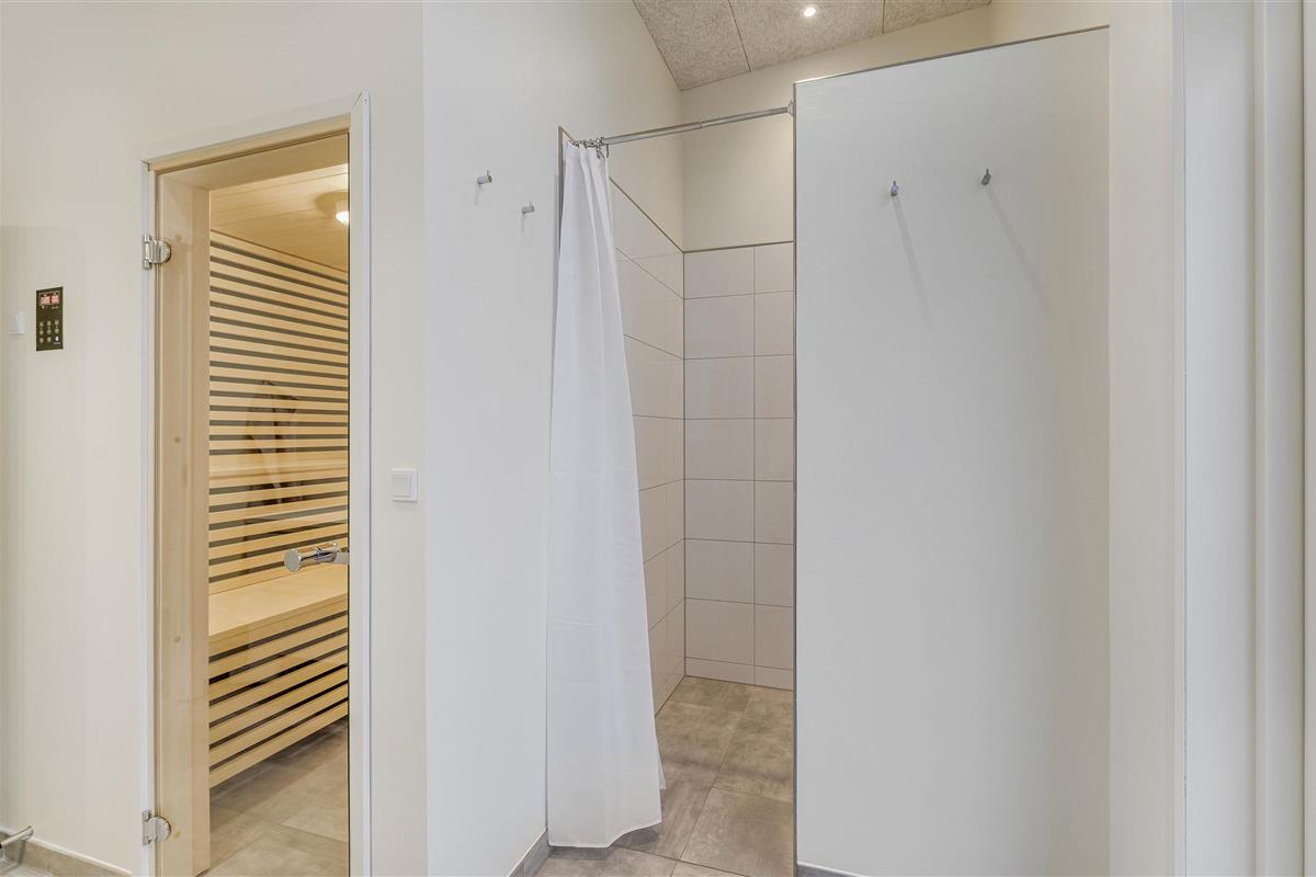 A particular highlight is the spacious bathroom featuring an infrared sauna with direct access to the terrace. The holiday home is heated by environmentally friendly ground source heat, a sustainable solution that also reduces energy costs.
