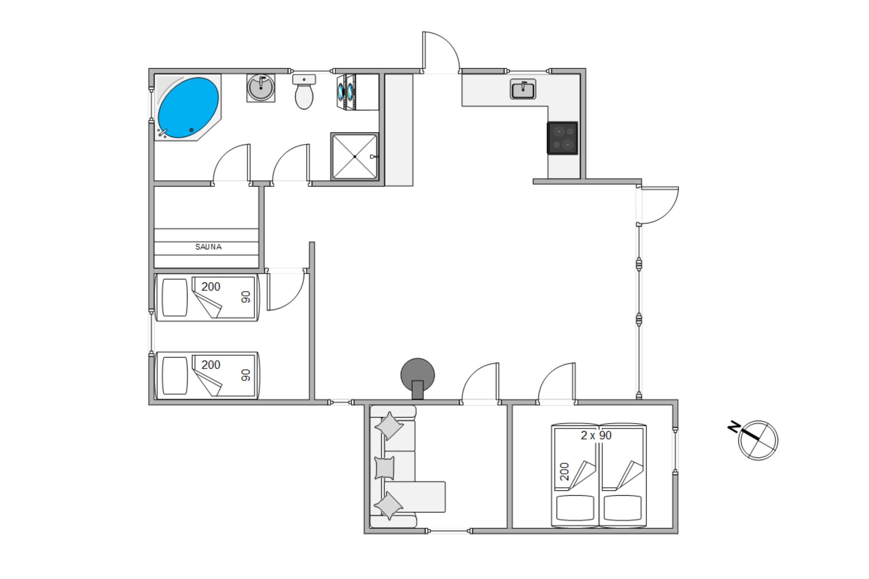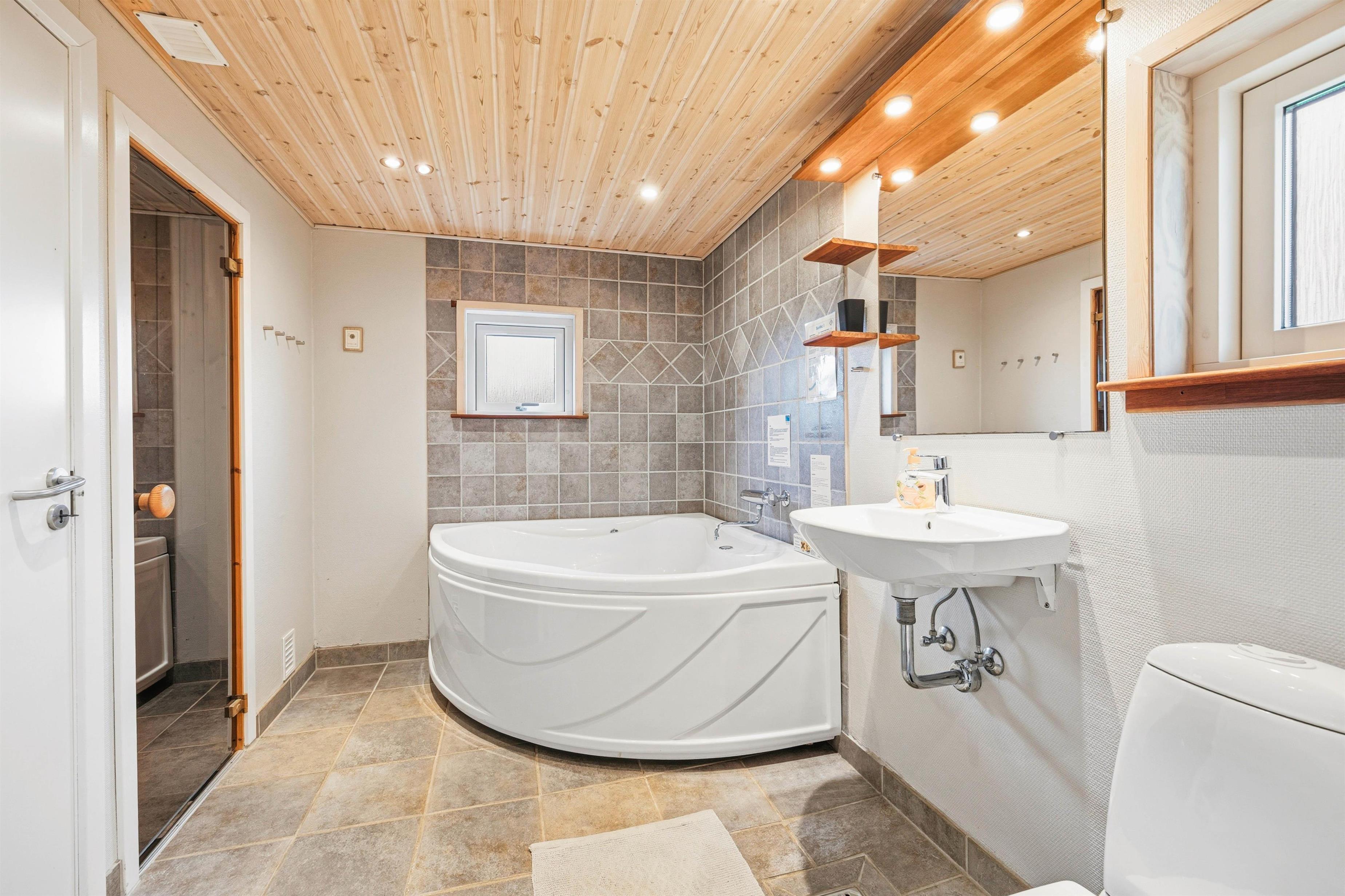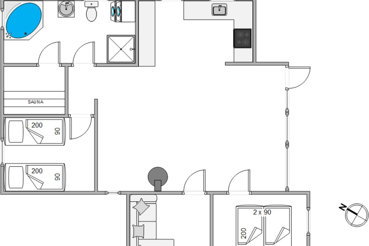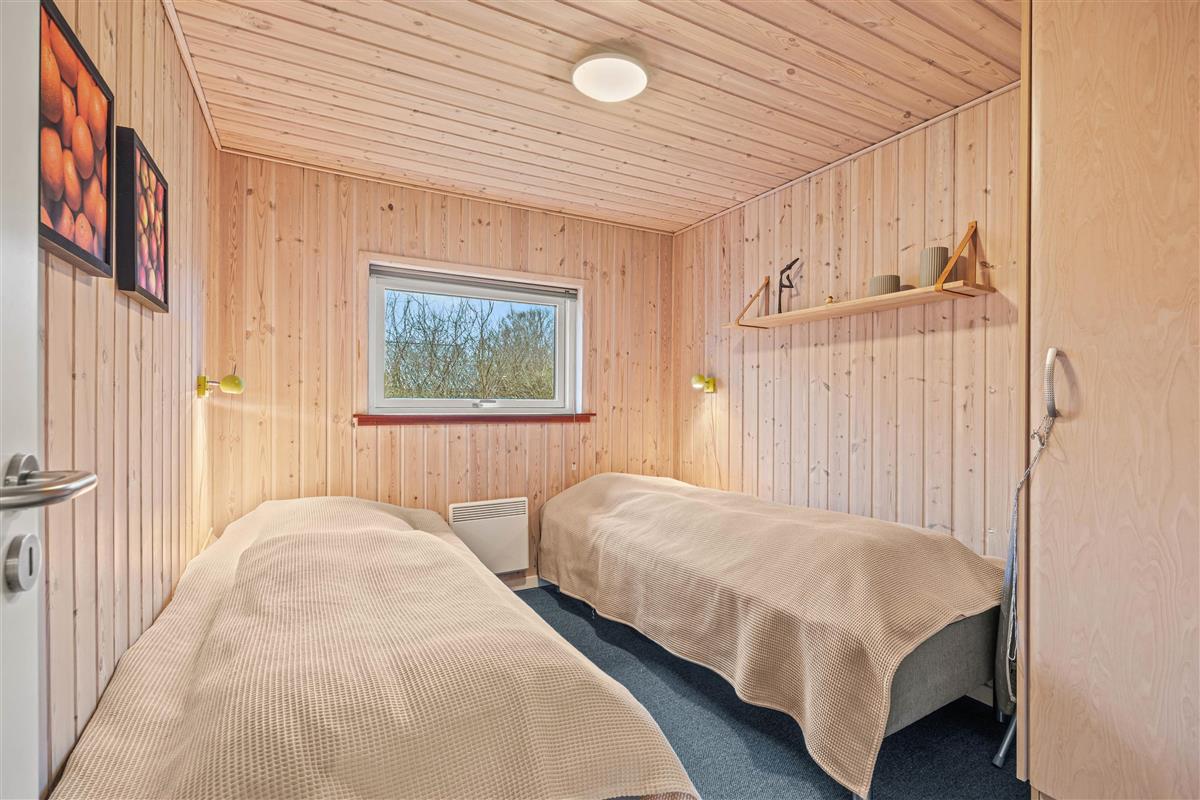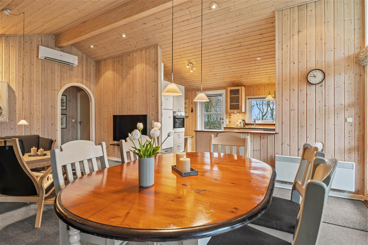 The interior of the holiday home at Svanevænget 6 is a haven of peace and comfort. The open-plan living area forms the heart of the holiday home, where you can relax in front of the crackling wood-burning stove and enjoy the cosy atmosphere. Large windows flood the space with natural light, creating a harmonious connection between indoors and out.