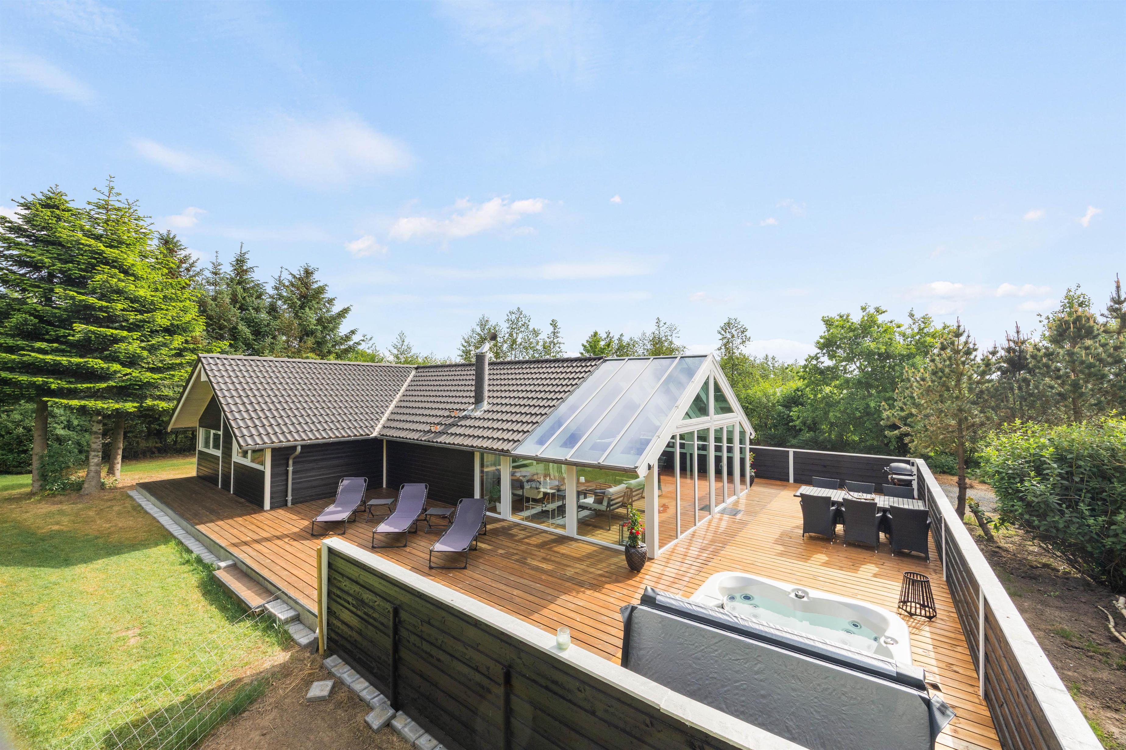 Der Außenbereich des Ferienhauses in Bork Havn lädt zum Entspannen und Verweilen ein – hier könnt ihr die schöne Umgebung genießen. Auf der großen Rasenfläche können Kinder und Haustiere spielen, ideal für Familien. Die teils abgeschirmte und teils überdachte Terrasse ermöglicht es euch, bei jedem Wetter den Außenbereich zu genießen.