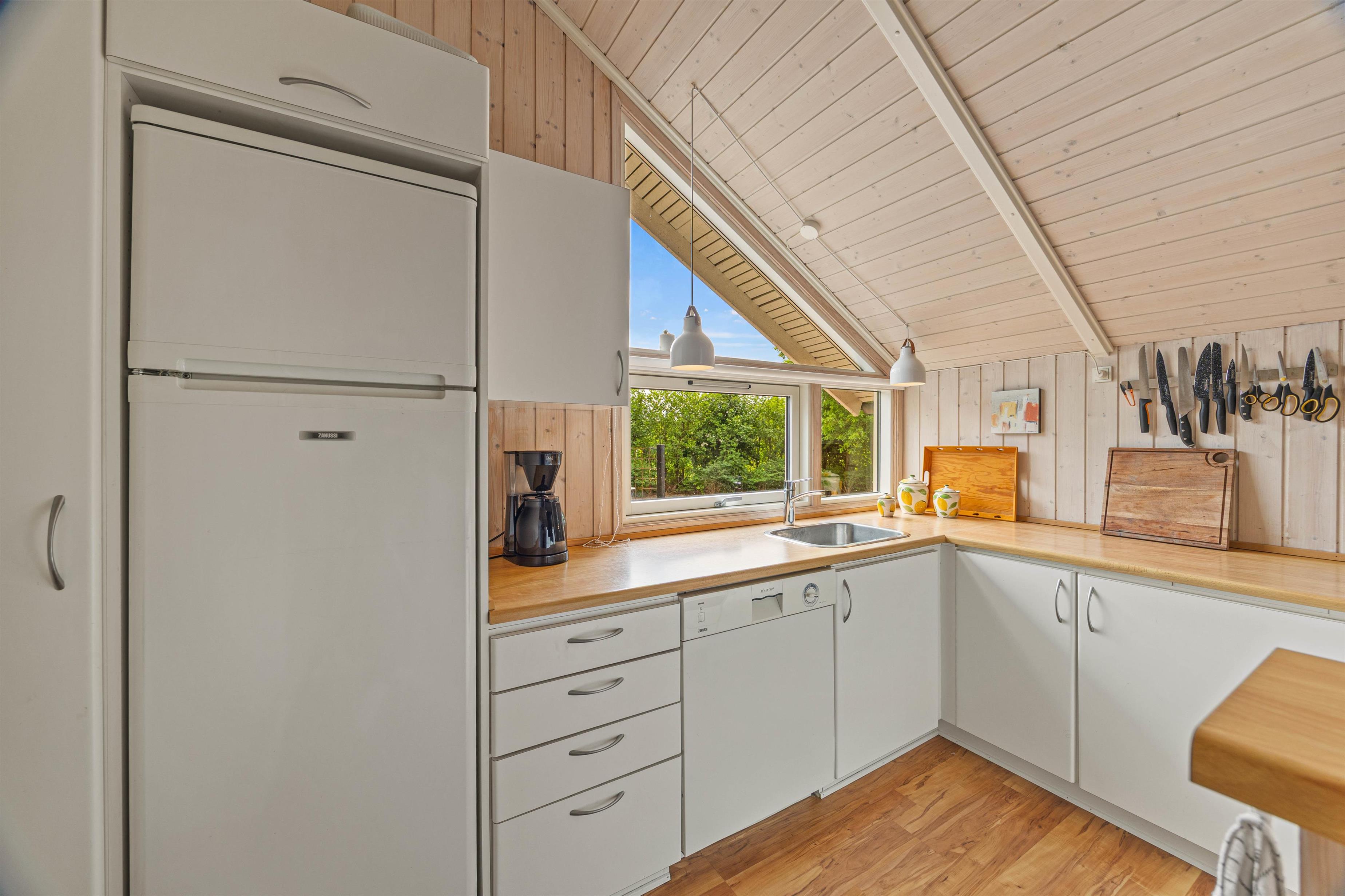 Wenn ihr das 83 qm große Ferienhaus betretet, landet ihr in dem schönen, hellen Wohnbereich mit offener Küche. Dank des Geschirrspülers braucht ihr euch nicht um den Abwasch zu sorgen.