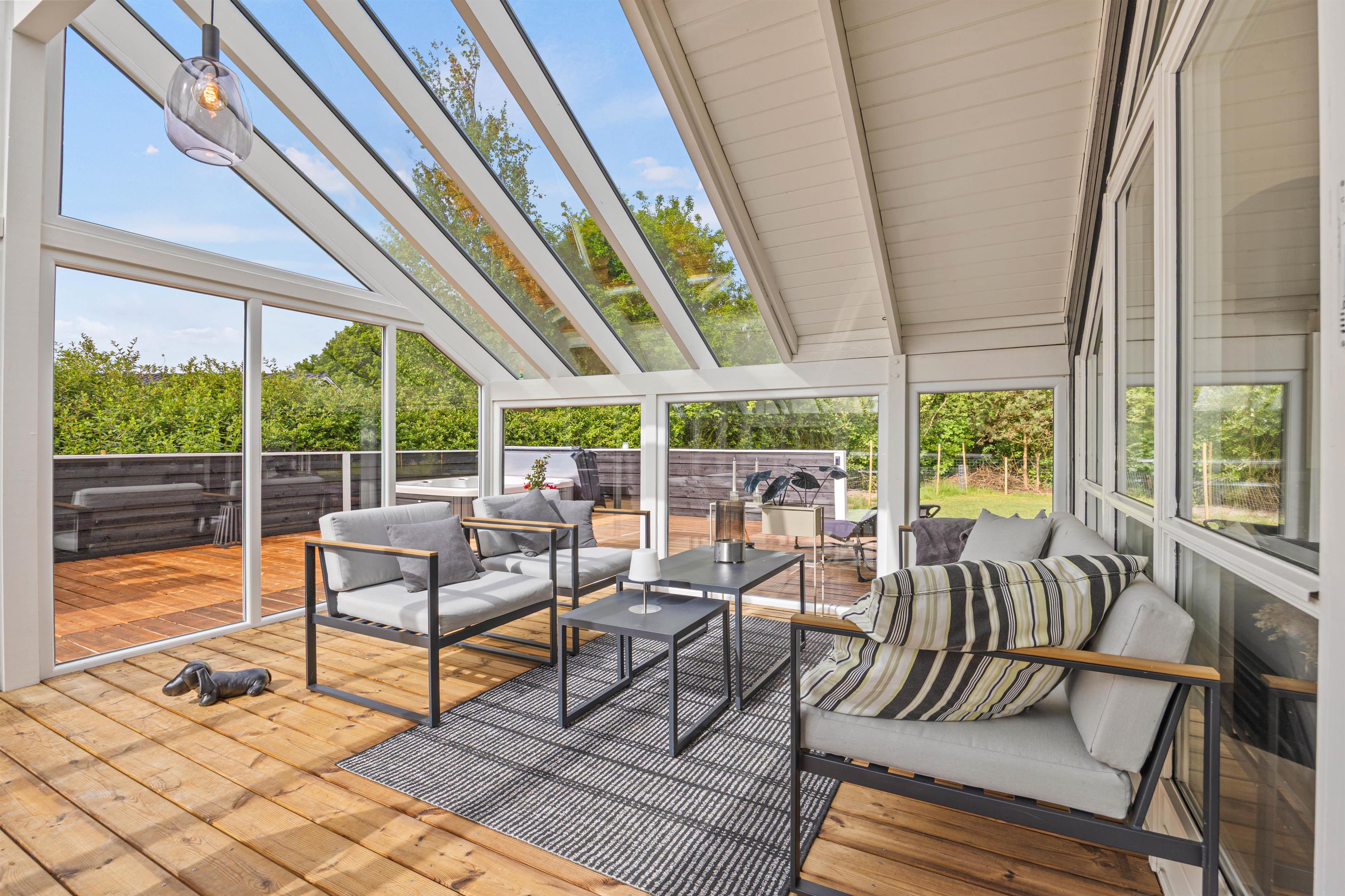 Im Anbau befindet sich ein Aktivitätsraum mit u. A. Tischfußball und Dart - so kommt auch bei Regen keine Langeweile auf. Zum Entspannen könnt ihr euch zudem in den großzügigen Wintergarten zurückziehen.