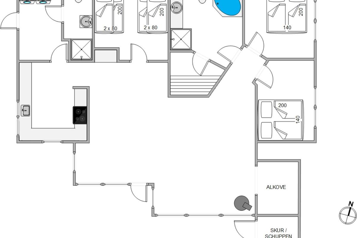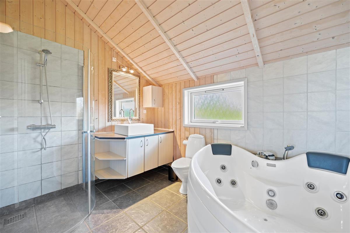 The second bathroom offers a shower and WC, and is equipped with a whirlpool and sauna, providing wonderful relaxation after an active day. The holiday home can be heated according to preference using an environmentally friendly heat pump, electric heating, or a cosy wood-burning stove, ensuring comfortable temperatures throughout your stay.