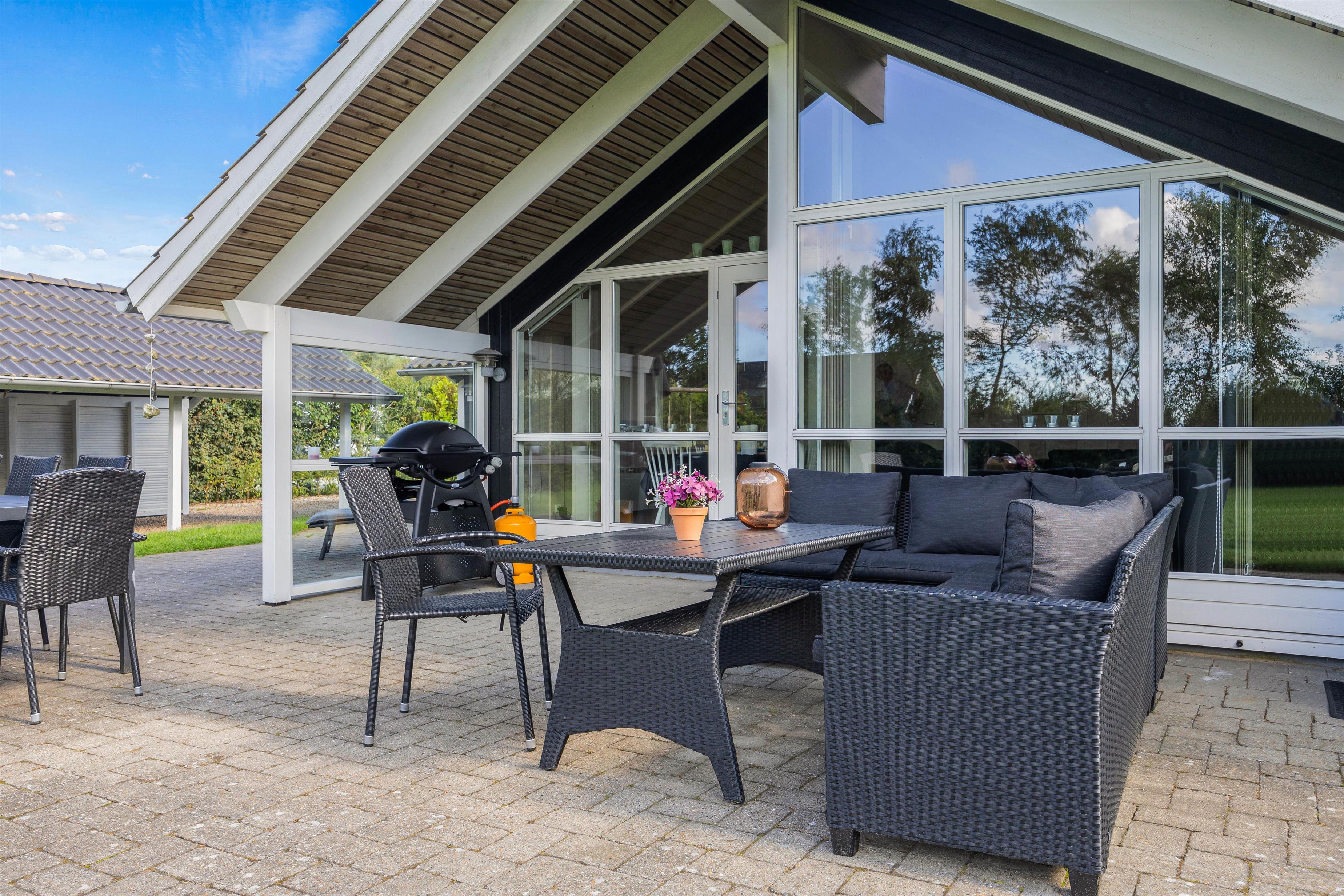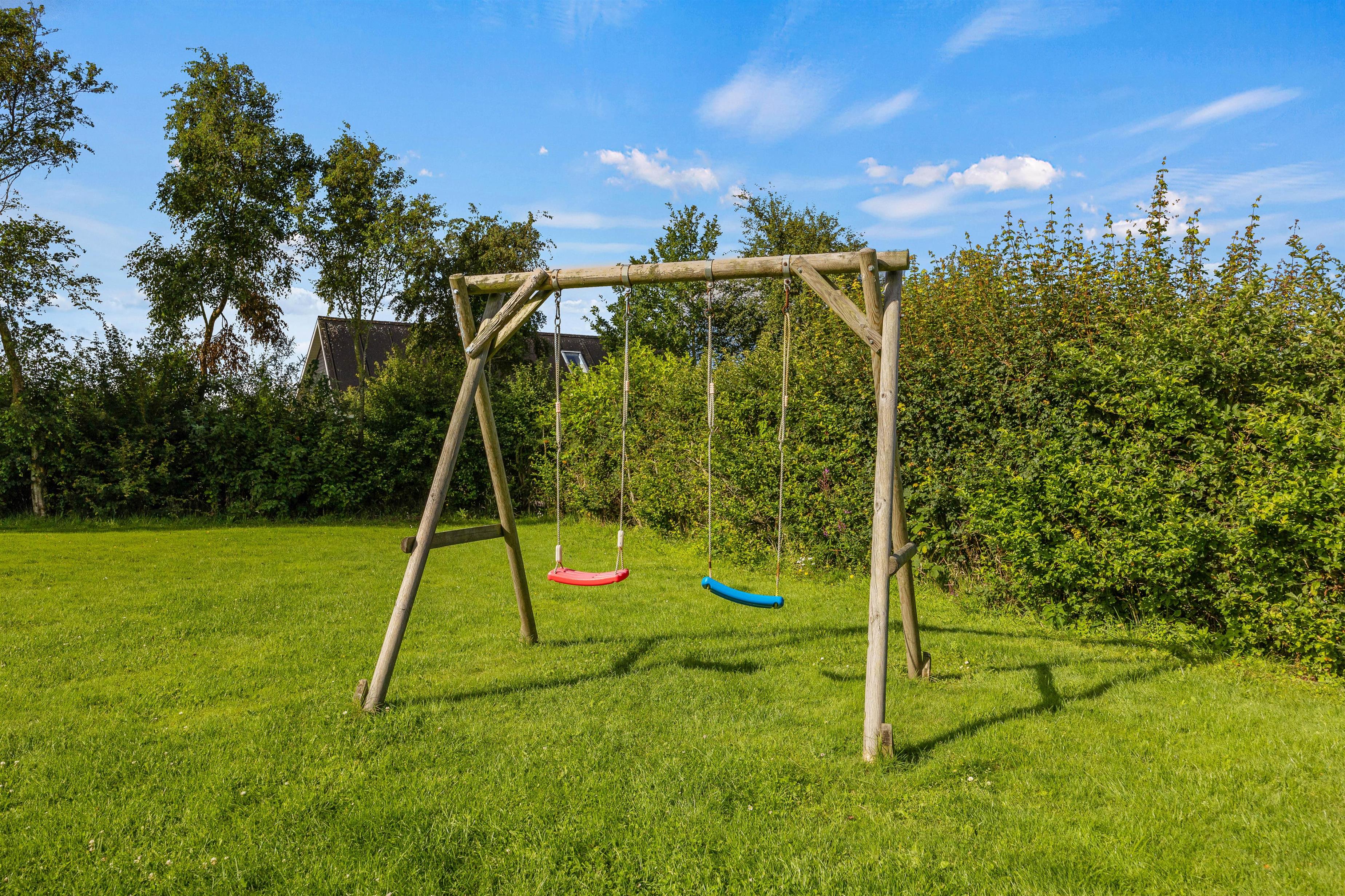 The partially covered terrace is directly accessible from the living room, allowing you to enjoy fresh air even in less favourable weather. The expansive lawn gives children plenty of space to play - whether it's football or enjoying the swings. To perfectly end your holiday day, you can prepare dinner on the barbecue and enjoy it in relaxed company. The large outdoor area invites you to linger, making it an ideal retreat for the whole family.