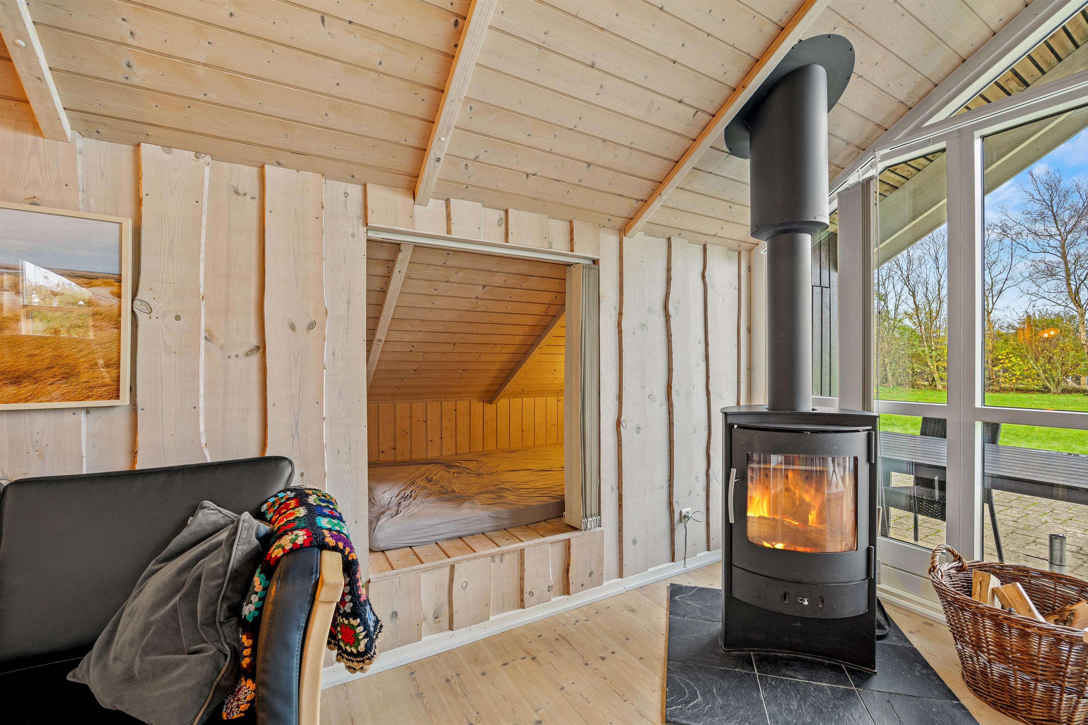 The holiday home is just 0.6 miles (1 km) from Ringkøbing Fjord, one of the best spots for kiting and surfing in southern Denmark. Equally close is Bork Havn's centre, where a small supermarket offers everything you need for daily essentials. The harbour area features a charming pedestrian zone with various shops and welcoming restaurants. Here you can enjoy a leisurely stroll while admiring boats of various sizes in the small harbour.