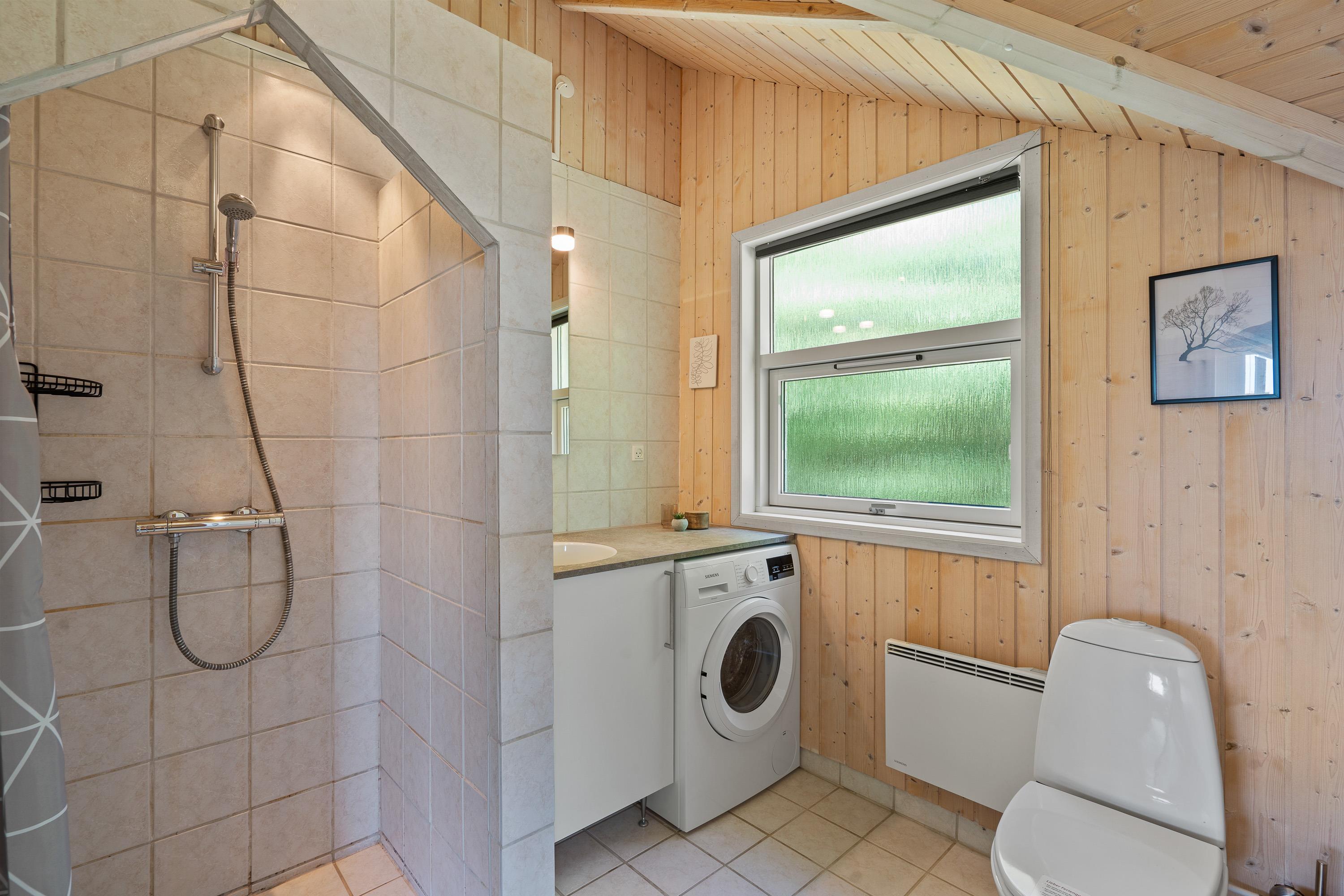 The holiday home also features a modern bathroom with a practical shower enclosure and underfloor heating. Added comfort comes from the washing machine, ensuring you always have fresh laundry. In the evening, you can settle down with a good film streamed via Chromecast – a perfect way to end the day in good company.