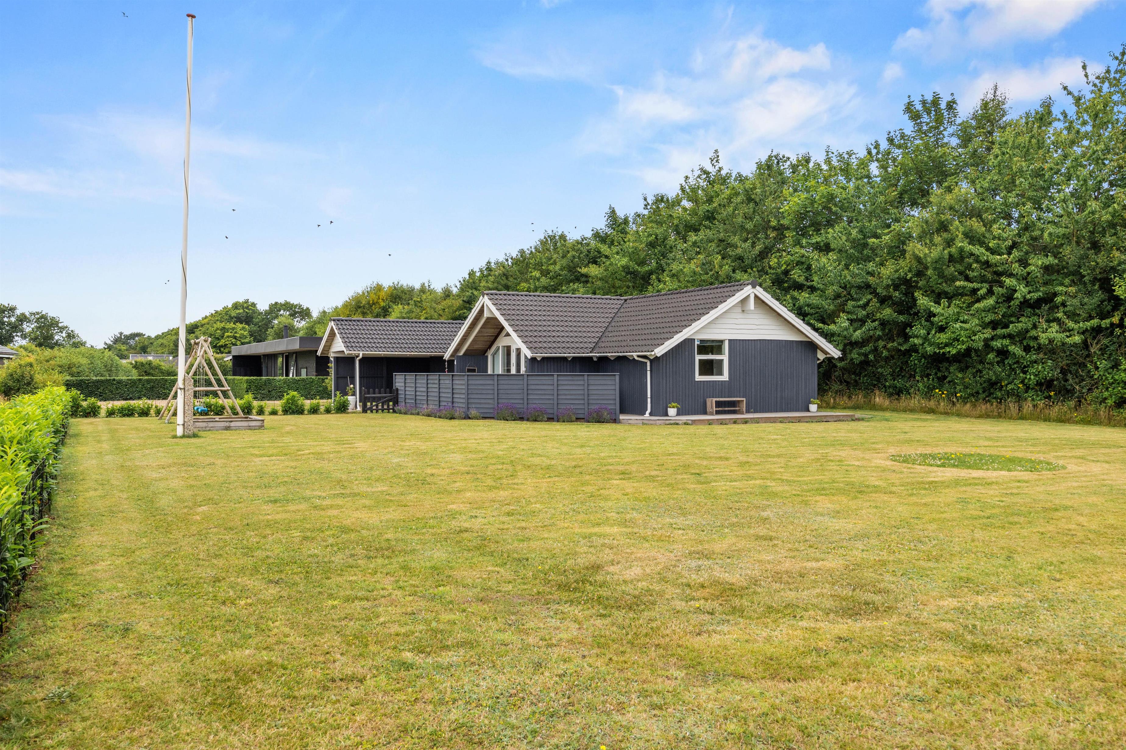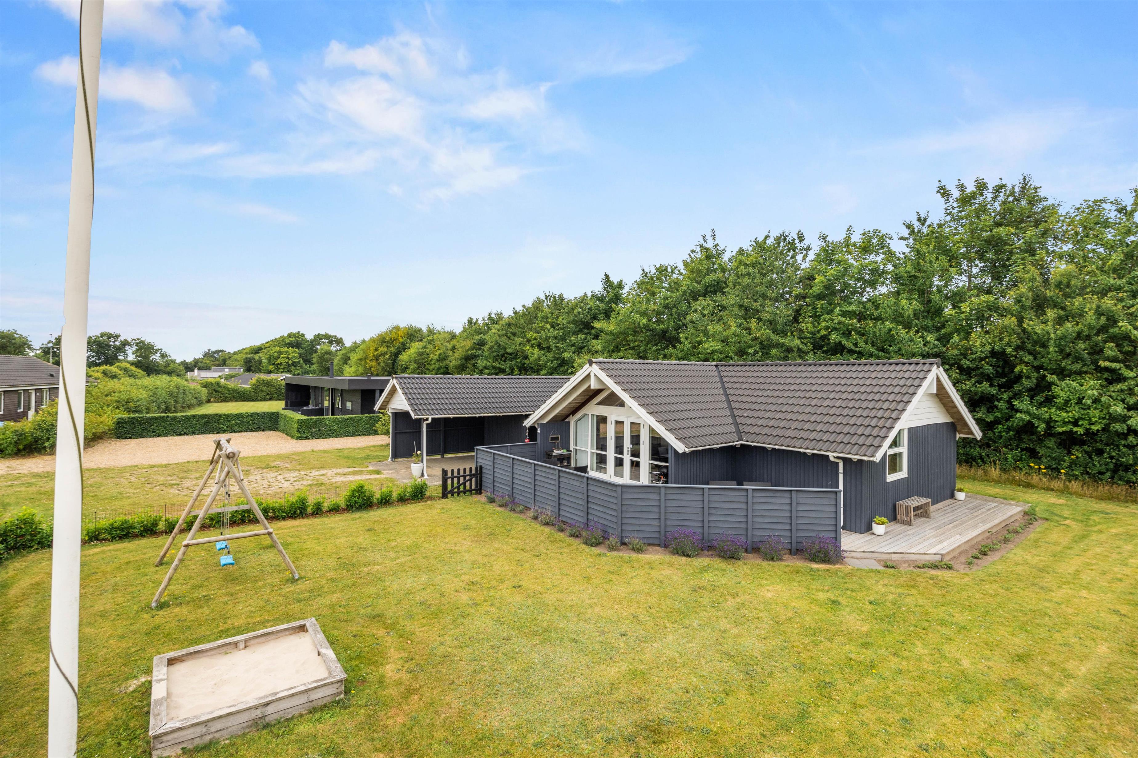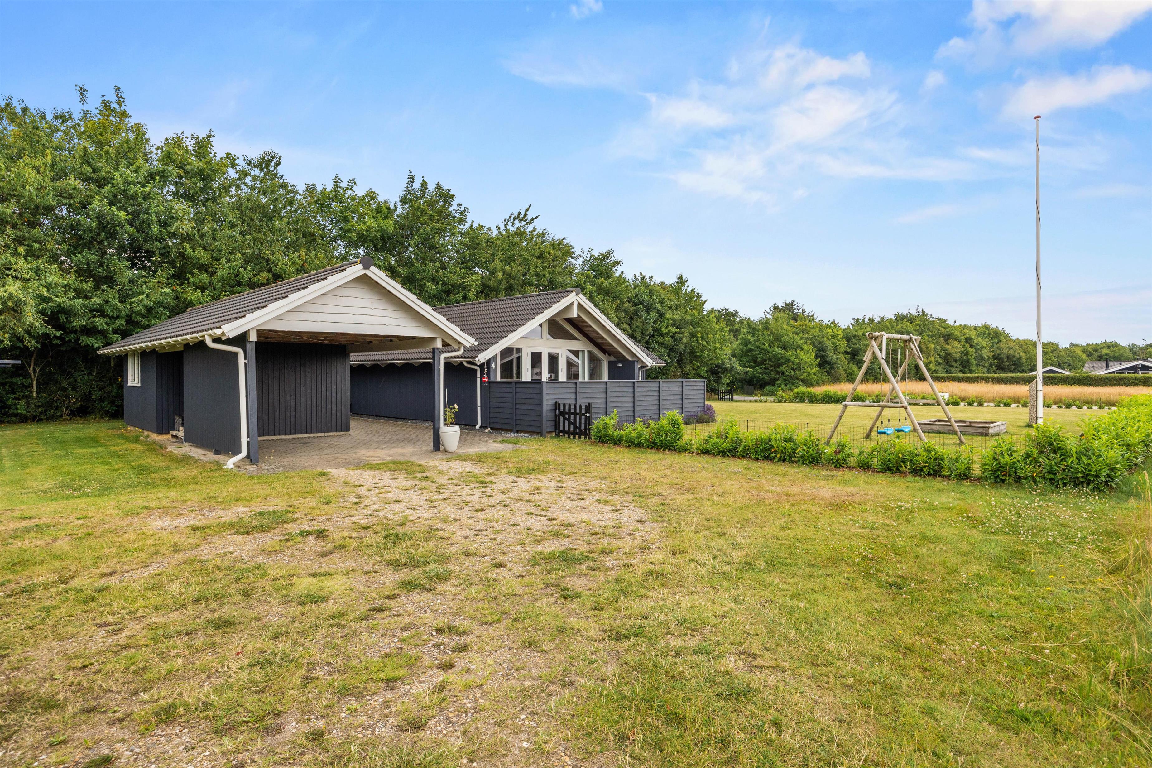 Children can play on the lawn or enjoy the provided play equipment while you savour the peaceful atmosphere and surrounding nature. Your car can be conveniently parked in the carport, located right next to the holiday home for easy access.
