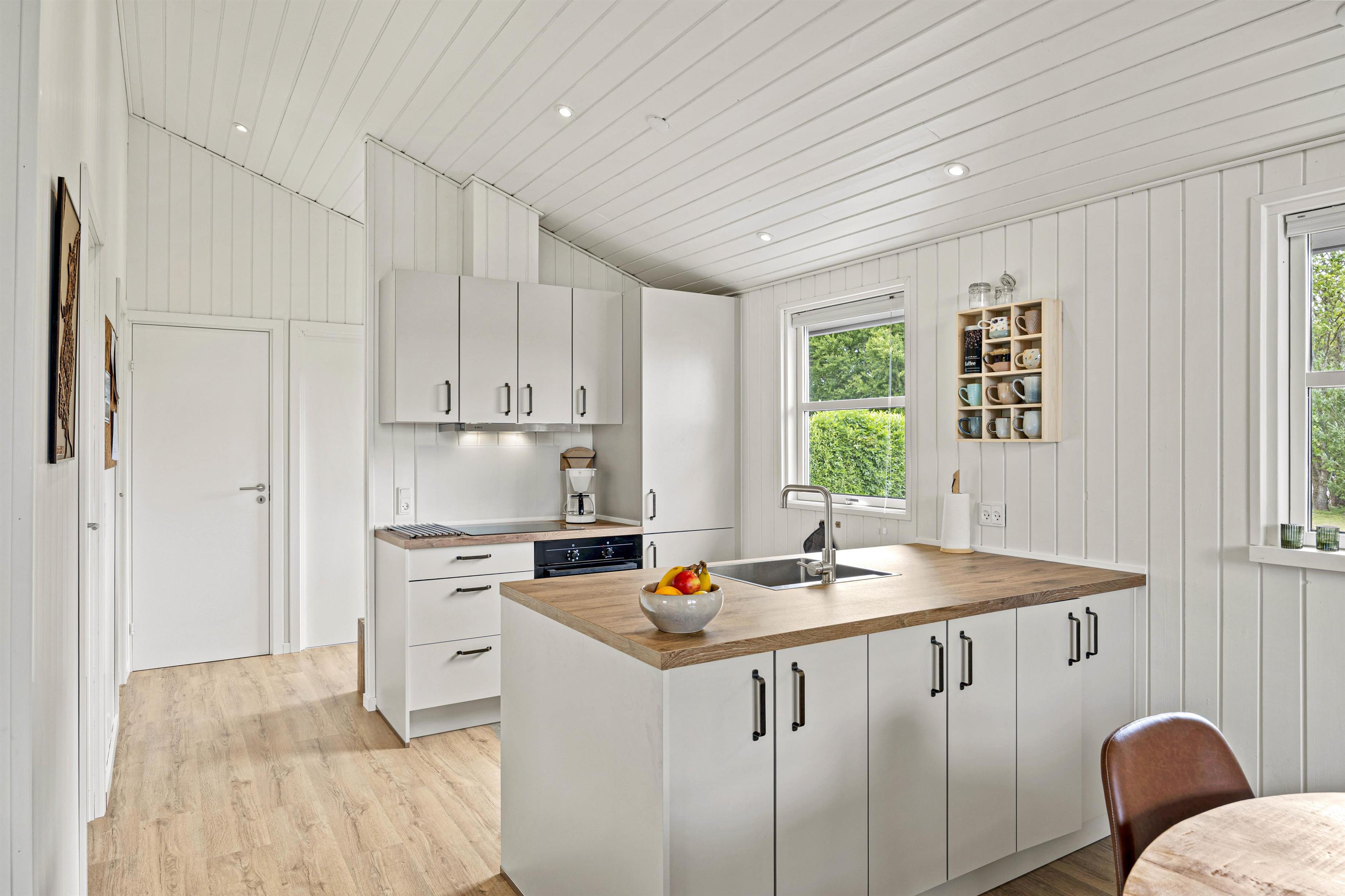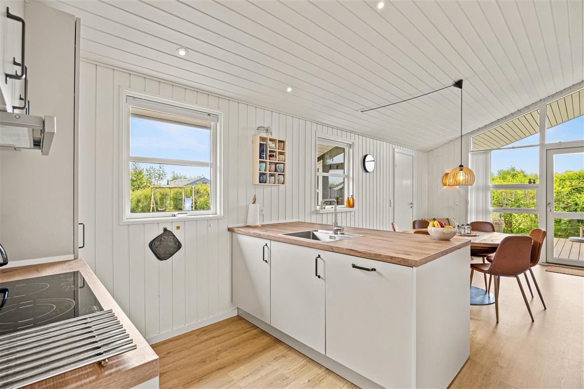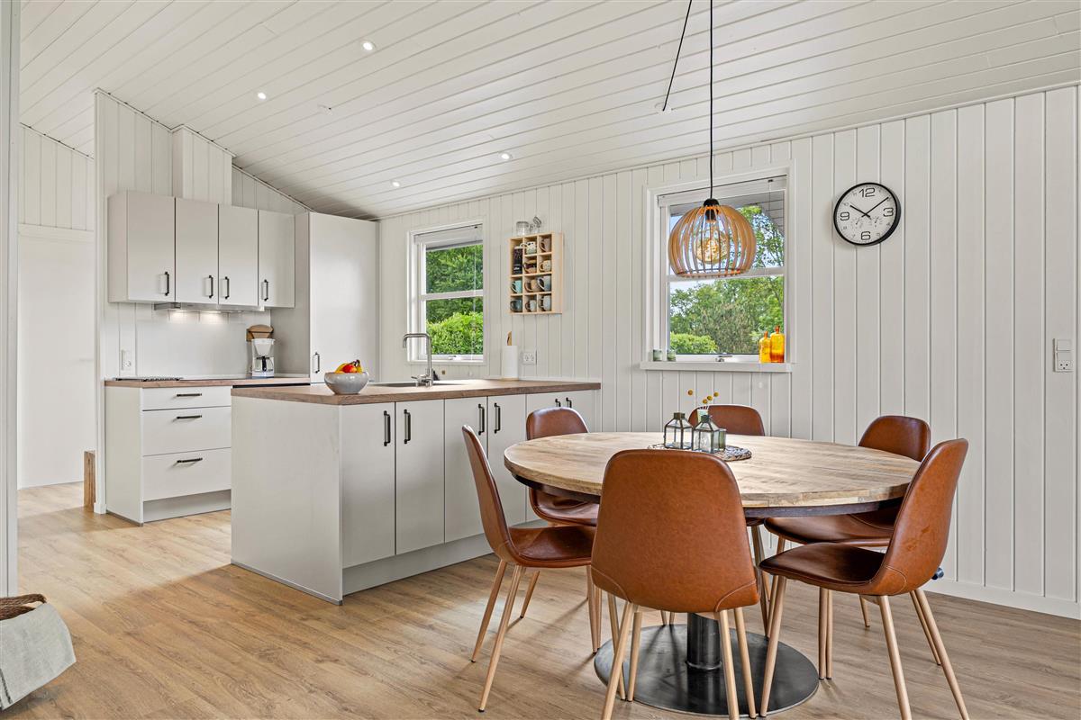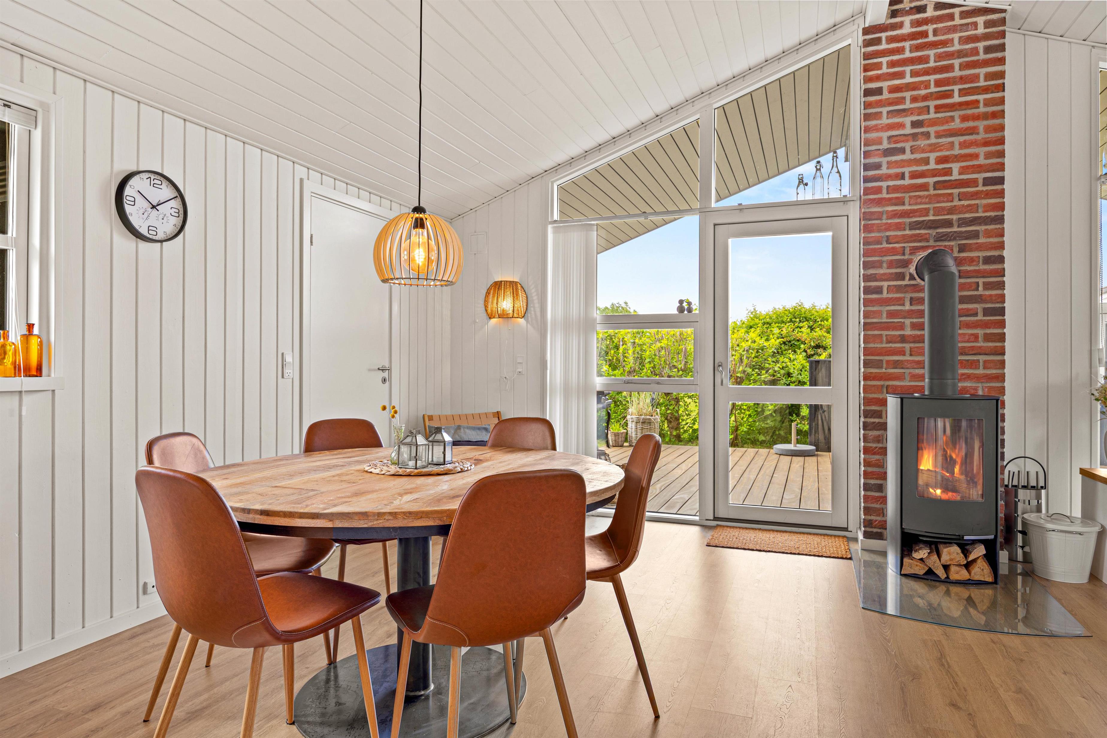 Das Herzstück des Ferienhauses ist der gemütliche Wohnraum, der dank des Holzofens mit Wärme und Atmosphäre erfüllt ist. Außerdem gibt es eine moderne Luft-Luft-Wärmepumpe, die das Ferienhaus schnell und effizient beheizen kann. Das Ferienhaus wurde 2024 renoviert und bietet ein modernes Interieur in typisch skandinavischem Stil. Der offene Wohnbereich umfasst gemütliche Sitzmöbel, auf denen ihr entspannt einen Film mit eurem Chromecast streamen könnt.