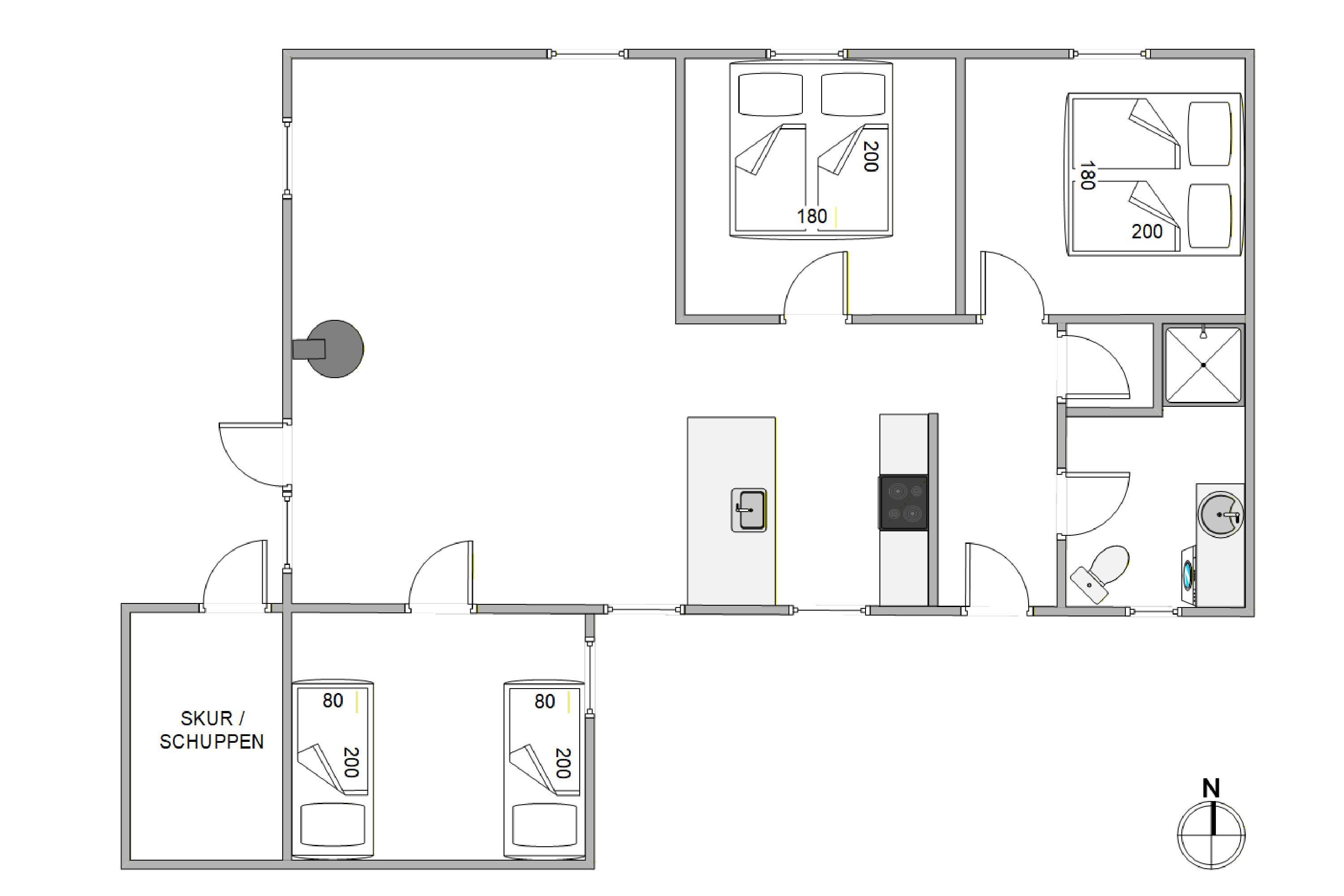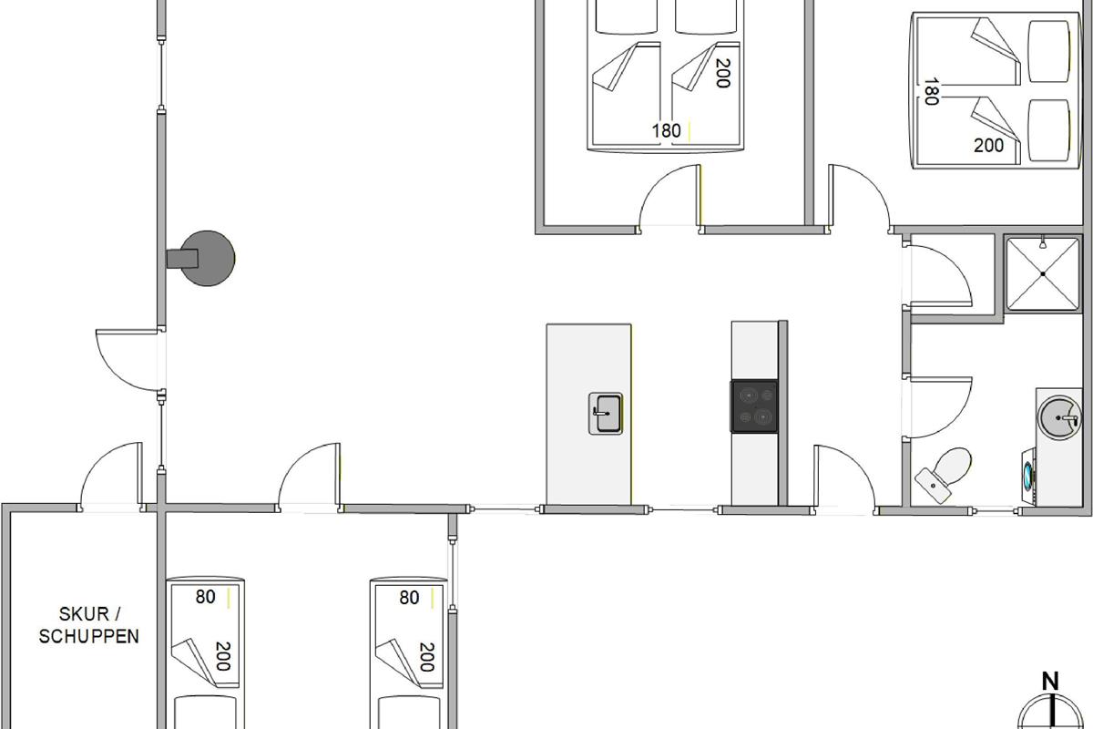 Das 80 qm große Ferienhaus ist sowohl komfortabel als auch modern eingerichtet. Es bietet Platz für bis zu 6 Personen in 3 schönen Schlafzimmern, die alle geräumig und einladend für eine gute Nachtruhe sind.