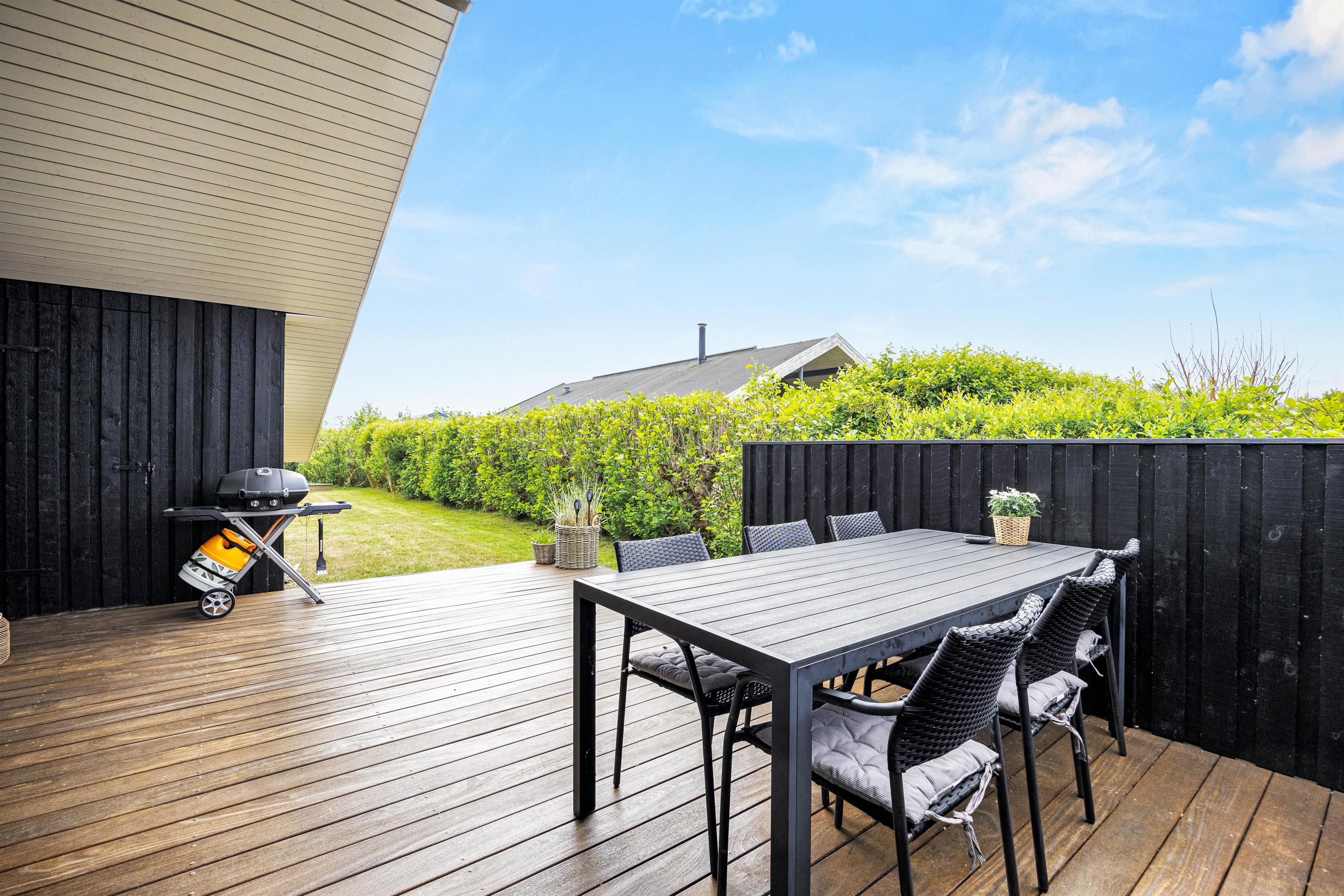 Wenn ihr gerne Zeit im Freien verbringt, werdet ihr den Außenbereich des Ferienhauses in Bork Havn lieben. Das Ferienhaus hat sowohl eine teils überdachte als auch eine offene Terrasse, sodass ihr die lauen Sommerabende bei jedem Wetter genießen könnt. Gartenmöbel und ein Grill bieten den perfekten Rahmen für ein entspanntes Abendessen.