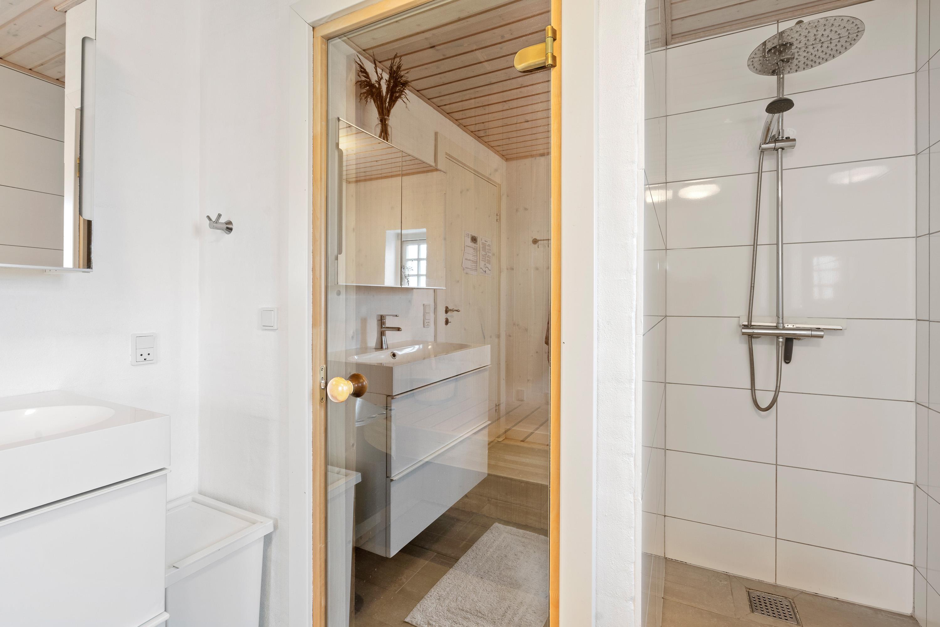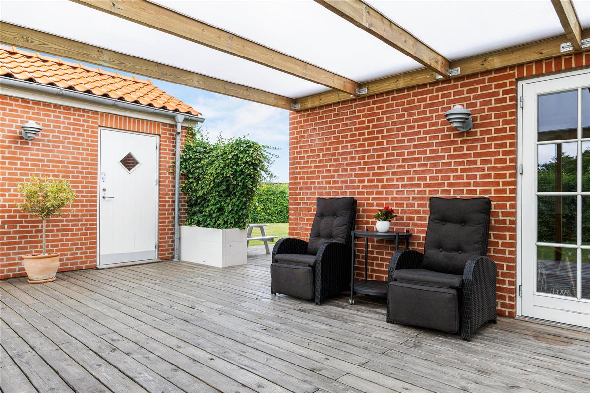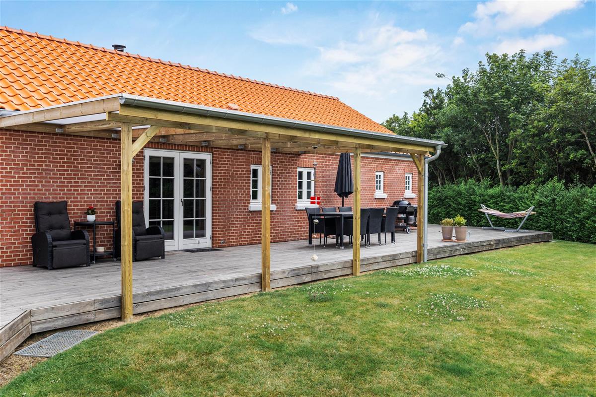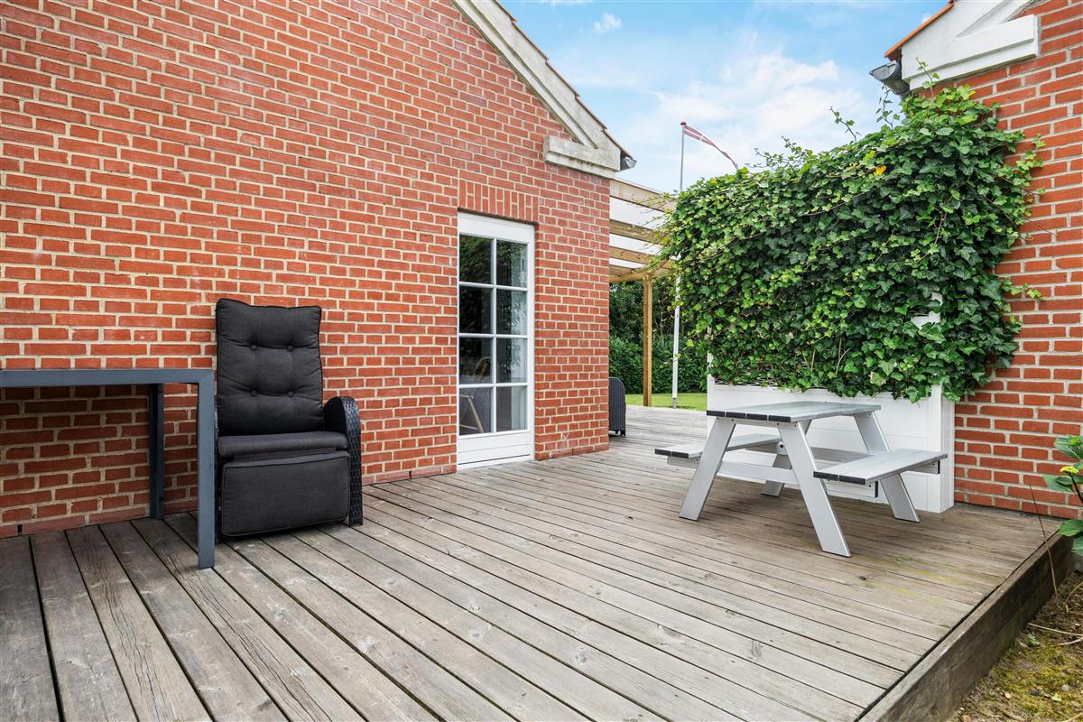 The spacious lawn provides ample room for various activities, allowing you to enjoy the fresh air and sunny days in complete peace and privacy. Young guests are well catered for with a swing and sandpit, where they can spend their outdoor time creatively and actively. The holiday home in Bork Havn features both open and sheltered terraces, offering versatile outdoor living spaces. The open terrace is ideal for sunny breakfasts or relaxed sunbathing. Here you can catch the day's first rays or read a good book in the afternoon. The sheltered terrace offers more privacy and protection from the wind – perfect for social barbecues or quiet al fresco dining.