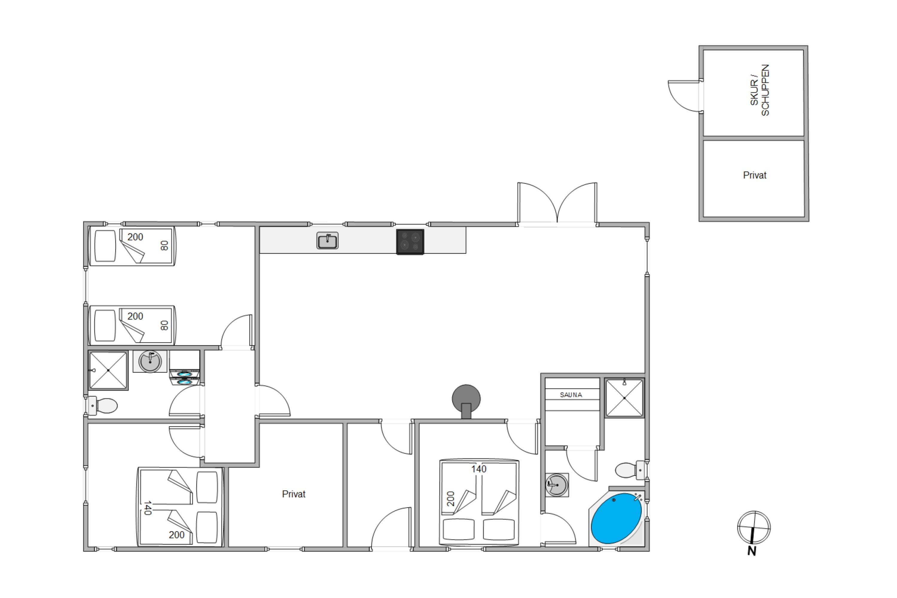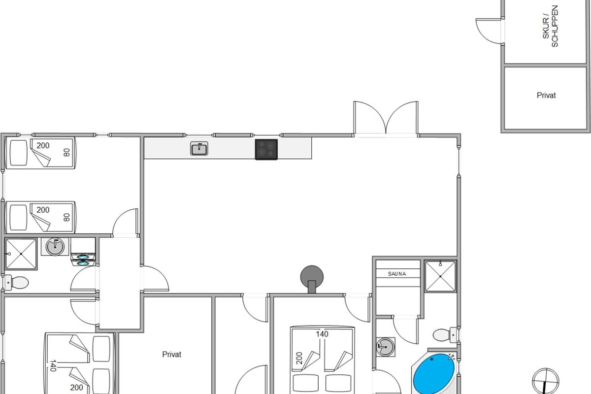 Here you can relax, unwind and enjoy quality time with family and friends. With a living space of 100 square metres, the holiday home comfortably accommodates up to 6 people. The open-plan living and dining area forms the heart of the holiday home. On cold days, warm yourself by the wood-burning stove and spend cosy evenings together. Large windows flood the space with natural light and offer lovely views of the garden. The kitchen is equipped with everything needed to prepare delicious meals, while the dishwasher takes care of the cleaning up. The holiday home features 3 bedrooms and 2 modern bathrooms that leave nothing to be desired. One bathroom includes underfloor heating and a whirlpool, perfect for relaxing after an active day. The holiday home's sauna also contributes to your rest and relaxation. For longer stays, a washing machine and tumble dryer are available, allowing you to conveniently handle laundry on-site.