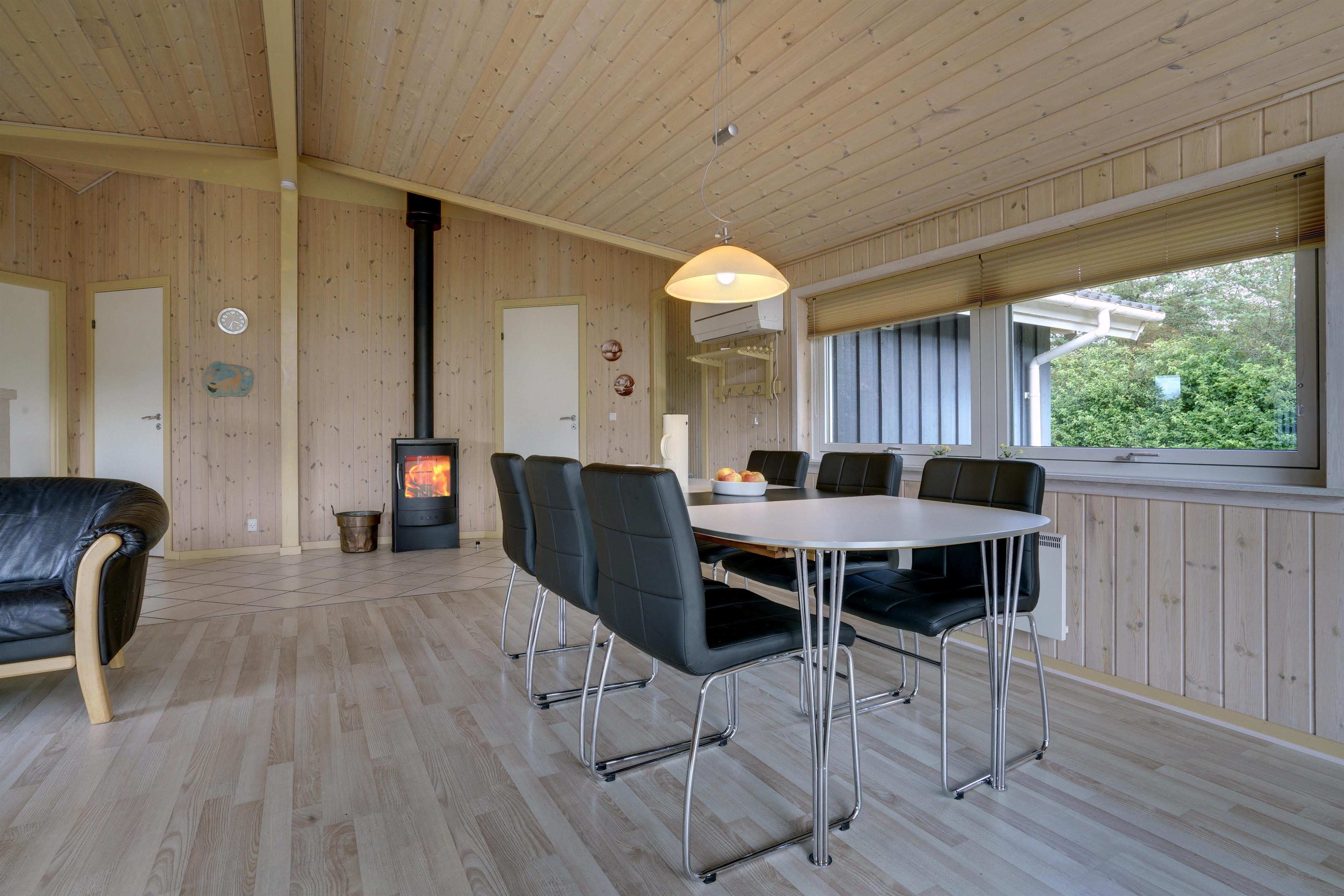 At Husfold 49 you will find a personal and well-maintained holiday home with a good floor plan and with a location close to the water. There are high ceilings and good use of all rooms. A practical entrance hall with washing machine and dryer. A well-equipped kitchen where you can prepare many meals together. After a long day, there is plenty of space in the 2-person large whirlpool. The hot tub offers access to the sauna. In addition to a heat pump, the house has a wood-burning stove, so you can save on heating costs. In the kitchen you will find all technical aids. You will be able to enjoy many evenings under the covered terrace. For outdoor coziness, there is a fire pit in natural stone. For the children there is a swing and sandbox. The large lawn is perfect for ball games or a badminton match.
